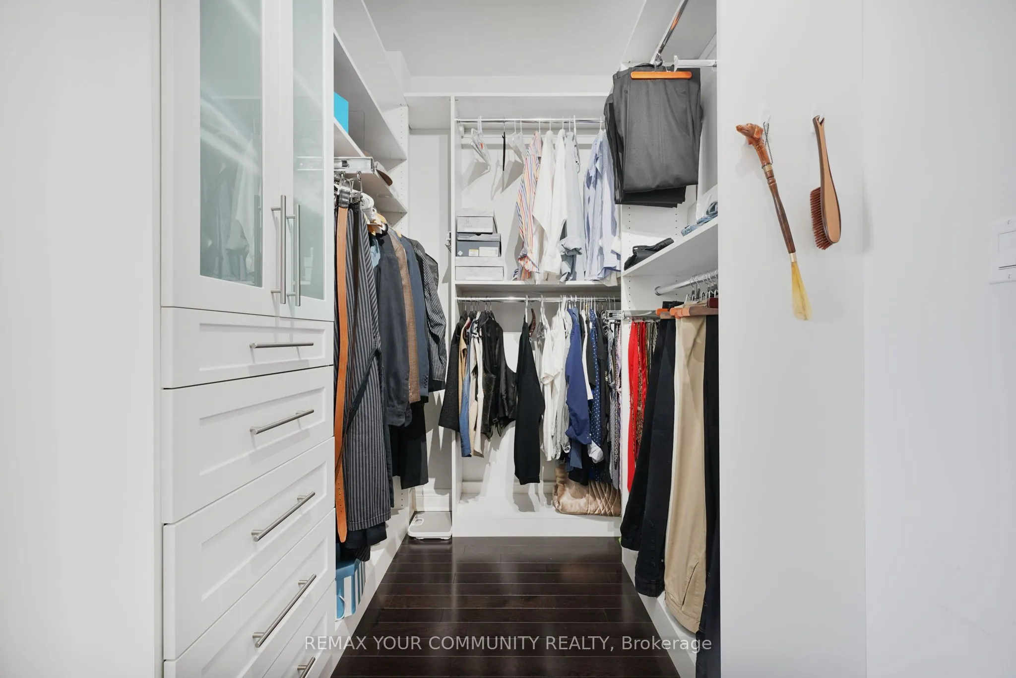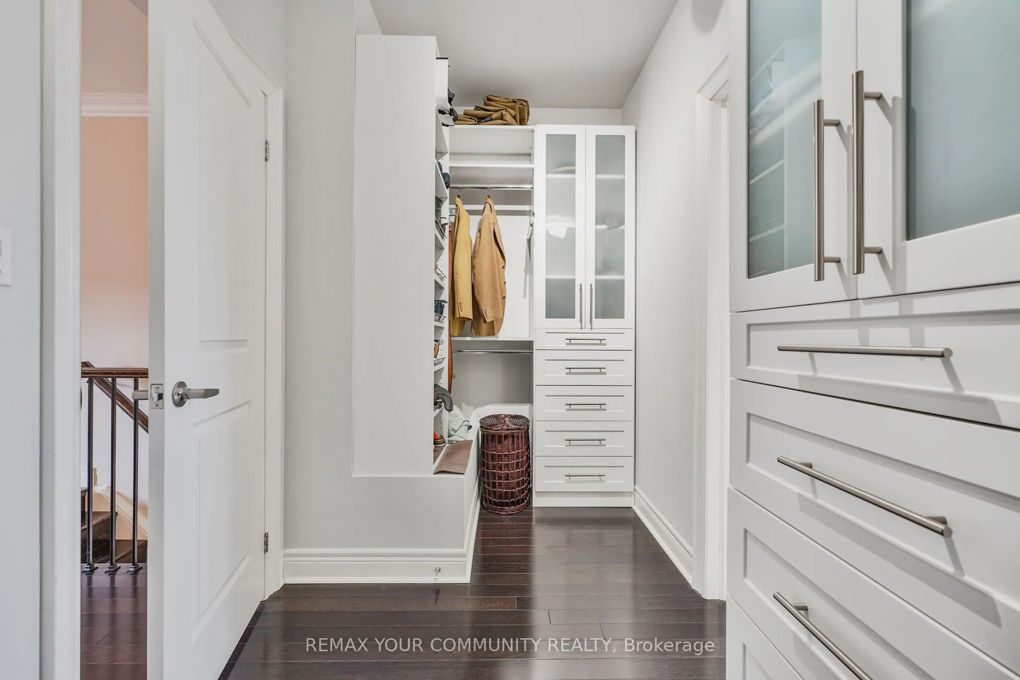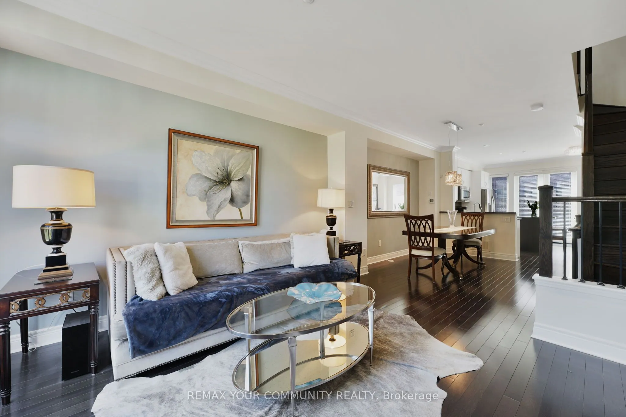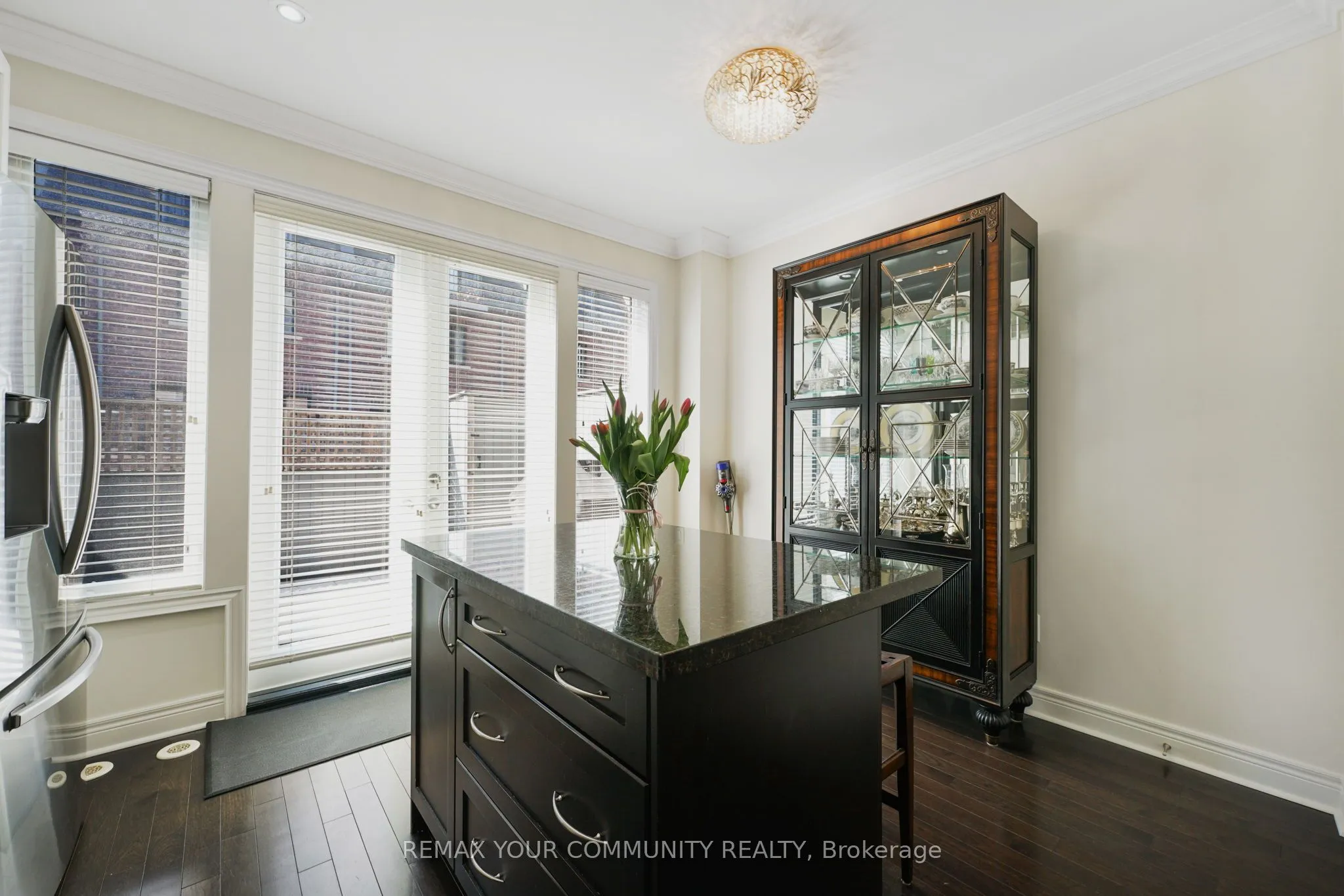 Riverside Luxury Townhouse for Sale. Welcome to a peaceful luxury townhouse community in matured Woodbridge, surround by Market Lane Shops, Restaurants, Supermarkets, Public Transit, easy access to HWY 27, 427, 407 and 50. A premium lot, facing a quiet private community park. It provides a save, elegant, spacious and economical life-style-living, with security monitored, concealed ceiling fire-sprinklers throughout and an oversized indoor two-car tandem garage with generous storage space. Rich wood floors and stairs with 9ft ceilings and crow-moldings are throughout the home. The entry-level floor has heated ceramic floors, one washroom and a spacious den with large wood shutter windows facing the private park area – ideal for office, exercise or bedroom use. The primary floor level has an open-concept layout with large windows facing the private park. A gas fireplace with stone-facing enriches has spacious living and dining area. The Kitchen has generous cabinet storage and a pantry. Granite countertops, including the kitchen island has generous cabinet storage and a pantry. Granite countertops, including the kitchen island with additional storage space. The refrigerator, dishwasher and gas-stove are stainless steel, and large size microwave. Double French doors exit’s the kitchen into a spacious private outdoor patio balcony. The secondary floor level has 2 spacious bedrooms, one with wall-to-wall windows for a breathtaking view of the community private park. A full bathroom services the floor level, along with the laundry room with ample storage space. The grand master bedroom has a walk-out balcony, a custom-built walk-in closet and a large spa-like 5 pcs ensuite with double-sink and a jacuzzi.