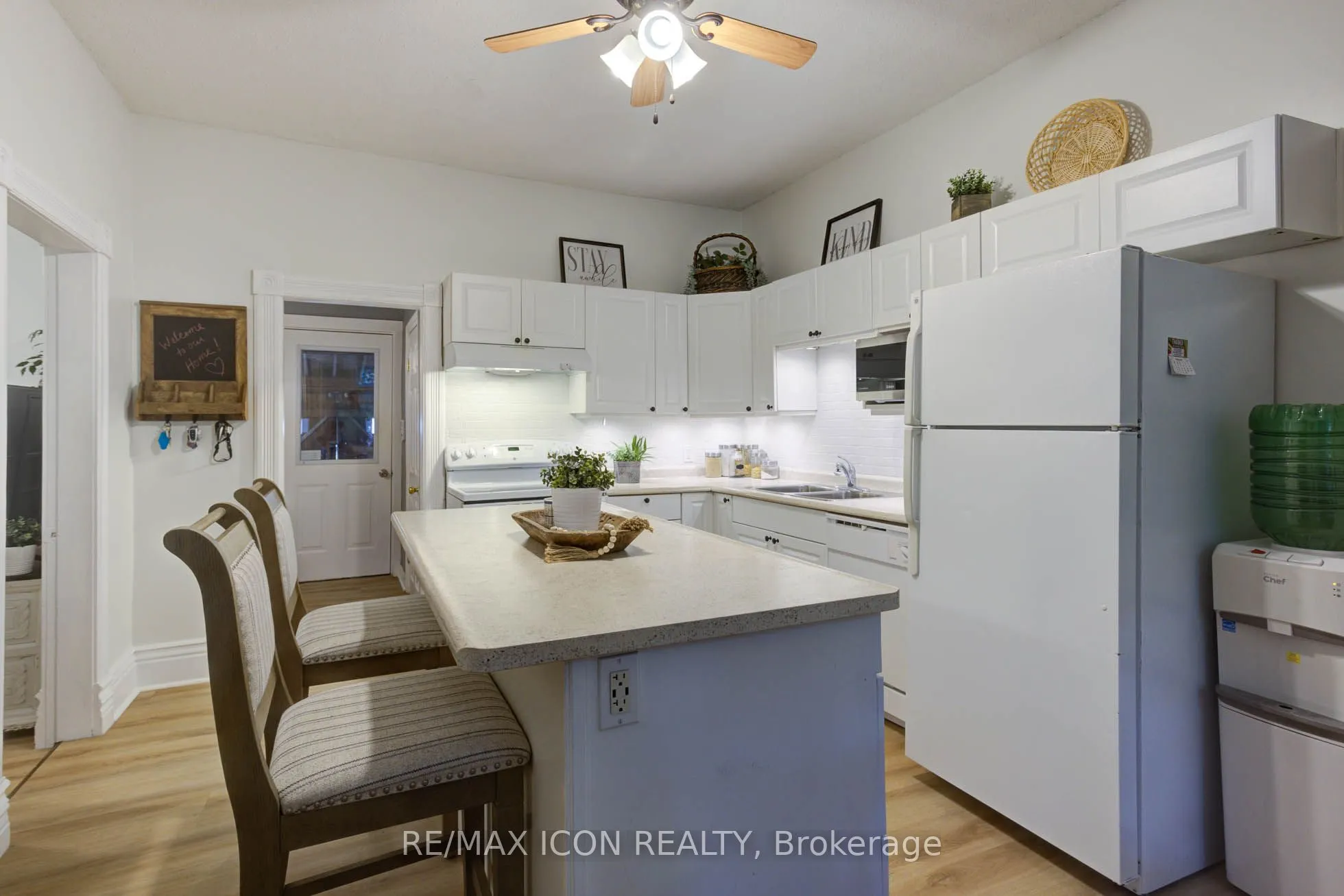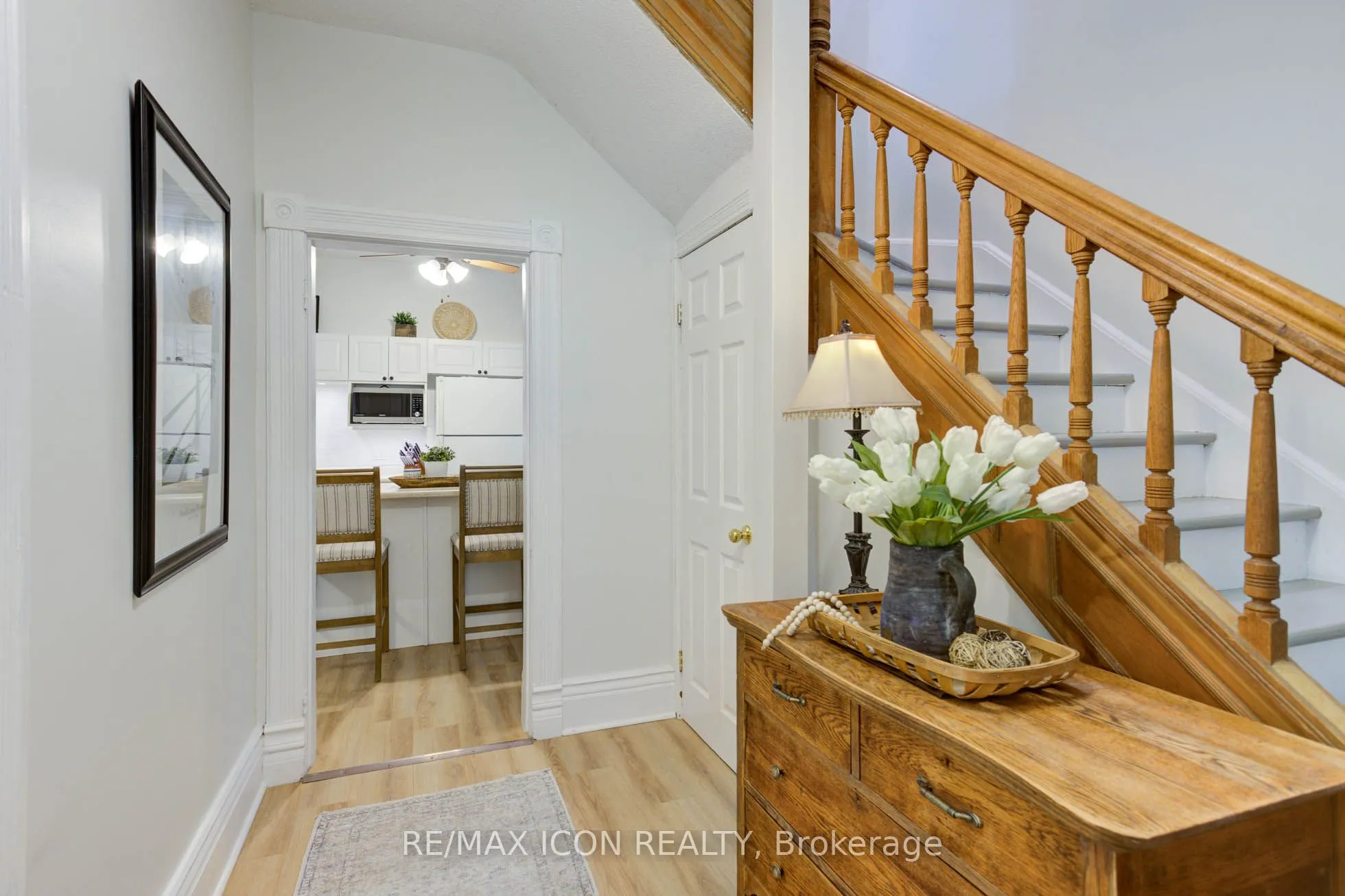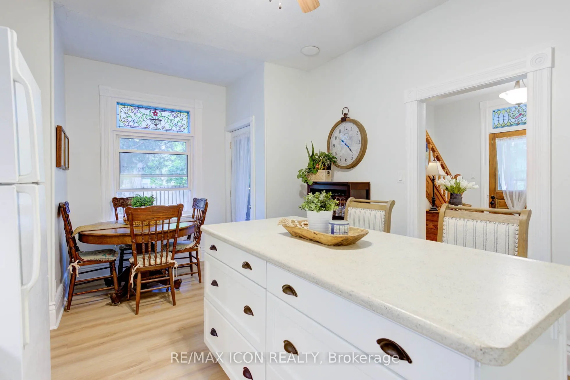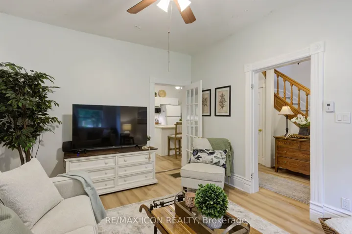 Classic curb appeal meets everyday comfort in this inviting two-storey, turn-of-the-century home, set on a spacious corner lot with a wrap-around porch and mature maple trees. Inside, you’ll appreciate the original stained glass windows and woodwork, paired seamlessly with updated luxury vinyl plank flooring and a stylish 4-piece bathroom featuring a tiled tub surround and warm wood accents. The kitchen is both functional and welcoming, centred around a generous island finished with classic stainless steel cup pulls-perfect for everyday living and gathering. Offering 3 bedrooms and 3 bathrooms, this home has been well cared for and updated to provide comfort and peace of mind. The outdoor space is equally appealing, with a large yard shaded by established trees and plenty of room to relax or entertain. The double car garage offers great space for vehicles, hobbies, or storage. Important note: this is a semi-detached home, attached to a small neighbouring cottage-style residence. Located in the heart of Mount Forest, you’ll enjoy the warmth of a close-knit community with the convenience of being just under an hour to Waterloo, Guelph, and Orangeville.Recent updates include: garage roof (2023), house roof (2015), garage side door (2021), second-floor 4-piece bathroom (2021), main floor bathroom with laundry (2024), and water softener (2024).A wonderful opportunity to enjoy character, space, and modern updates-all in a welcoming small-town setting.