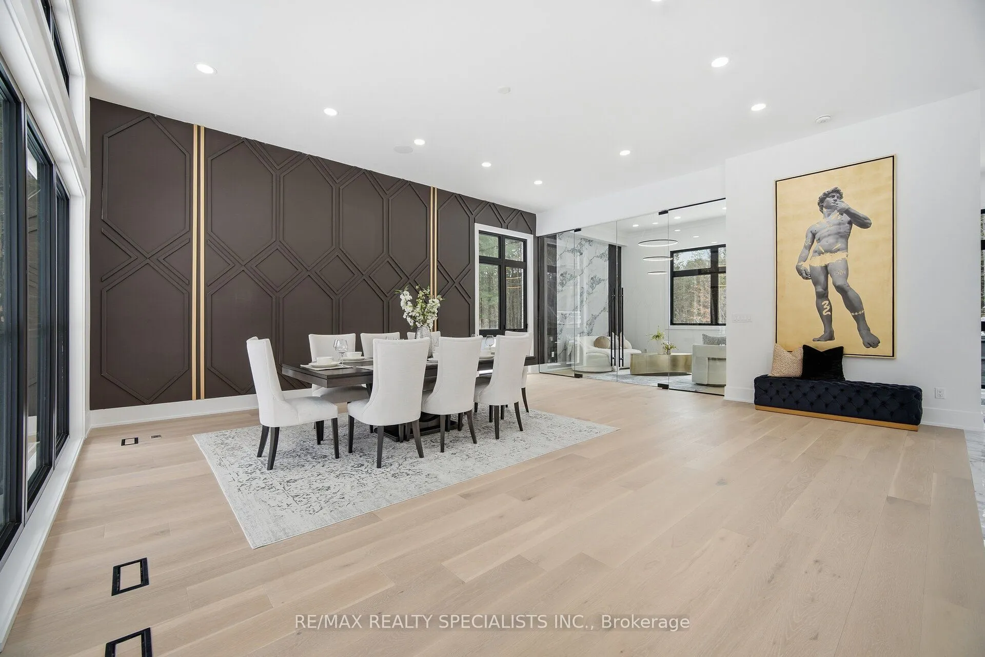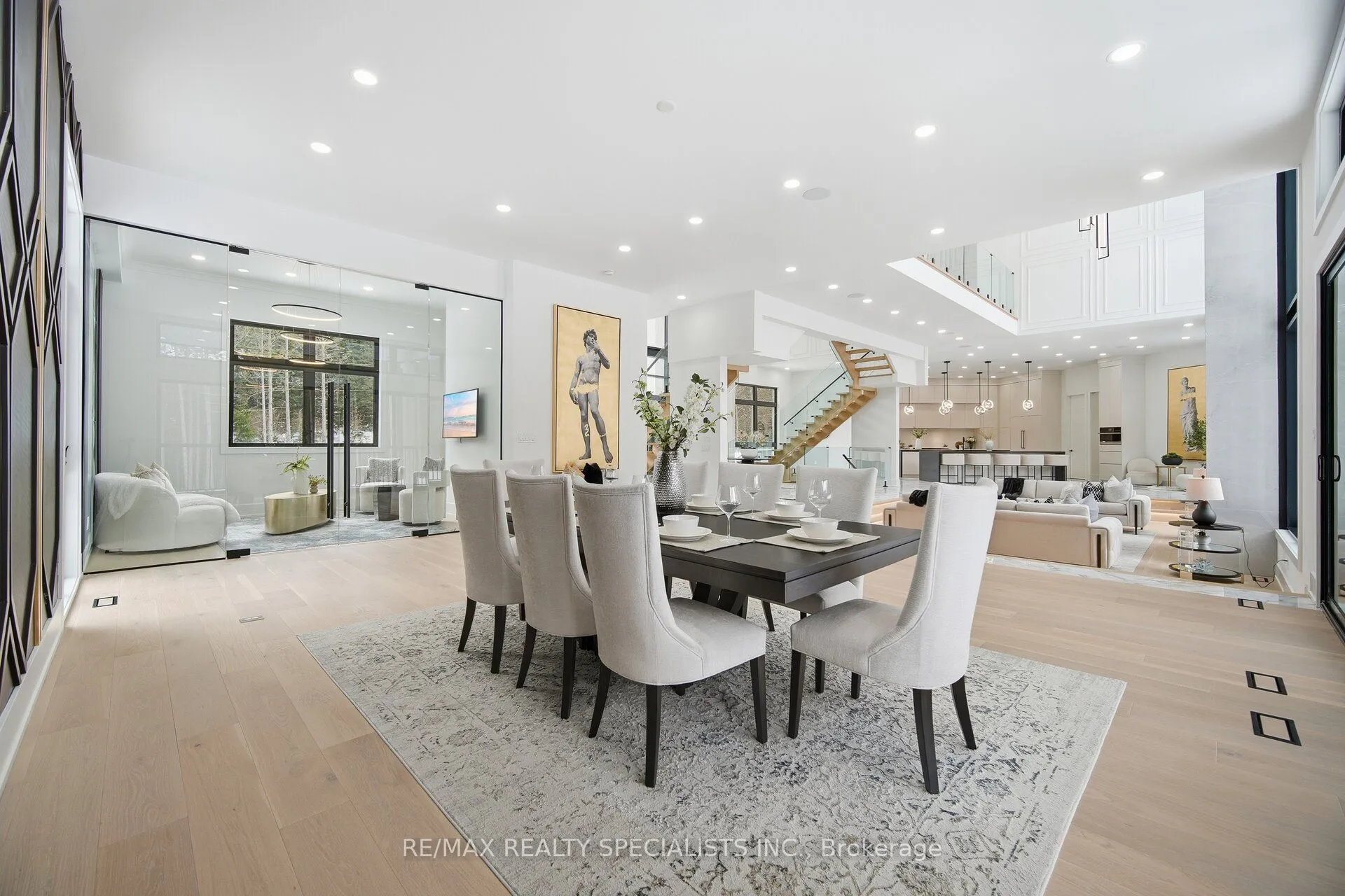 Welcome to this exceptional luxury estate, gracefully set on 9.3 acres of pristine land along the coveted Gore Road. A true architectural masterpiece, this recently built residence offers 6,952 sq. ft. of above-grade living space plus an exquisite newly finished walk out basement, where every detail reflects sophistication, comfort, and timeless elegance. From soaring ceilings and bespoke finishes to the serene private backyard, this is more than a home-it’s a lifestyle. The grand entrance makes a striking first impression with a dramatic double staircase that sets the tone for the refined design throughout. The main level is adorned with 7 3/4″ Snow White Oak hardwood flooring an delegant 7 1/2″ baseboards, creating a seamless and sophisticated aesthetic. Designed with the modern entertainer in mind, the home features two state-of-the-art kitchens equipped with premium appliances, oversized islands with built-in wireless charging stations, and a spacious walk-in pantry-perfectly balancing style and functionality. The show-stopping family room boasts a breathtaking 23-foot open-to-above ceiling, offering an extraordinary space for both grand entertaining and everyday luxury. This remarkable residence offers five generously sized bedrooms, each complete with its own spa-inspired ensuite featuring heated floors and wall-mounted toilets for ultimate comfort. Additional highlights include a private nanny suite above the garage. A rare offering where thoughtful design meets unparalleled luxury. Schedule your private tour today and experience this extraordinary estate for yourself.