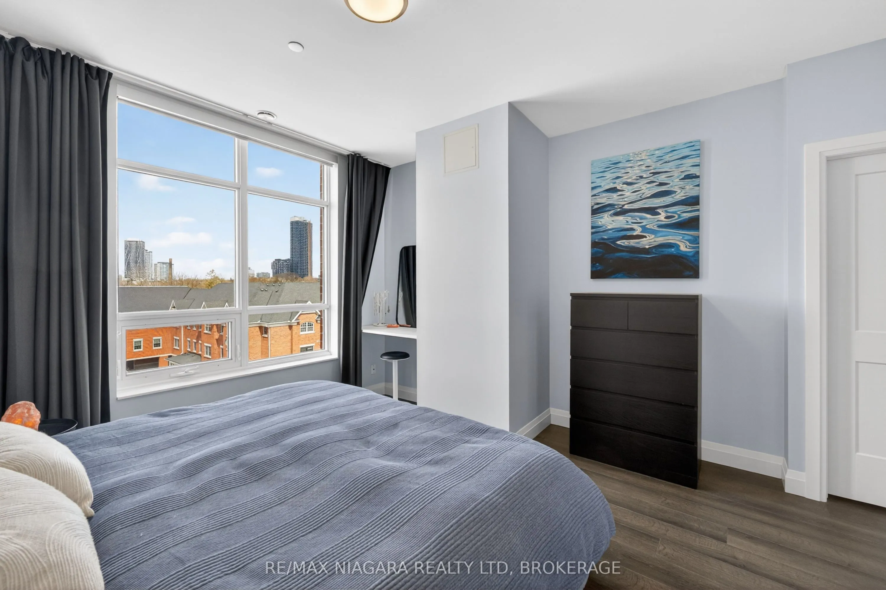 Experience elevated modern living in this bright two-bedroom, two-bathroom unit at The Barra on Queen Condos, 399 Queen St S, Kitchener, ON, Unit 403. This large corner unit situated on the 4th floor with stunning park views, breathtaking sunsets, and abundant natural light from your private 80-square-foot balcony. Boasting 1,055 square feet of space, including a 975-square-foot suite, this home features nine-foot ceilings, in-suite laundry, fresh paint, a stylish kitchen with upgraded backsplash, faucet, reverse osmosis water system, a walk-in closet with custom shelving, and a luxurious ensuite with upgraded glass shower. Two owned parking spaces, including one underground and one surface spot, provide unmatched convenience. The building offers an array of amenities including a gym, party room, a guest suite that can be booked for visitors, outdoor BBQ and patio area, dog washing station, and visitor parking. Ideally located near downtown, restaurants, cafes, Victoria Park, the hospital, Iron Horse Trail, and the Innovation District, this unit combines comfort, functionality, and an unbeatable location for modern city living.