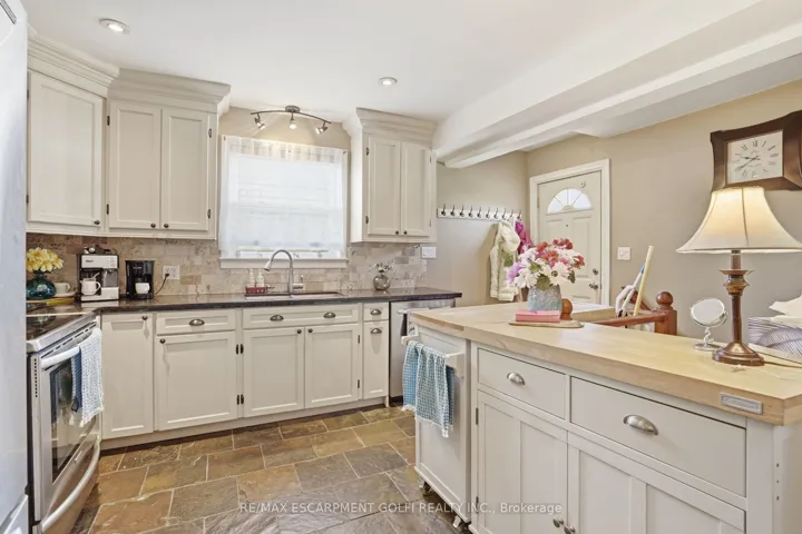 Beautiful solid brick bungalow, perfectly located in the heart of Hamilton Mountain. Close to 2,000sq.ft of total finished living space, with 2+1 beds & 2 full baths, step inside to cherry redwood hardwood floors in the bright living & dining areas, complemented by a bay window, and 7 updated windows that add natural light. The separate dining room features custom cabinetry, the kitchen offers granite counters, SS appliances & slate tile floors. The fully finished basement, accessible by a separate back entrance, incl. a spacious living room, additional bedroom, full 3pc. bath, 5 windows, kitchenette sink, laundry rm and lots of storage perfect for an in-law suite or rental potential. Laminate flooring and updated finishes add to the appeal. Additional features include an owned hot water tank, central air, and updated main-level windows. Outside, the expansive 50×138.8ft lot offers a lush, fully fenced backyard oasis w/ mature trees, a gazebo-covered porch, serene pond waterfall plus extra storage space in shed. The large two-car detached garage, complete with its own electrical panel 3 windows, presents possibilities for a suite, home office or workshop. With parking for up to 2 vehicles in the garage & 5 on the driveway, there’s plenty of space for guests & family. Location is everything and this home has it all! Just minutes from schools, grocery stores, banks, parks, recreation centers, Limeridge Mall, and downtown Hamilton’s Jackson Square. Commuters will appreciate proximity to 403, Lincoln Alexander Parkway, express train service to Toronto (5 mins away) & a short drive to Niagara Falls. Plus, minutes to Mc Master University and Mohawk College and easy access to major bus routes, mins to Go-Transit/Train terminal, Go-Bus. Don’t miss this incredible opportunity to own a beautiful bungalow home in a prime Mountain location!
