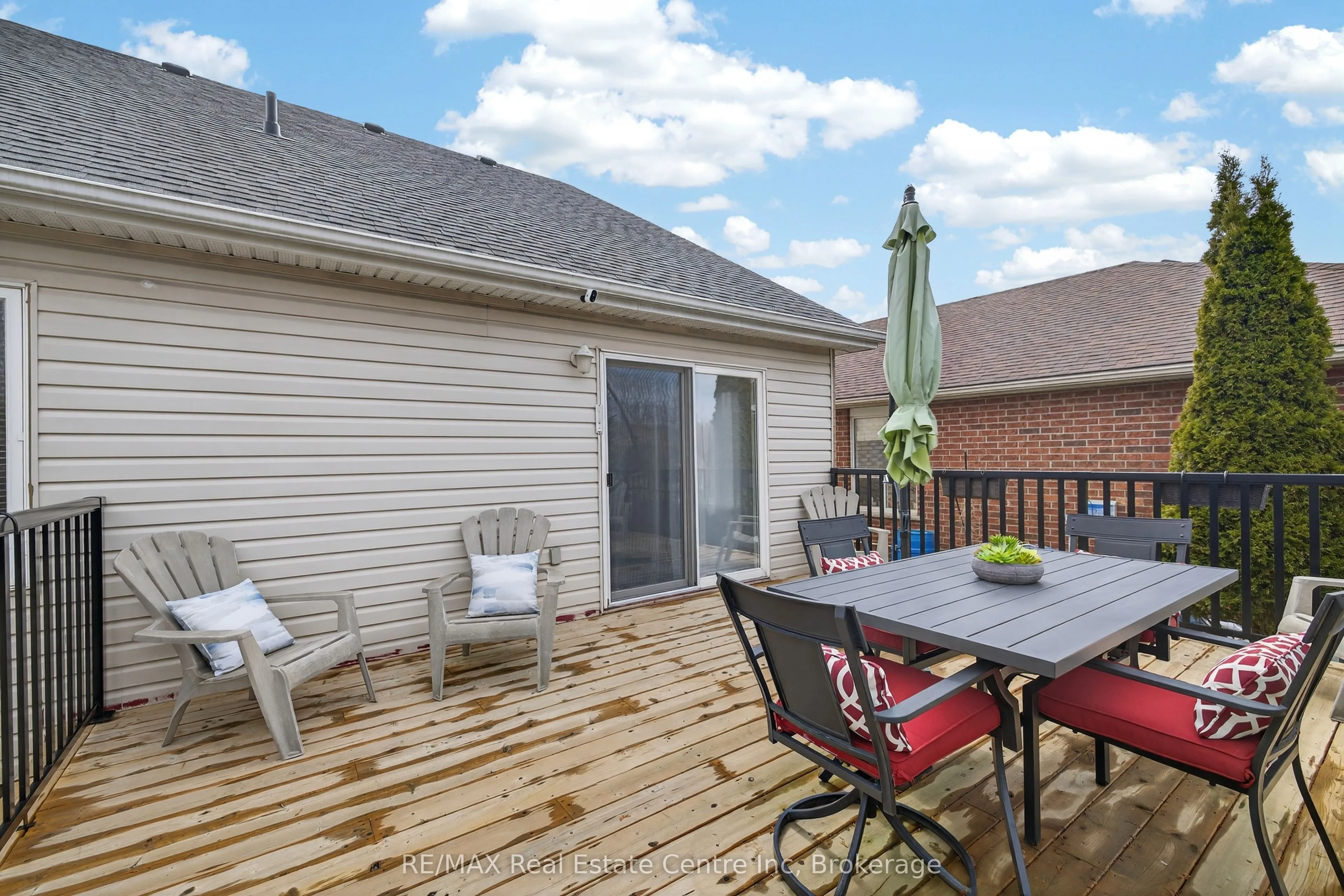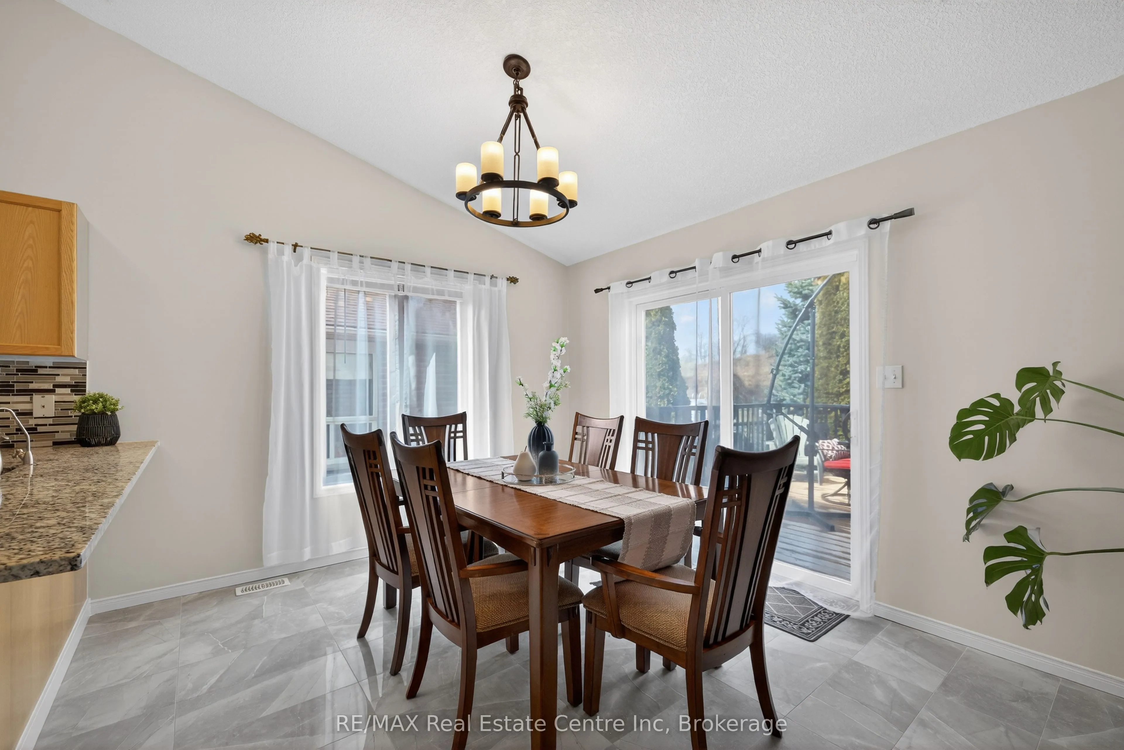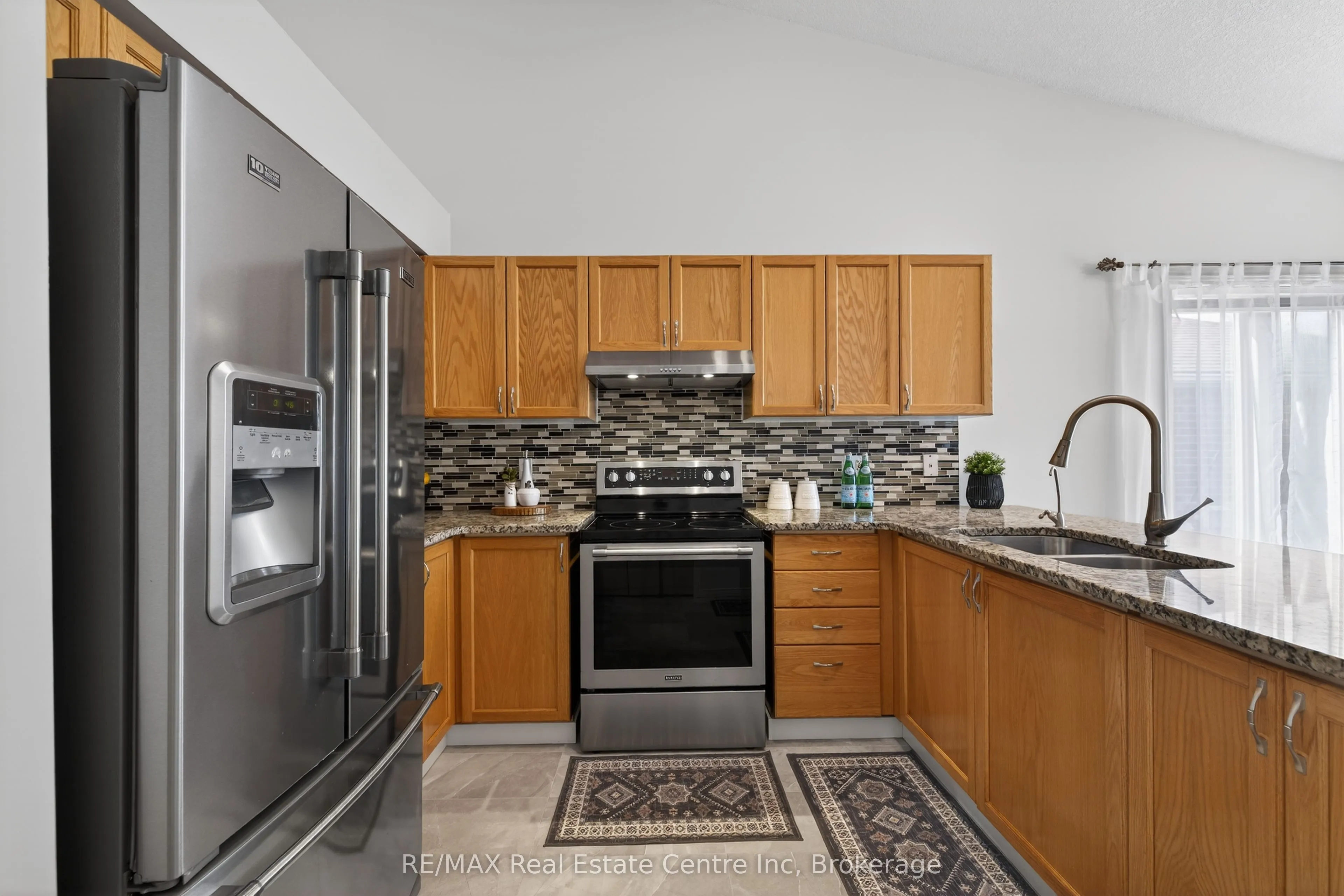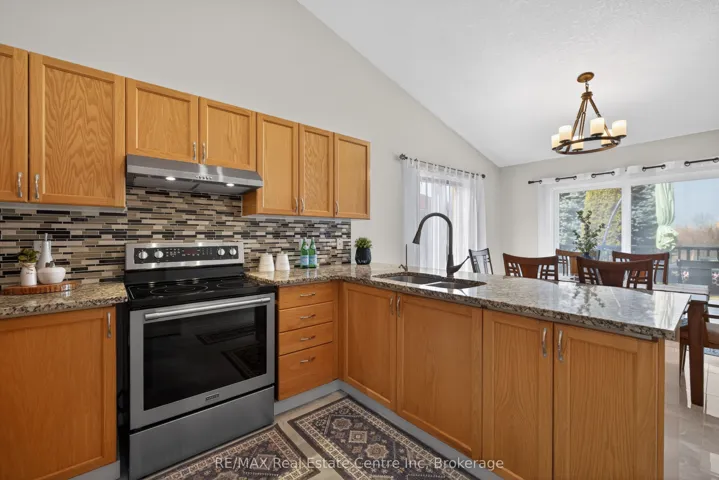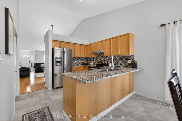 Welcome to 91 Flaherty Dr, an exceptional bungalow on a rare, oversized lot nearly 200 feet deep and over 2,500 sq ft of finished living space. This well-maintained home features a two-car garage and soaring vaulted ceiling that create an immediate sense of elegance and space. The main level offers three bright bedrooms and two bathrooms (one with a jacuzzi tub), anchored by an inviting living room filled with natural light. The recently updated kitchen is a highlight, featuring a charming dining area and sliding doors that lead directly to a new 14′ x 18′ deck-perfect for outdoor entertaining and summer BBQs. Kitchen updates include granite counters with a breakfast bar, a stylish backsplash, a new range hood, stainless steel appliances, and modern tiles throughout. The fully finished basement nearly doubles your living space, offering a massive Recreation room, a fourth bedroom, and a 4-piece bathroom complete with a corner jacuzzi tub and a separate shower. Additional conveniences include ample storage and a dedicated cold cellar. The main floor is spacious, bright, and freshly painted. Roof shingles 2017. Situated on one of the largest lots in the city with no rear neighbors, this home is just steps away from the West End Rec Centre and major shopping amenities (Costco, Zehrs, banks, LCBO…)