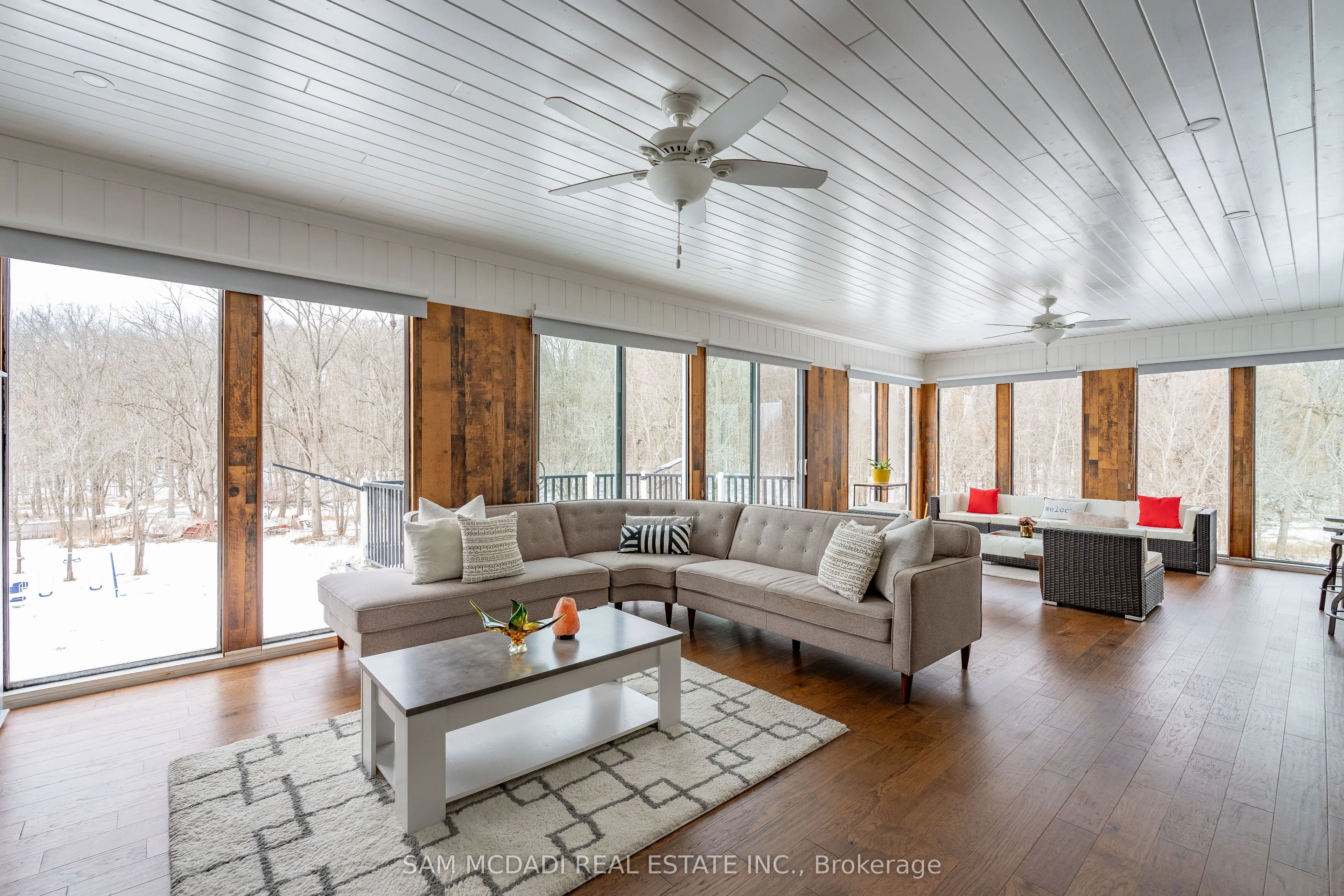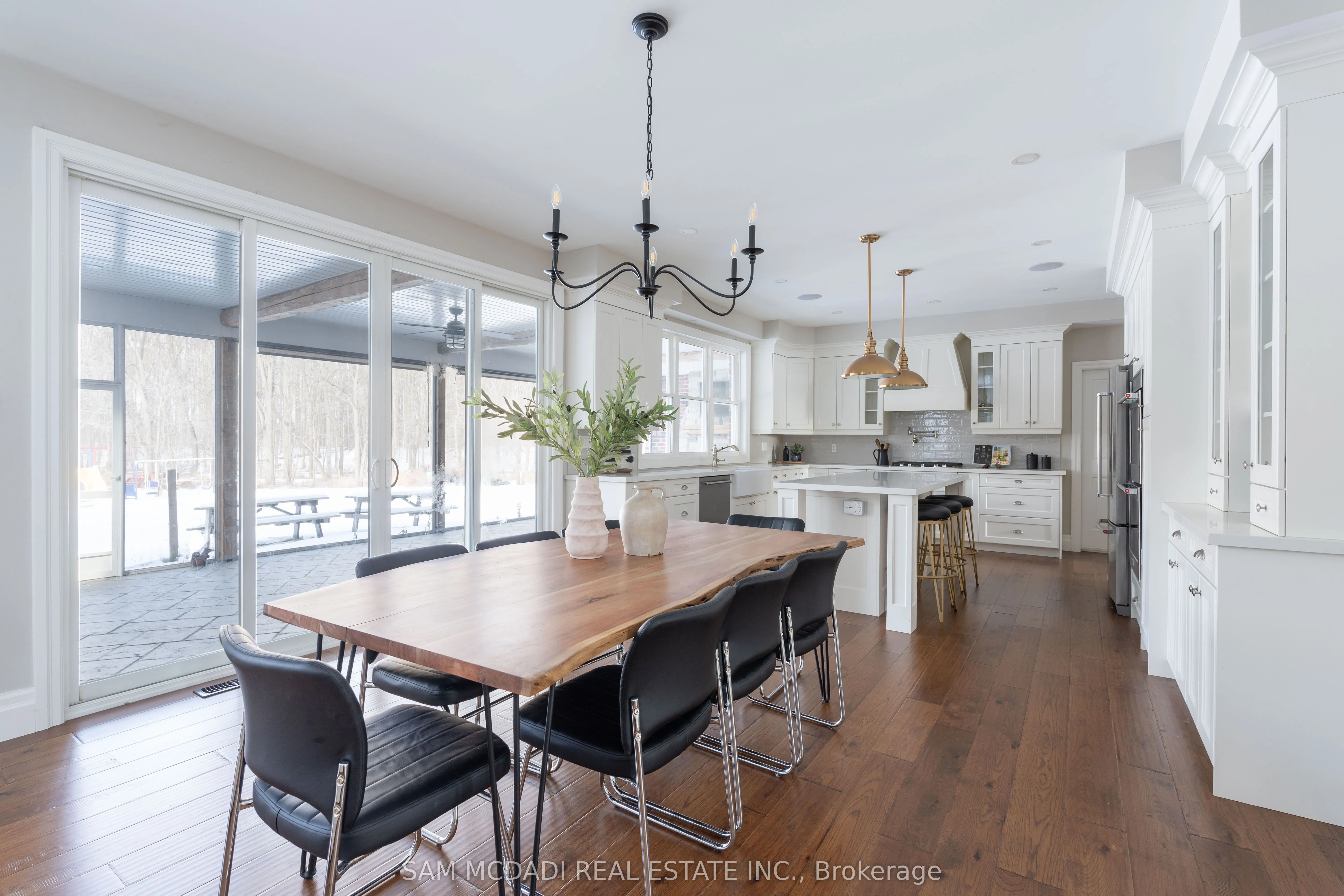 Welcome to 1096 Westbrook Rd! Nestled on a sprawling 10-acre property with a 943.58 ft. deep lot, this multi-generational home is designed for discerning families and buyers seeking versatility, and privacy. With an impressive setback behind its gated entrance, this exceptional property boasts approximately 6,937 sq. ft. of thoughtfully designed living space. The main level captivates with its rich hardwood floors, glistening pot lights, and effortless flow from room-to-room; including a den that easily converts into a bedroom. The combined kitchen and breakfast area is fully equipped with custom-built appliances, including a double oven, dishwasher, and stove and a walk-out to a patio. Step out to the screened patio, where a wood-burning fireplace creates a cozy atmosphere as you take in serene views of the expansive backyard; complete with a playground, perfect for children and family. The upper level is masterfully divided into two wings, offering functionality. The left wing features four spacious bedrooms, including a modern Owners suite with a 4-piece ensuite showcasing a freestanding tub and a shower with a built-in seating. A private balcony extends the suite, offering a peaceful space to unwind and enjoy the tranquil surroundings. The right wing serves as a self-contained living space, ideal for extended family or guests, with three bedrooms, a kitchen, a family room, and a sunroom warmed by a fireplace, which opens onto another private balcony. An elevator effortlessly connects all levels, including the fully finished basement. Here, you’ll find two additional bedrooms, a large open-concept recreation area, and a dedicated laundry space, offering endless possibilities for additional income, and entertaining. With its outstanding layout, modern upgrades, and private, picturesque setting, this is more than just a home its an opportunity to create lasting memories. Don’t miss out on this exceptional property! Boasts over $200K in upgrades!