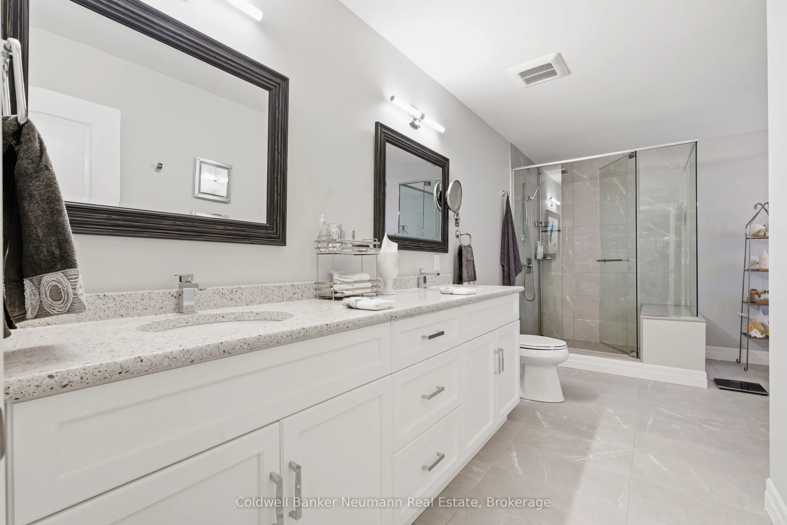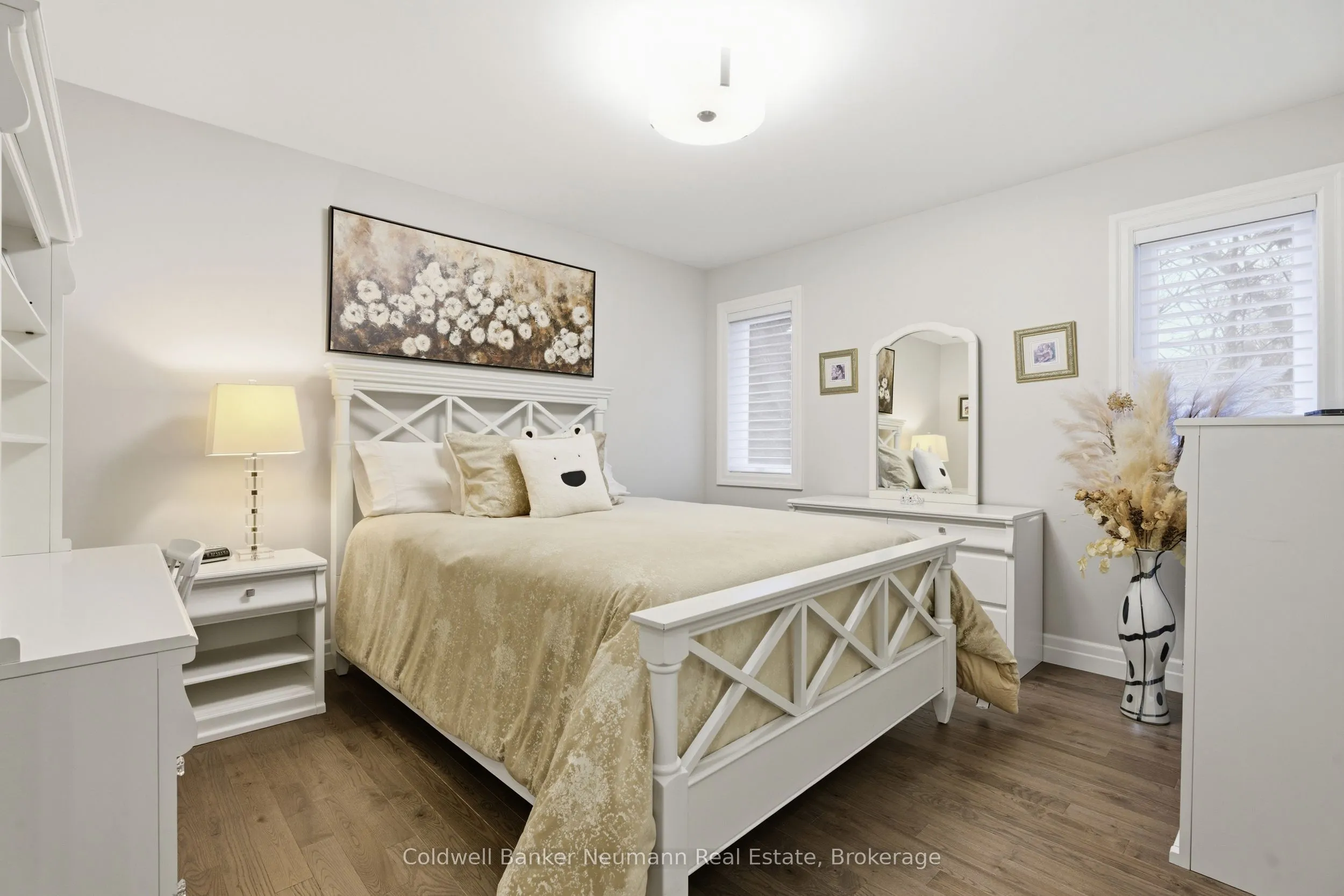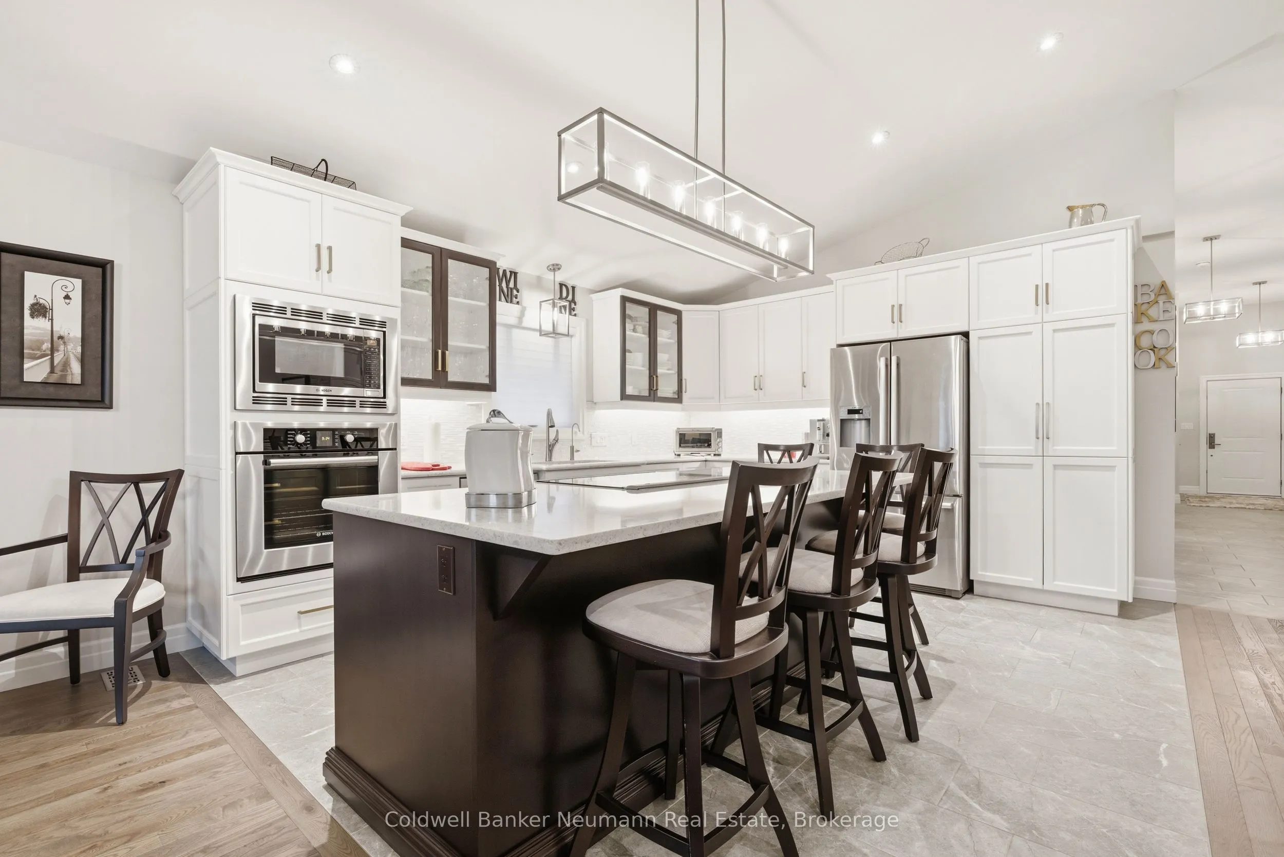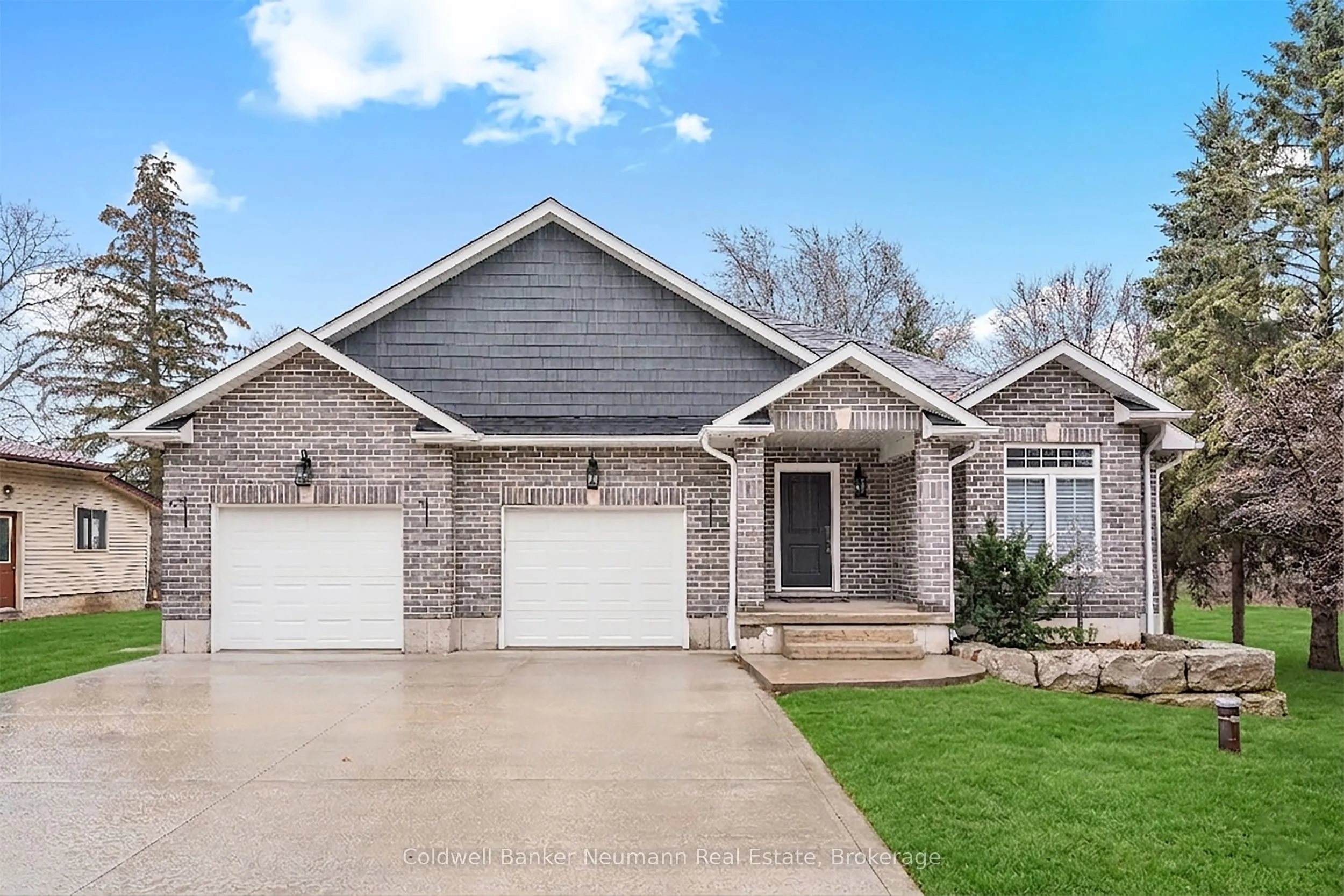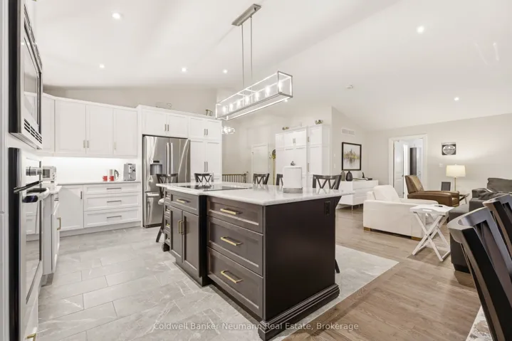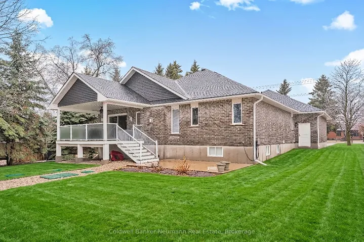 The owners custom-designed this spectacular 2,196-square-foot open concept bungalow on a large 80′ x 200′ lot, using top-quality materials throughout. The grand entrance shows the solid oak staircase with a wrought iron railing which leads to the basement. From the heated ceramic flooring in the ensuite bathroom to the hardwood and large ceramic tile flooring throughout, custom Bamco kitchen cupboards and bathroom vanities with built-in Bosch kitchen appliances, and quartz countertops throughout, with an expansive chef’s kitchen overlooking the great room with a gas fireplace. The dining room with its sliding doors will invite you to walk out to the composite deck with a glass railing and ground-level access to a concrete patio. The principal bedroom boasts a large walk-in closet, large glass shower enclosure with a bench and a separate therapeutic Bain Ultra tub, giving a true spa atmosphere. The large main bathroom can even welcome your overnight guests in style. All closets have custom built-ins. The concrete driveway is 27′ wide by 60′ long, accommodating 6 vehicles. The garage is an oversized double with a back door leading to the backyard, as well as a walkdown to a framed basement with insulated walls, ready for your preferred design completion. Pride of ownership is evident in every inch of this meticulously maintained home. The lawn irrigation system will help with managing a fully sodded lot of this size, with large mature trees and shrubs, while maintaining the impressive curb appeal of this beautiful bungalow. A full list of upgrades is available upon request.