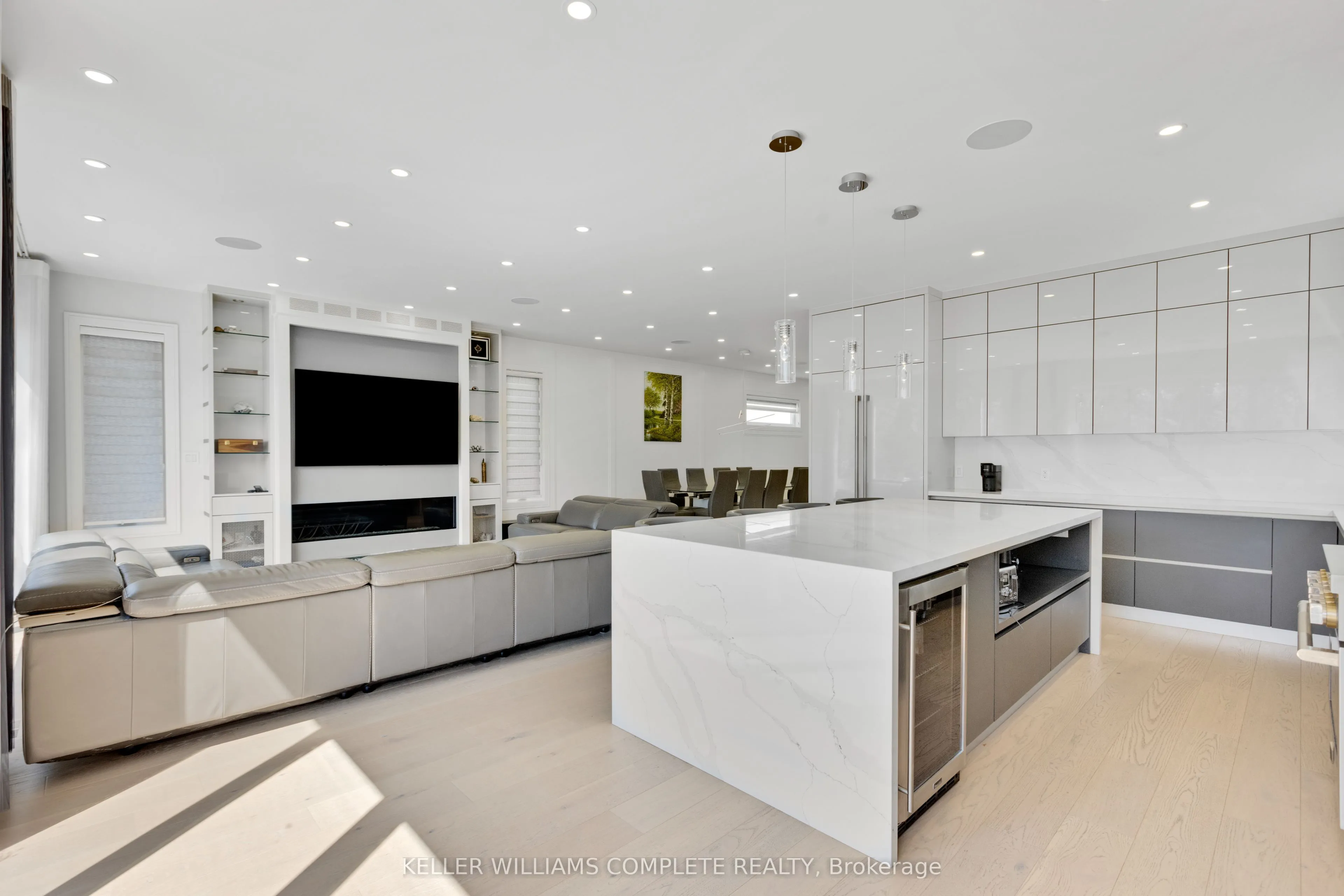 Welcome to 1362 Kenmuir Ave, a custom-built original owner home in prestigious Mineola, Mississauga, offering approximately 3,973 sq ft of elegant living space. The main floor features high ceilings, large windows, hardwood throughout, a private office, powder room, fireplace, and an open-concept layout centered around a chef-inspired kitchen with top-of-the-line appliances and walkout to the deck and backyard. Upstairs offers 4 spacious bedrooms, each with its own ensuite and walk-in or built-in closet, plus convenient second-floor laundry. The finished walkout lower level features high ceilings, built-in bar, wine wall, second laundry room, utility room, and excellent space for entertaining or in-law potential. Complete with built-in speakers, pot lights throughout, double garage, and parking for 6 cars.
