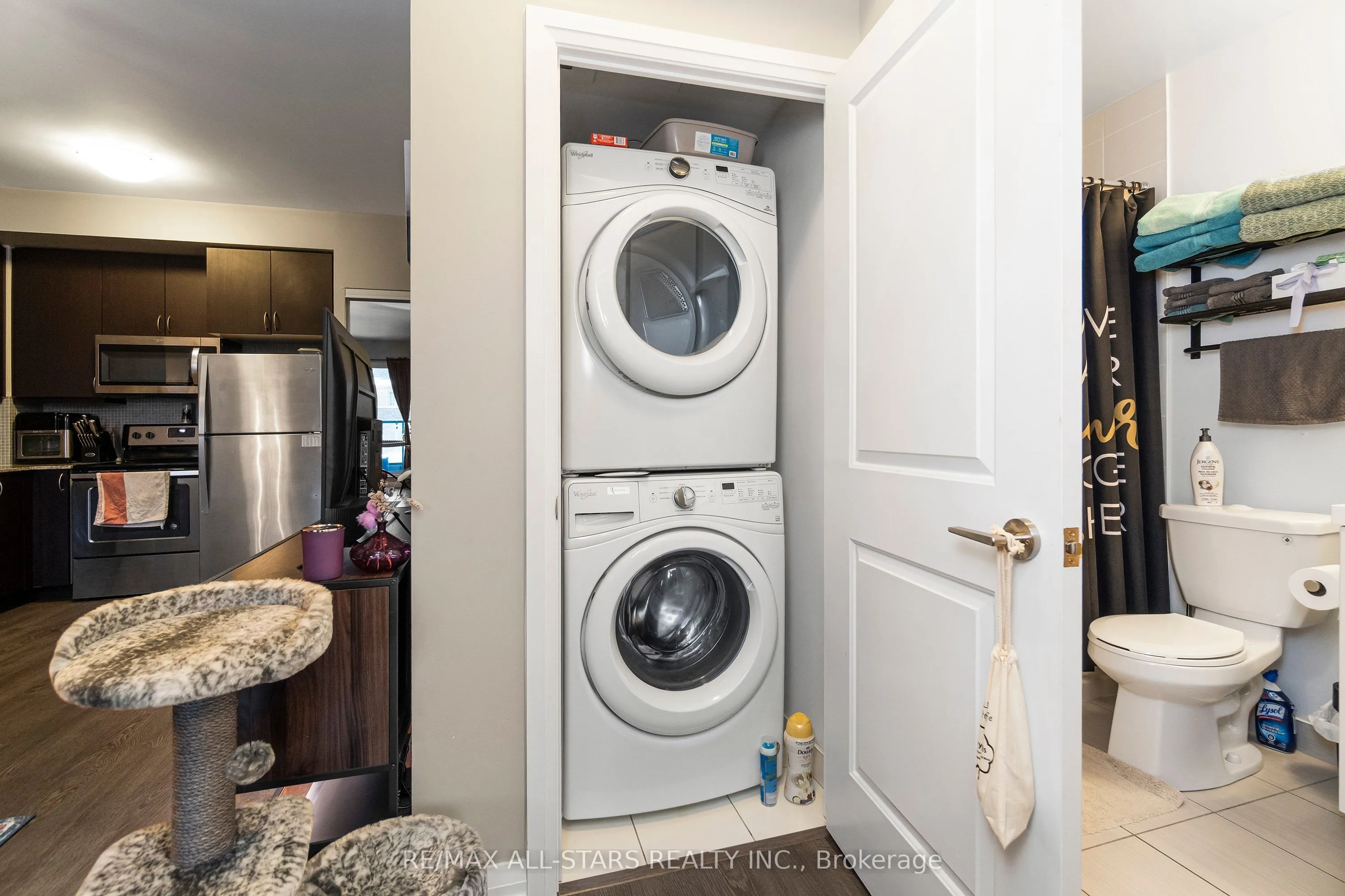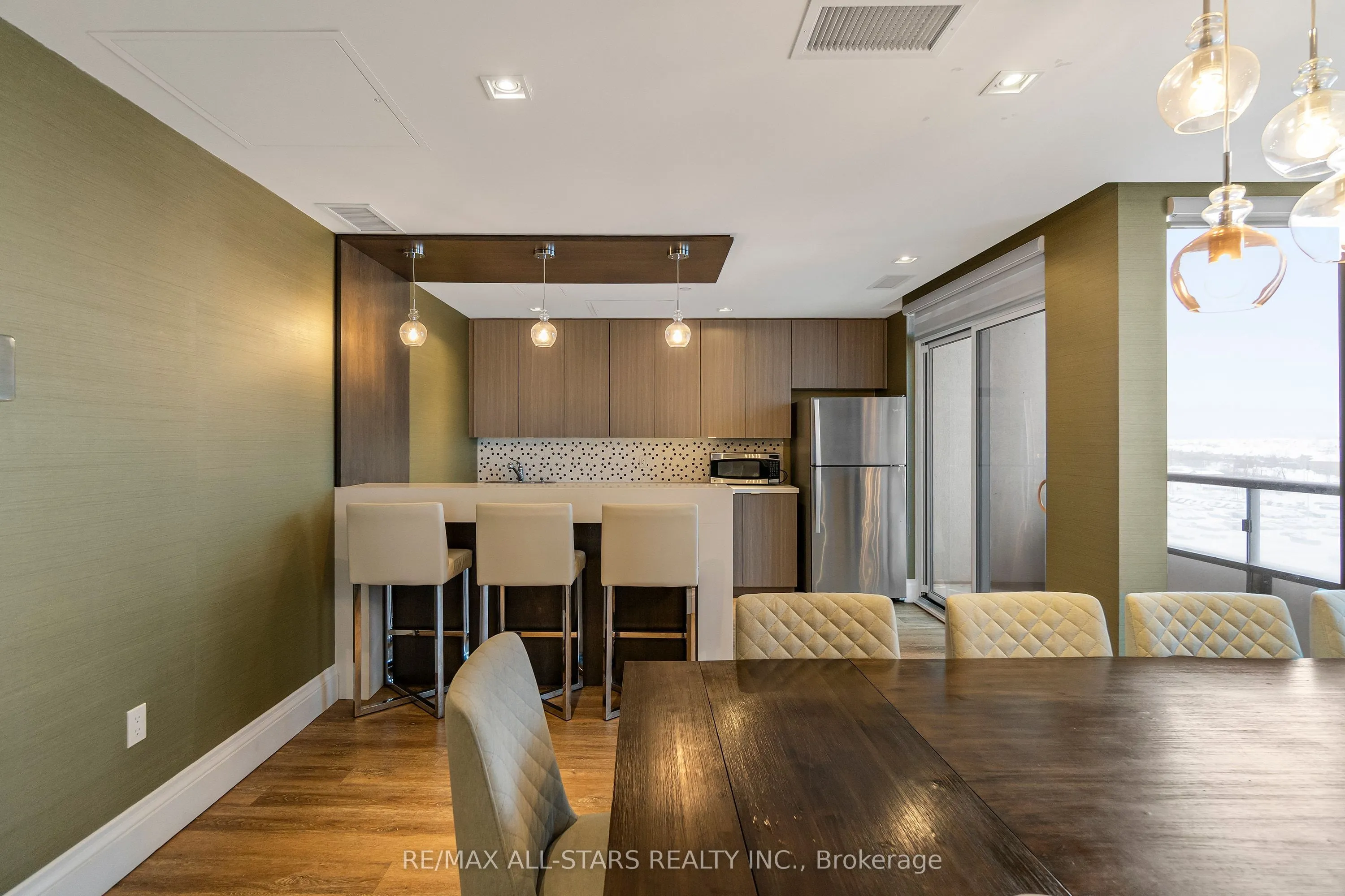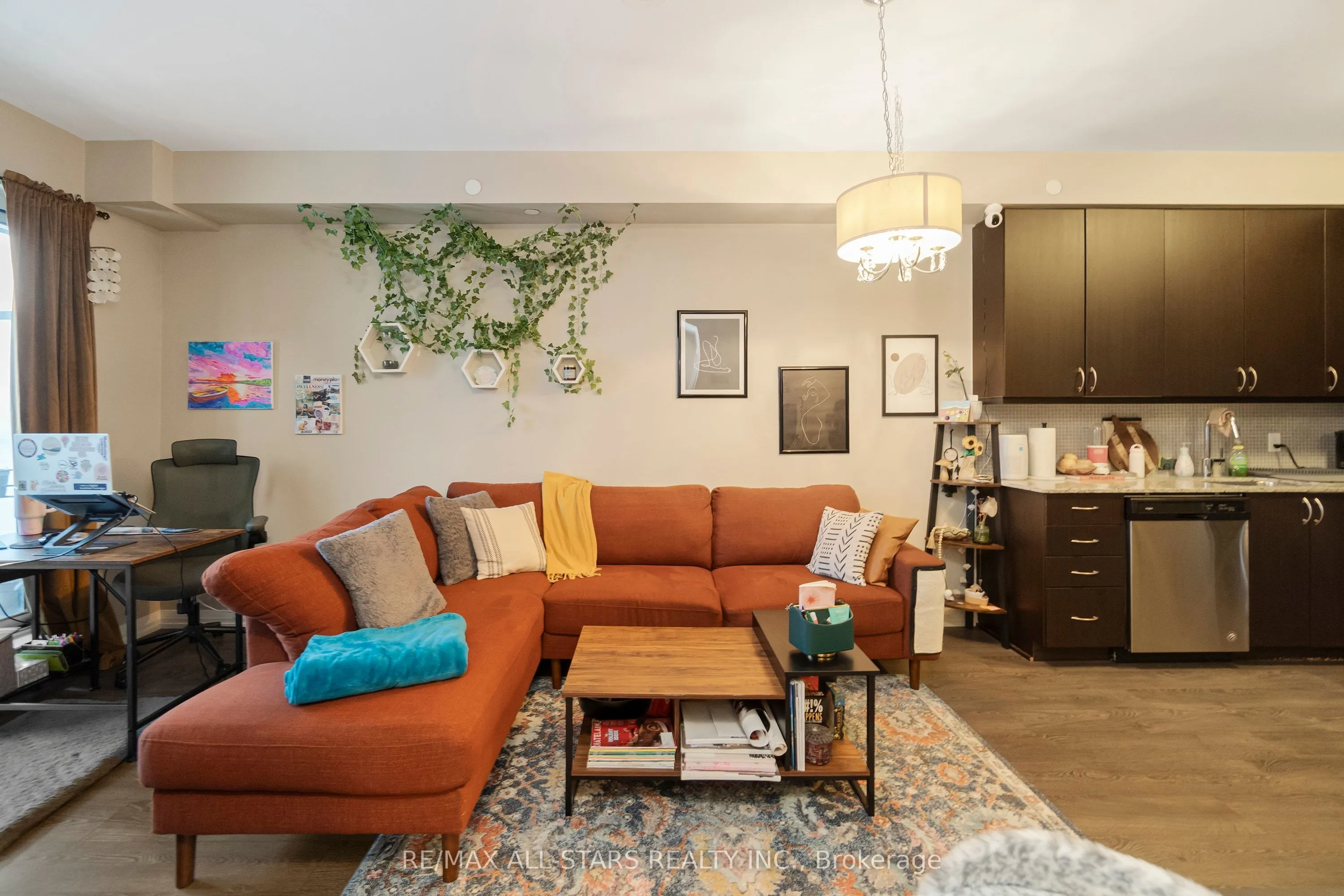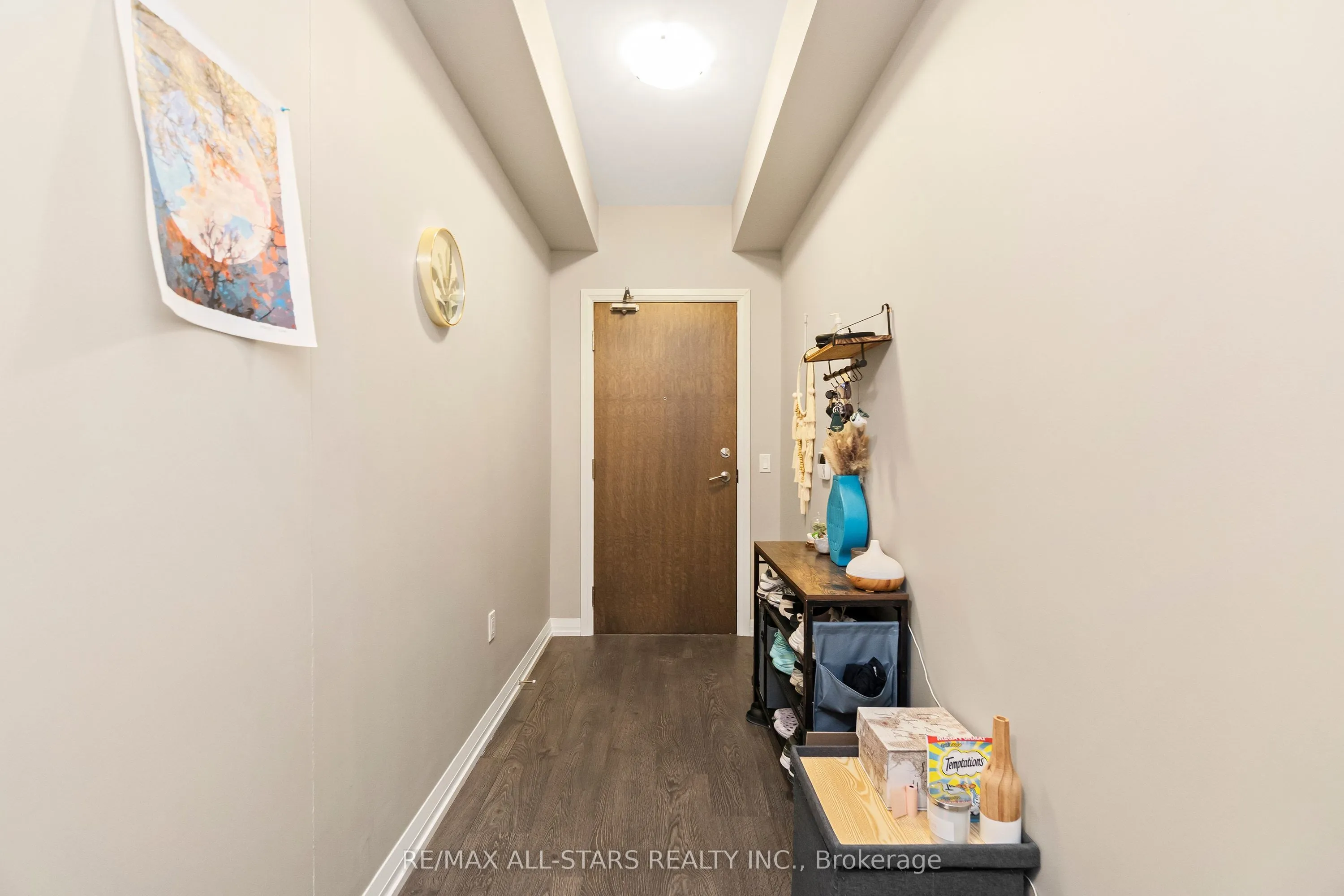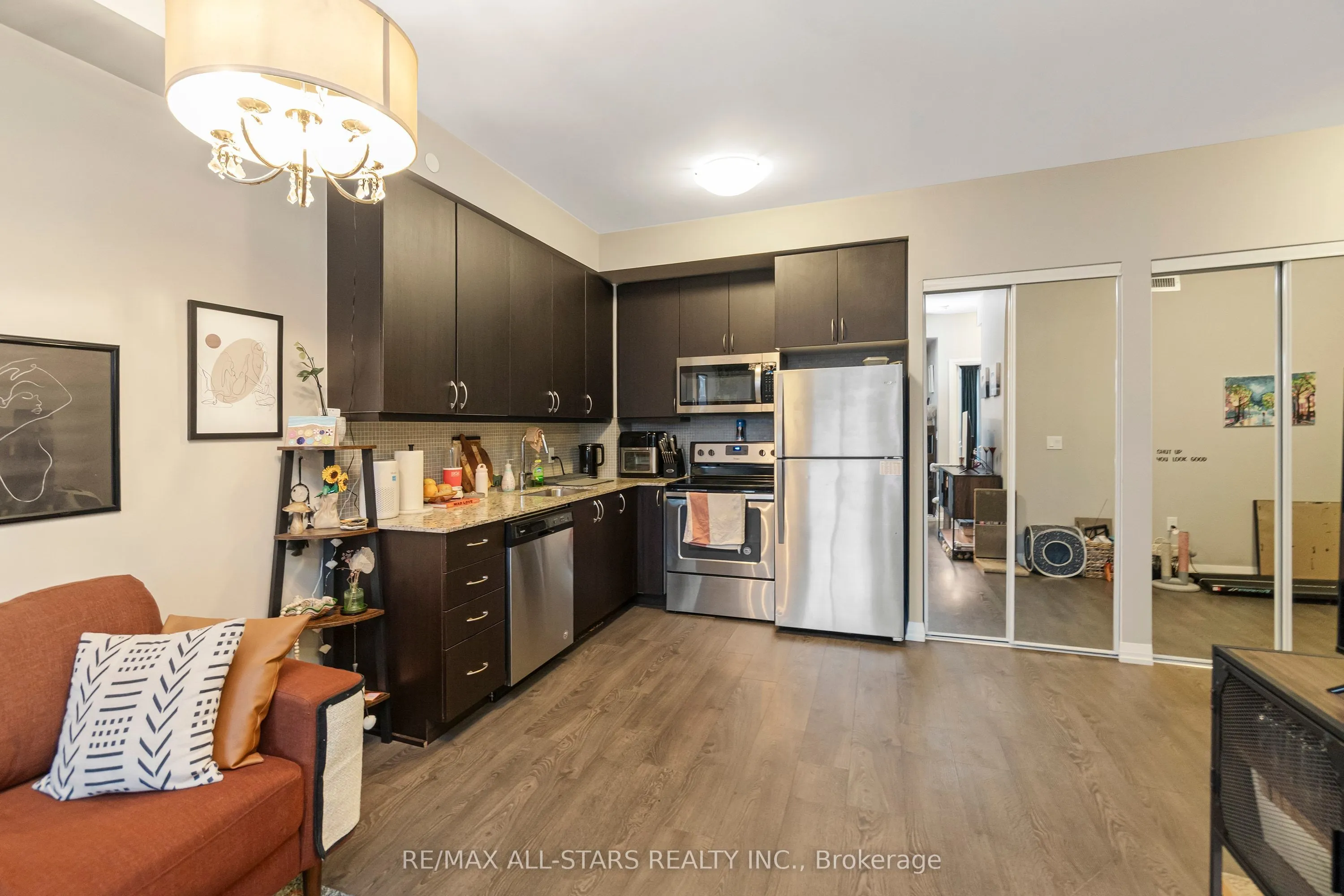 Amazing value in one of Markham’s most convenient and walkable locations “The Mark”, 221-9560 Markham Rd is the perfect opportunity for a first-time buyer, downsizer or savvy investor looking for lifestyle and long-term potential. Enjoy the ease of walking to the GO Train for a stress-free commute, and spend your weekends exploring Main Street festivals, local restaurants, shops, groceries, pharmacies and the surrounding nature trails just steps from your door. This well-managed boutique building offers concierge service and impressive amenities including a gym, incredible party/media/dining area/games room, guest suite, pet wash, car wash and an amazing rooftop terrace w bbq & outdoor garden area. Inside, the 683 sq ft 1 bedroom + den layout has 9 ft ceilings and is bright, open and highly functional, with a proper entryway that leads into a versatile den seamlessly integrated into the living space – ideal for working from home without feeling confined. The upgraded kitchen features granite countertops, stainless steel appliances and exceptional storage including a built-in pantry and front hall closet. The spacious living area accommodates full – sized furniture and opens to a west-facing balcony with high ceilings and large windows that fill the space with natural light-perfect for enjoying afternoon sun or evening summer cocktails. Laminate flooring runs throughout the main living areas for a modern, low-maintenance finish. The bedroom offers generous closet space, wall-to-wall windows and its own walk-out to the balcony, complete with remote control blinds for added comfort and convenience. One underground parking space and locker (locker: approx 5.9 feet by 2.8 feet) are included, making this an outstanding opportunity in a prime Markham location.