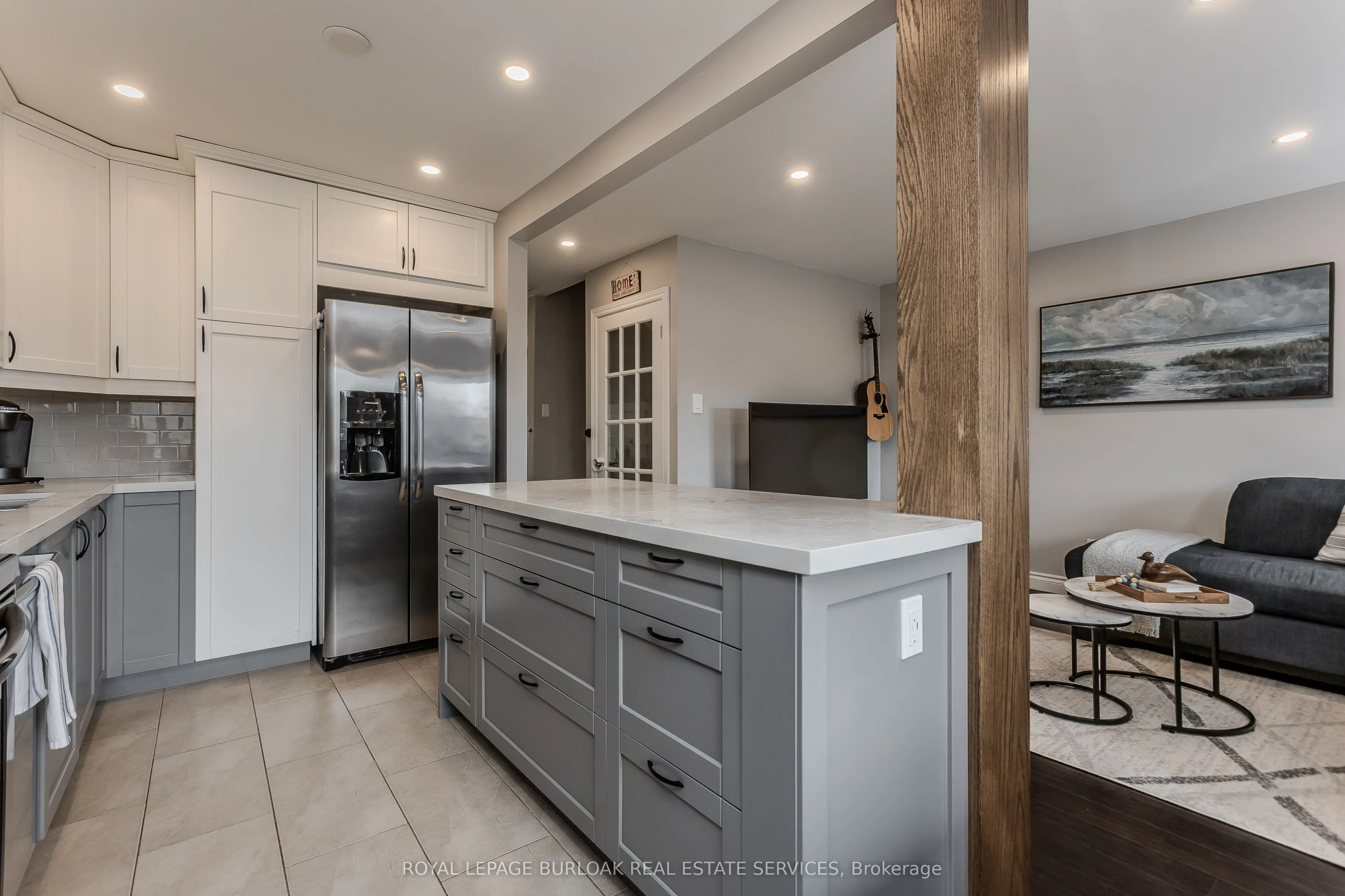 Welcome to this beautifully maintained townhouse condo, perfectly suited for growing families seeking comfort, style, and convenience. Nestled in a family-friendly neighbourhood just steps to everyday essentials and a short walk to the lake, this home offers the ideal blend of lifestyle and location. From the moment you arrive, the charming curb appeal sets the tone with a mature tree, interlock walkway, covered cedar wood porch-an inviting space to unwind, and new front door with premium retractable phantom screen (2019). The garage offers added convenience with bonus storage above. Inside, the main level showcases a bright, open-concept layout with wood/tile flooring throughout, skimmed ceiling and pot lights (2022) enhanced by smart switches. A welcoming foyer with wainscoting leads into the heart of the home. The fully renovated kitchen (2025) is a standout, featuring premium quartz countertops, centre island, custom cabinetry, subway tile backsplash, SS appliances, and a new Bosch dishwasher (2025), all accented by a warm white oak wood beam. The dining area includes a built-in credenza, while the living room offers a seamless walkout to the backyard-perfect for everyday living and entertaining. A convenient 2-piece powder room completes the main level. Upstairs, you’ll find three generously sized bedrooms and a 4-piece main bathroom with an oversized vanity, providing plenty of space for the whole family. The fully finished lower level adds valuable living space with a spacious rec room, dedicated home office area, laundry, and ample storage area with built-in racks. Pot lights with smart switches are continued throughout. Step outside to a fully fenced backyard featuring a slate grey composite tile patio, awning, and green space for kids or pets to play. Additional perks include a fully updated HVAC system, with ductless units. A fantastic opportunity to enjoy turnkey living in a vibrant, family-oriented community close to shopping, parks, and more.