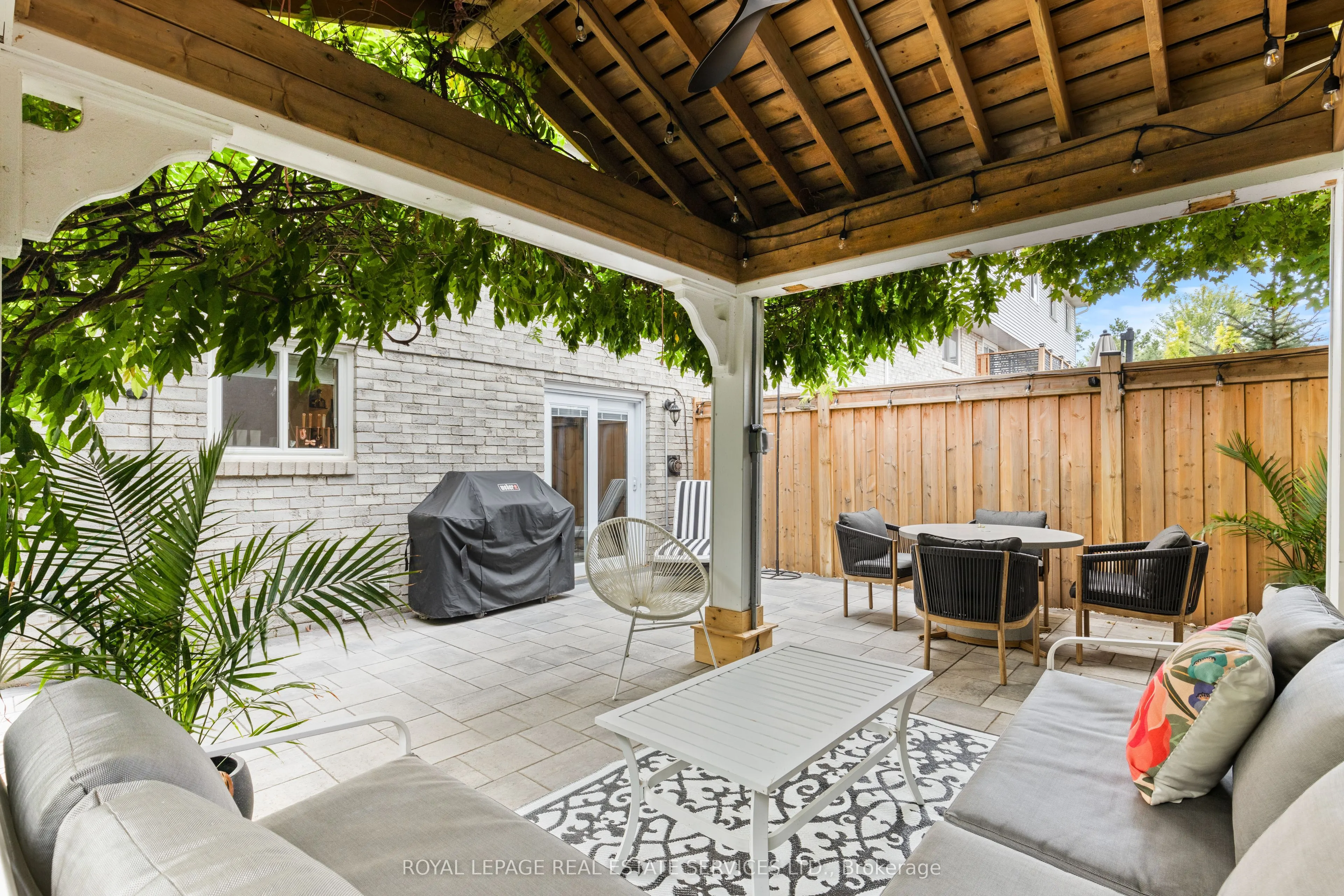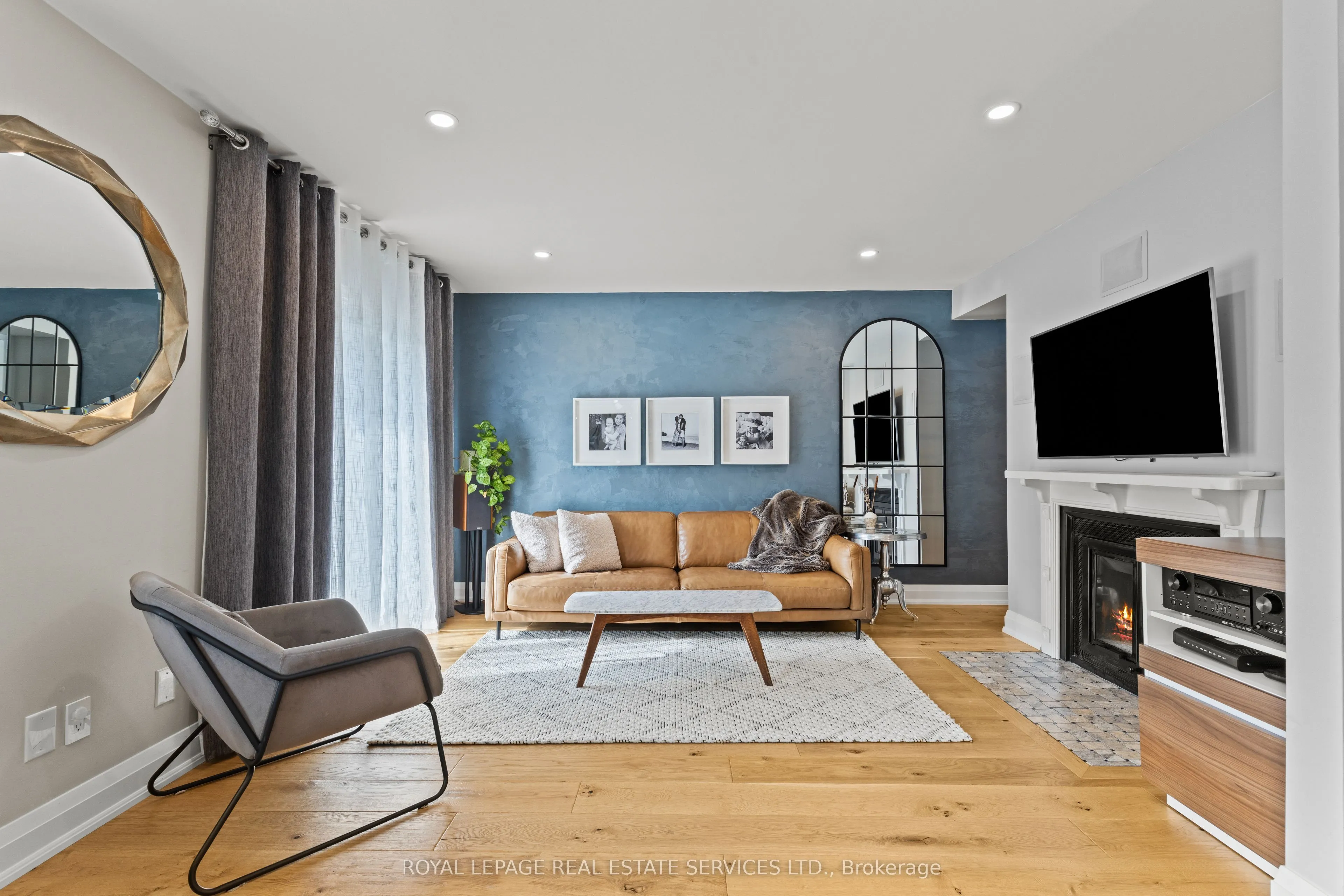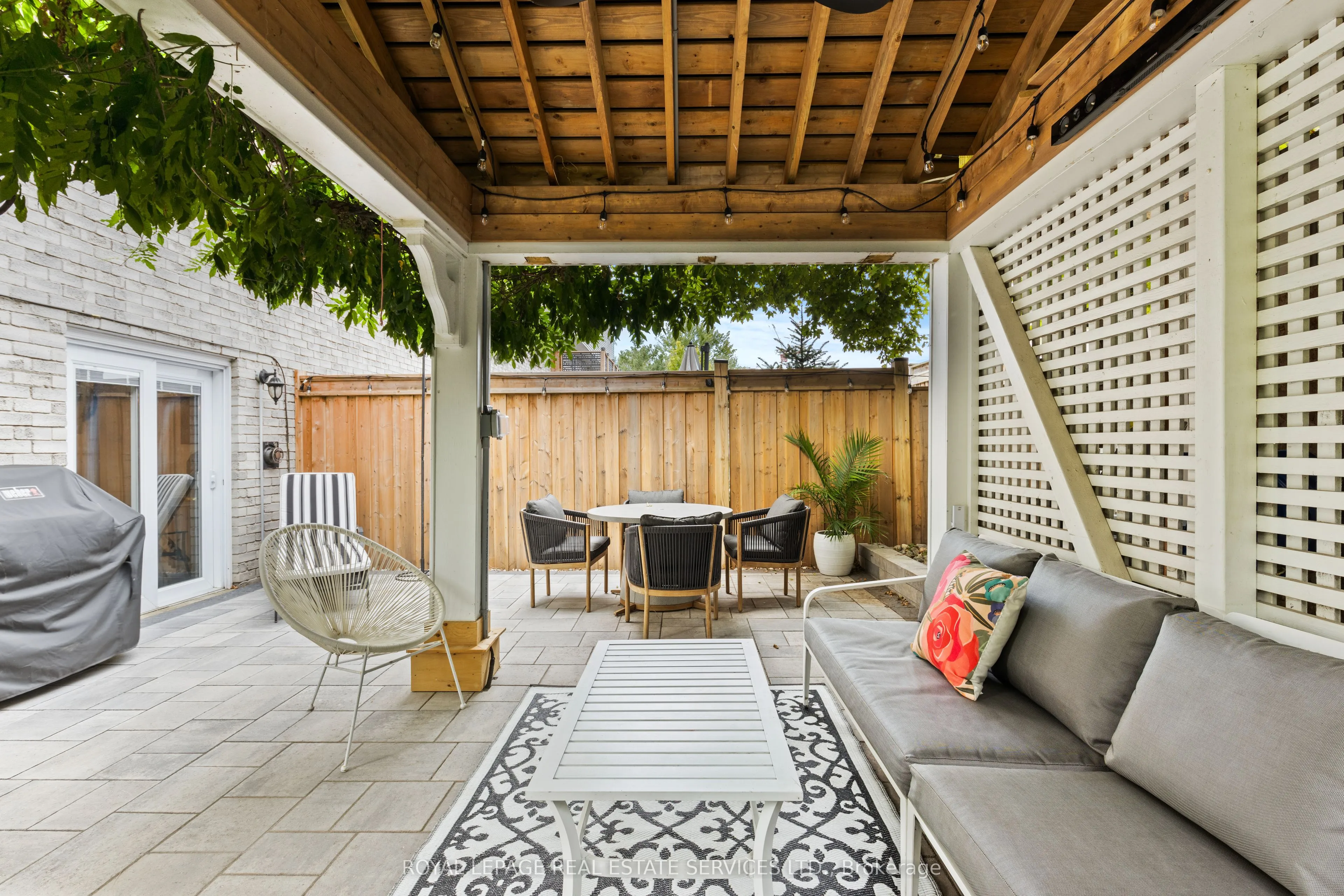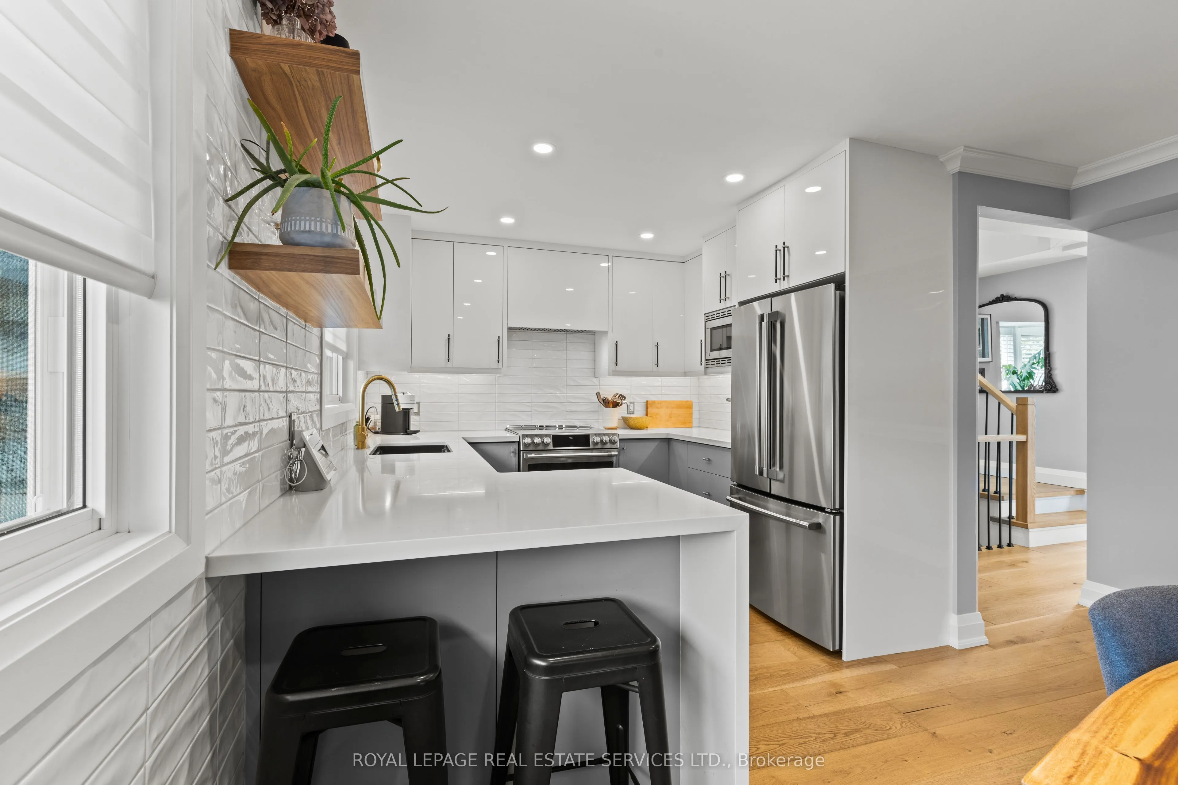 Beautiful Freehold End Unit Townhome in the Heart of Bronte. Welcome to 2303 Marine Drive, Unit5, a rare freehold end-unit townhome in the heart of Bronte Village. Just steps from the lake, marina, & the vibrant shops & restaurants of Bronte, this home offers a lifestyle that is both relaxing & connected. Unique from all the other units in the complex, this home has been extensively updated with stylish finishes & thoughtful design. A custom wood staircase, shiplap detailing, & a striking double-sided fireplace, accessible from both the living and dining rooms create warmth & character that truly set this property apart. A skylight floods the upper level with natural light, enhancing the bright, airy feel throughout. The updated kitchen (2023) features granite countertops & backsplash, while the primary suite is a true retreat with custom built-in double closets, additional storage, & a spa-inspired ensuite with heated floors. The family room is designed for entertaining with a custom bar, &the extended foyer offers an impressive welcome. Hardwood flooring, elegant window coverings, central vacuum, and an inground sprinkler system add both convenience & style. This home also offers two outdoor living spaces: a private back patio perfect for summer gatherings (2024), and a second patio above the garage with walkout access from the living room, the ideal spot for morning coffee, evening cocktails, or simply enjoying the breeze from the lake. Additional highlights include two fireplaces, quality appliances (2023), professional landscaping, an attached garage with inside entry, plus the peace of mind of a new furnace(2022), A/C (2022), tankless water heater (2022), windows (2022) and roof (2017). With just a $120/month maintenance fee, this property combines low-cost ownership with premium living. Dare to compare, this end-unit is truly one of a kind in Bronte.