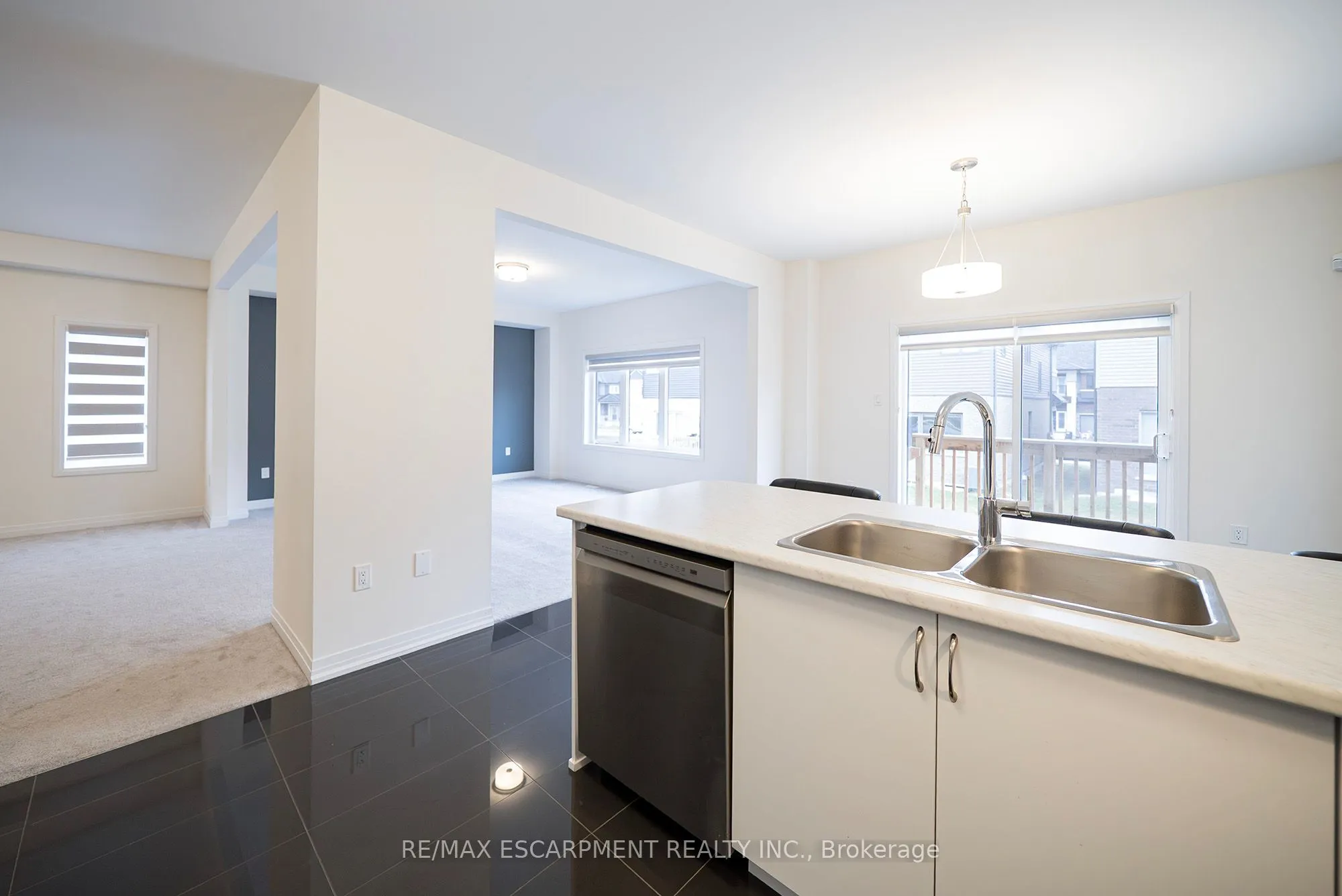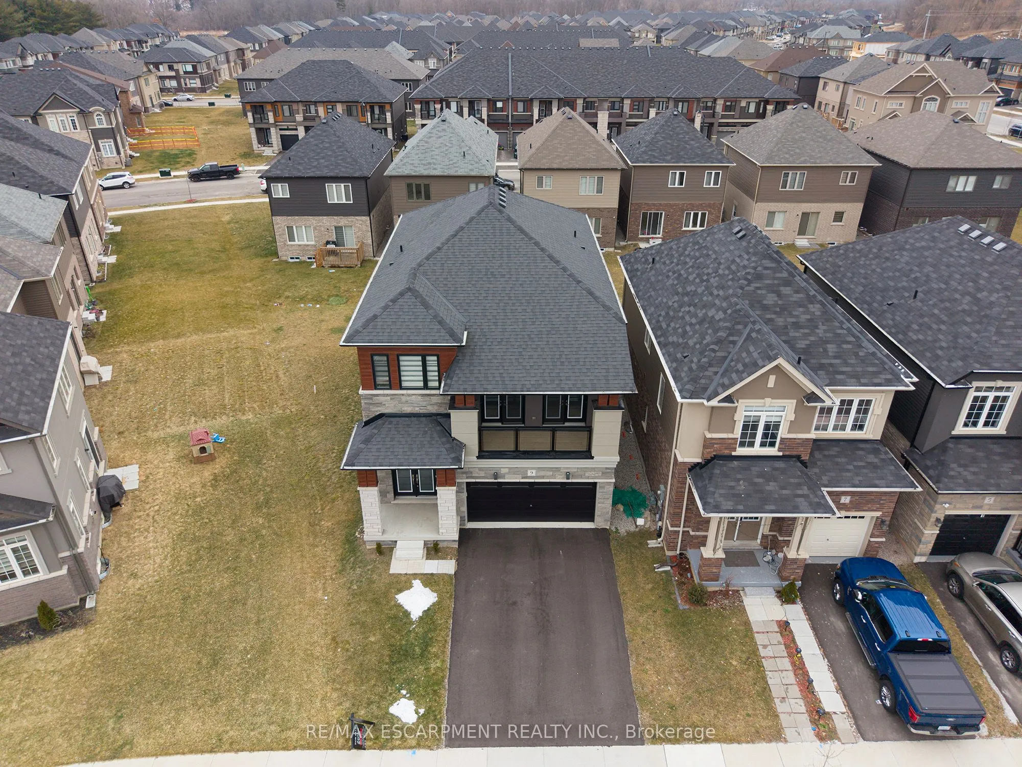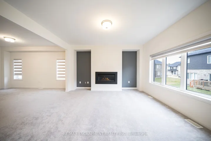 Welcome home to 9 Tarrison Street in Brantford, a stunning two-storey home located in Brantford’s Nature’s Grand community by LIV. The well-maintained exterior features an attached two-car garage and double-door entry. This spotless 2,519 sq ft home offers 3 bedrooms and 2.5 bathrooms. The tiled front foyer includes a large closet and a 2 piece powder room. The main floor features 9 foot ceilings and an open-concept layout defining the dining and living rooms, with the living room featuring a gas fireplace. This space connects seamlessly to the spacious kitchen and light-filled breakfast room, with a sliding door to the rear of the home. The bright kitchen features crisp white cabinetry and stainless steel appliances, including a built-in dishwasher. An oak staircase leads to a spacious upstairs family room with recessed lighting and two sets of double French doors opening to a balcony above the garage, overlooking the front of the home. A few steps up is the bedroom level, which offers 3 bedrooms, including a primary bedroom with a walk-in closet and a 4 piece ensuite featuring a tub and separate shower. This level also includes a 4 piece bathroom and a convenient laundry room. The unfinished basement offers high ceilings, large windows, and a 3 piece rough-in. The backyard features a deck off the rear of the home, providing easy indoor/outdoor living. Located in a growing, family-friendly neighbourhood minutes to the Grand River and Highway 403.