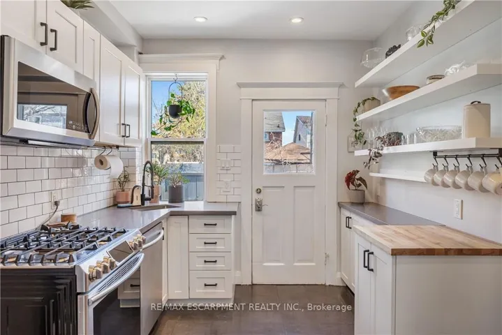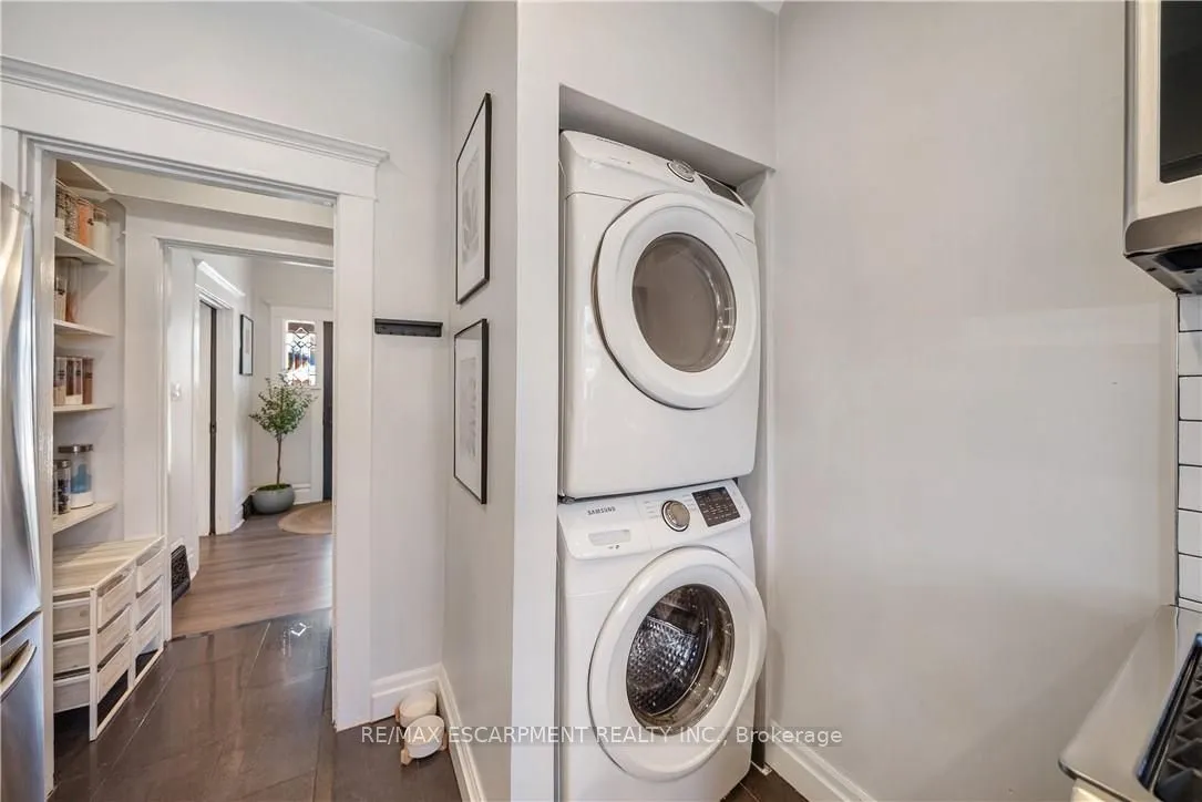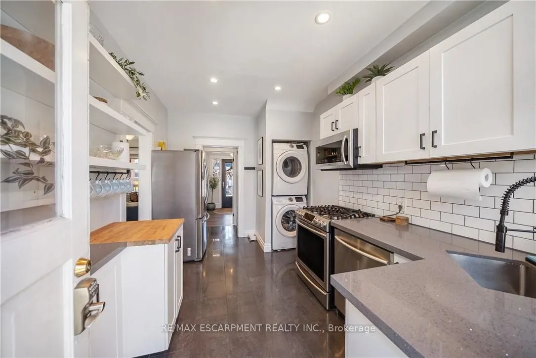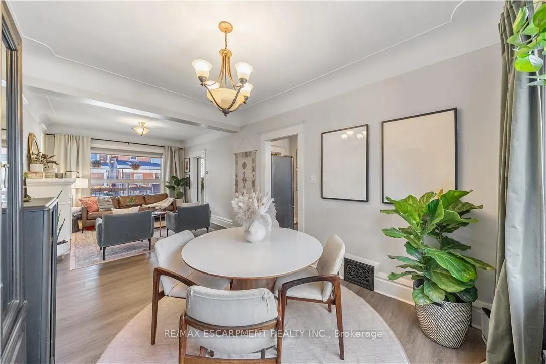 Over a century old and better than ever. This solid brick Hamilton home is the kind of property that earns a second look, and a third. Original stained glass windows frame a beautiful living room with soaring ceilings and ornate white millwork. High ceilings throughout. Thoughtfully styled and genuinely well cared for, every room tells you this home has been loved! The layout offers serious flexibility Three bedrooms on the second floor, a massive third-floor loft that functions as an entire additional level. The loft could be used as a fourth bedroom, home office, or secondary living space. The home also has a fully self-contained basement suite with its own private entrance, full kitchen, bedroom, and bathroom. The basement has just been fully renovated (2026) and a brand new furnace installed (2026) – move in and enjoy it from day one. Two full bathrooms across three levels means everyone has what they need. Out back, a private patio surrounded by mature landscaping, lush garden beds, and a fully fenced yard. The fence was replaced in 2023, a gated driveway added in 2021, and a detached shed and utility shed are already in place. In a neighbourhood where private parking is almost unheard of, the wide concrete driveway makes this property stand out before you even step inside.