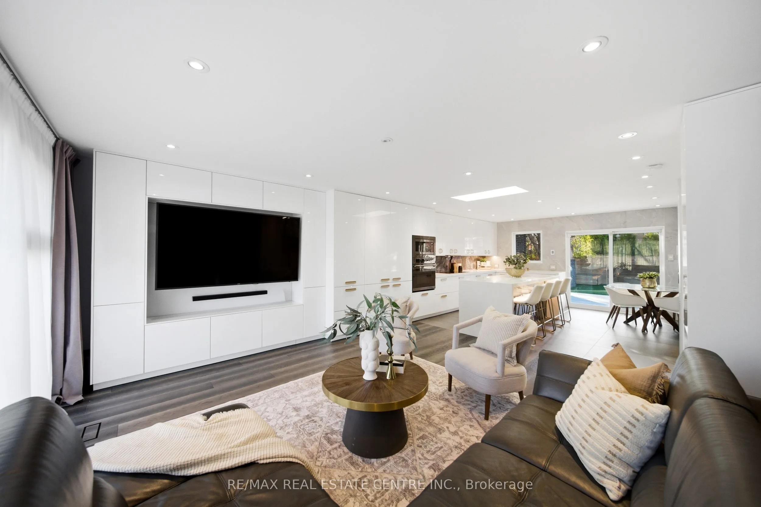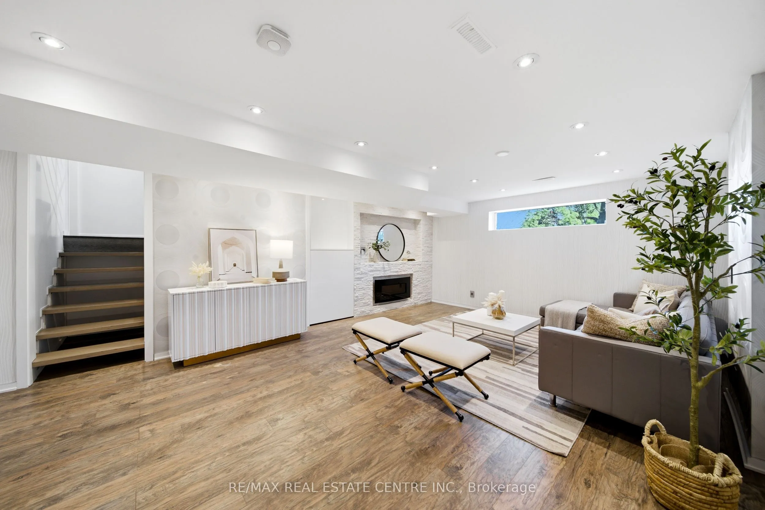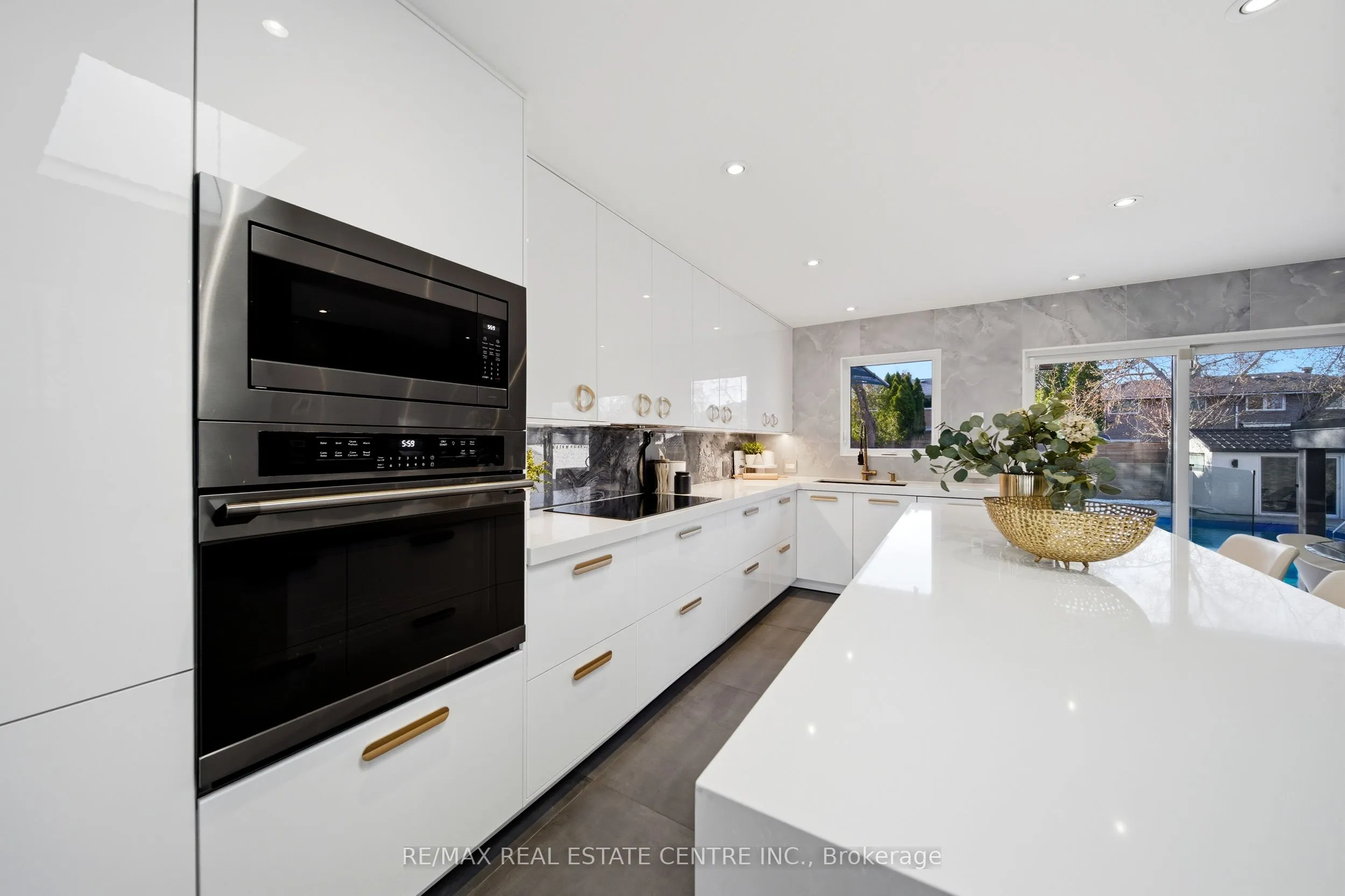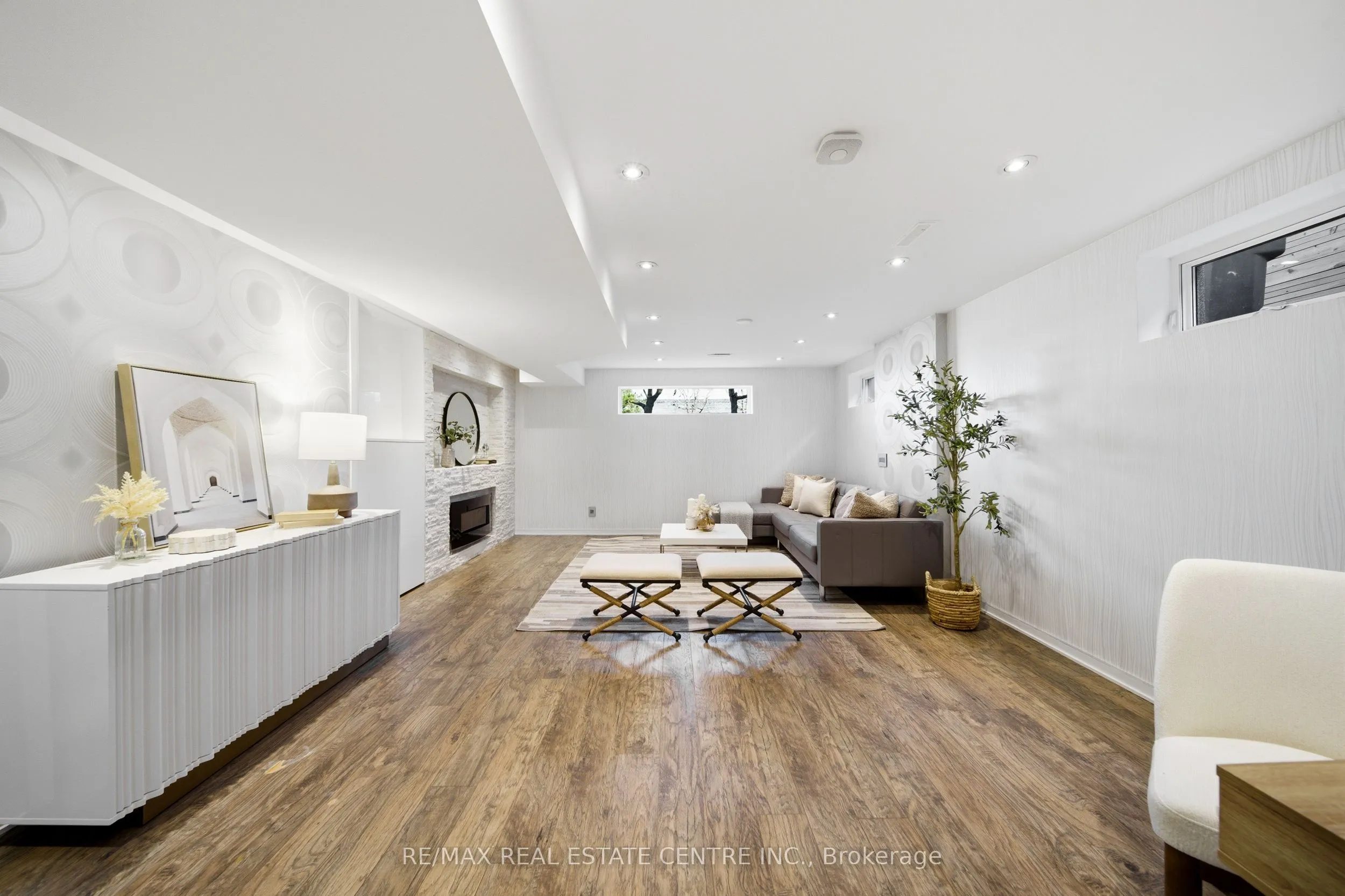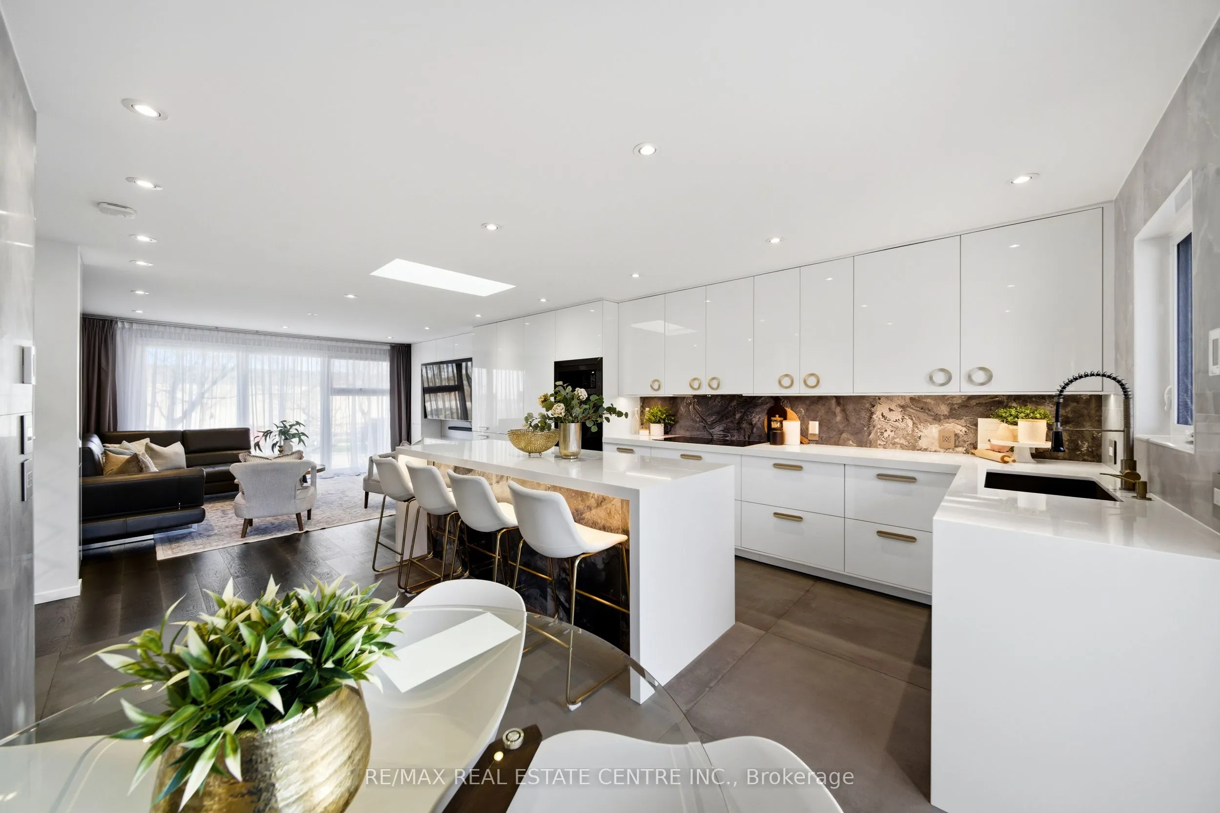 Spectacularly reimagined in the heart of Clarkson, this extensively renovated residence offers a rare blend of luxury, comfort, and thoughtful design with premium upgrades throughout. A spacious foyer welcomes you to a bright, open-concept layout featuring Italian tile and engineered hardwood flooring, potlights, and a skylight that fills the home with natural light. Heated floors in the foyer, kitchen, powder room, and upper bathroom add everyday comfort. The living room makes a bold statement with designer Versace wallpaper, custom built-ins, and a large picture window, flowing seamlessly into the show-stopping chef’s kitchen. Designed as the heart of the home, it features built-in appliances, an induction cooktop, double ovens, panelled fridge, waterfall island, stunning backsplash with water valve, organic waste disposal, water filtration system, and a sun-filled dinette. A contemporary staircase leads to four bedrooms with custom closets and beautifully updated bathrooms. The main bath is exquisitely remodelled with double vanities, a soaker tub, and sleek glass shower. The bright, finished lower level offers a cozy family room with gas fireplace and stone surround, a dedicated office, additional bathroom, and a beautifully designed laundry room. Outdoors, your WOWZA backyard awaits. Enjoy a professionally landscaped backyard with interlock stonework, patio, and deck with privacy awning. The fully renovated heated pool, hot tub, and covered ceiling with potlights create a true resort-style escape right at home. Additional highlights include a natural vein-cut travertine façade, metal roof with warranty, updated windows, sprinkler system, EV charger rough-in, and no rental equipment-offering peace of mind and turnkey convenience. Ideally located within walking distance to shops and the community centre, this home delivers upscale living in a sought-after neighbourhood.