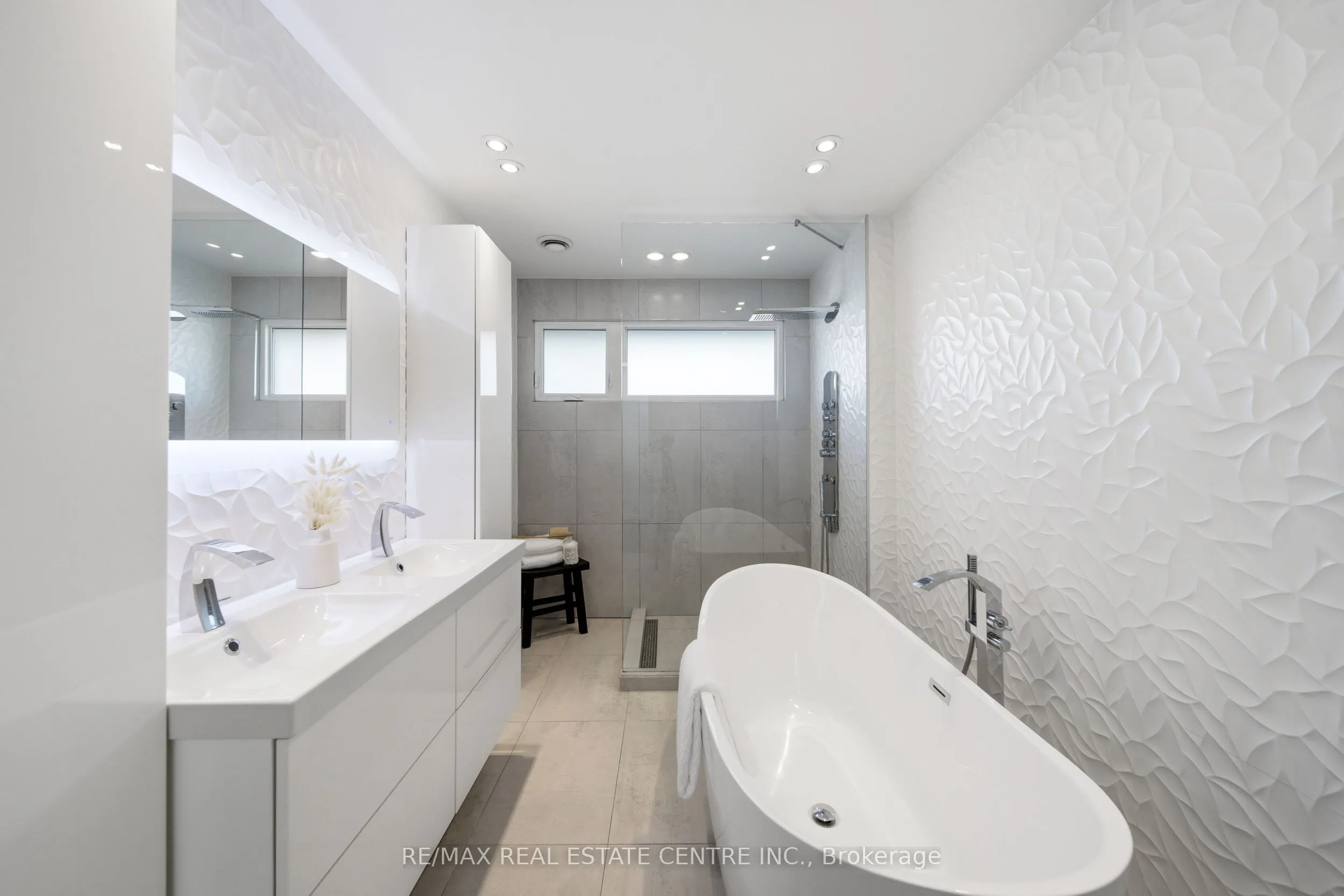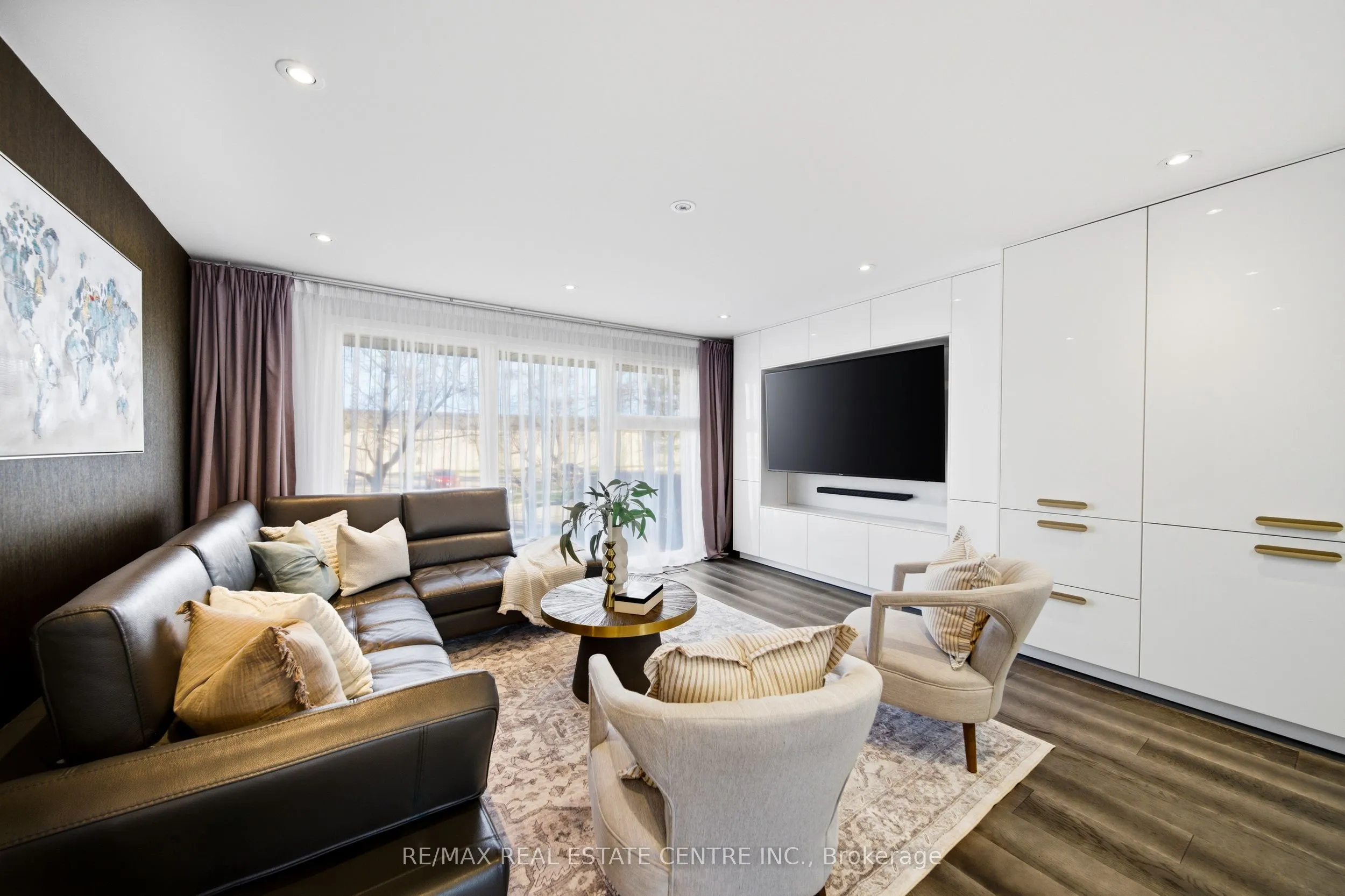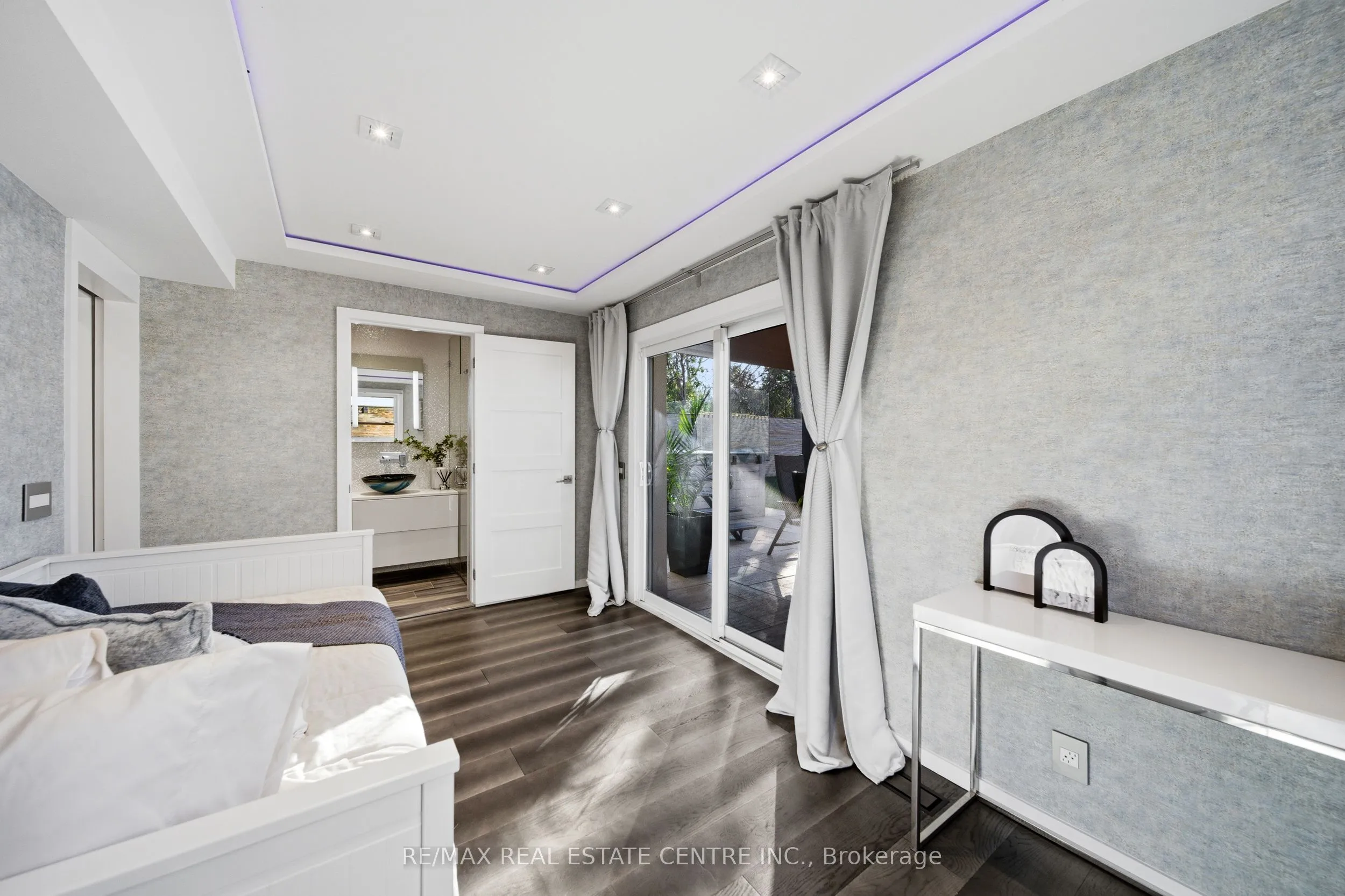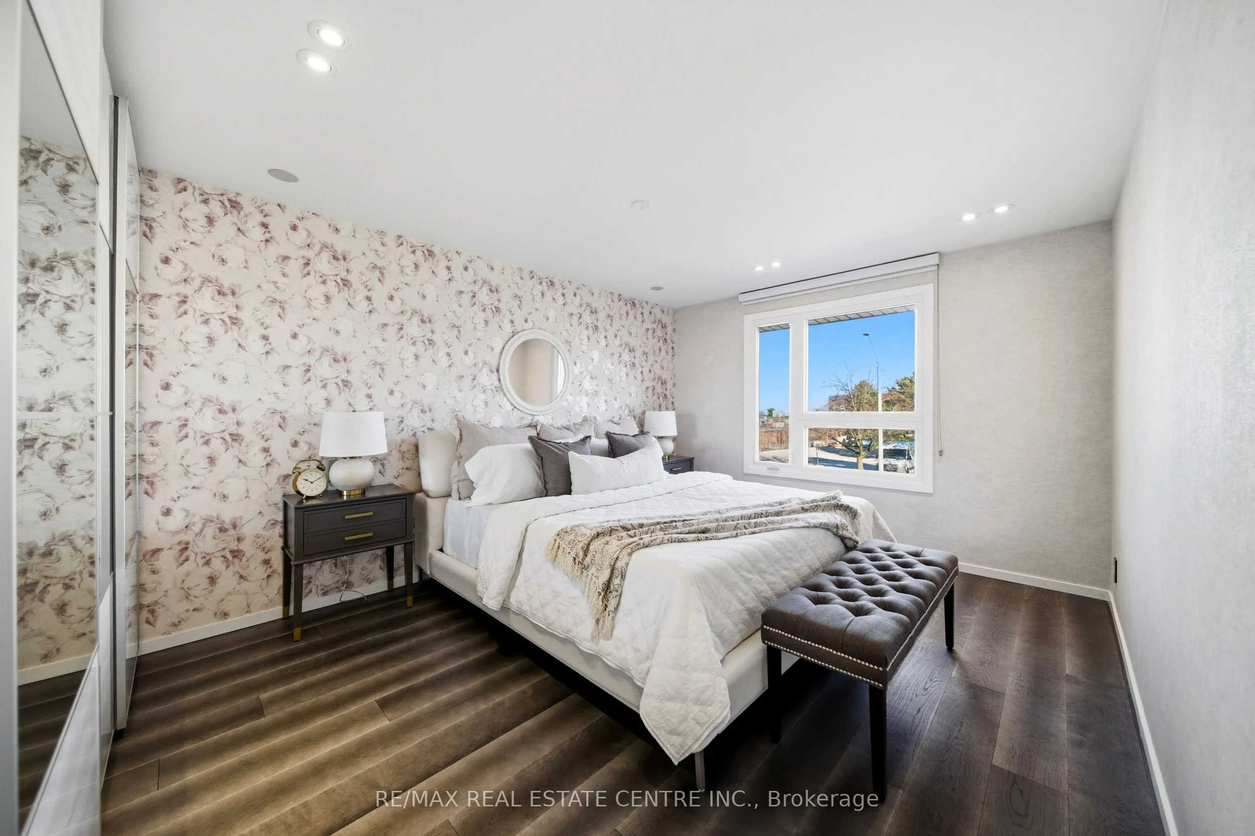 Spectacularly reimagined in the heart of Clarkson, this extensively renovated residence offers a rare blend of luxury, comfort, and thoughtful design with premium upgrades throughout. A spacious foyer welcomes you to a bright, open-concept layout featuring Italian tile and engineered hardwood flooring, potlights, and a skylight that fills the home with natural light. Heated floors in the foyer, kitchen, powder room, and upper bathroom add everyday comfort. The living room makes a bold statement with designer Versace wallpaper, custom built-ins, and a large picture window, flowing seamlessly into the show-stopping chef’s kitchen. Designed as the heart of the home, it features built-in appliances, an induction cooktop, double ovens, panelled fridge, waterfall island, stunning backsplash with water valve, organic waste disposal, water filtration system, and a sun-filled dinette. A contemporary staircase leads to four bedrooms with custom closets and beautifully updated bathrooms. The main bath is exquisitely remodelled with double vanities, a soaker tub, and sleek glass shower. The bright, finished lower level offers a cozy family room with gas fireplace and stone surround, a dedicated office, additional bathroom, and a beautifully designed laundry room. Outdoors, your WOWZA backyard awaits. Enjoy a professionally landscaped backyard with interlock stonework, patio, and deck with privacy awning. The fully renovated heated pool, hot tub, and covered ceiling with potlights create a true resort-style escape right at home. Additional highlights include a natural vein-cut travertine façade, metal roof with warranty, updated windows, sprinkler system, EV charger rough-in, and no rental equipment-offering peace of mind and turnkey convenience. Ideally located within walking distance to shops and the community centre, this home delivers upscale living in a sought-after neighbourhood.