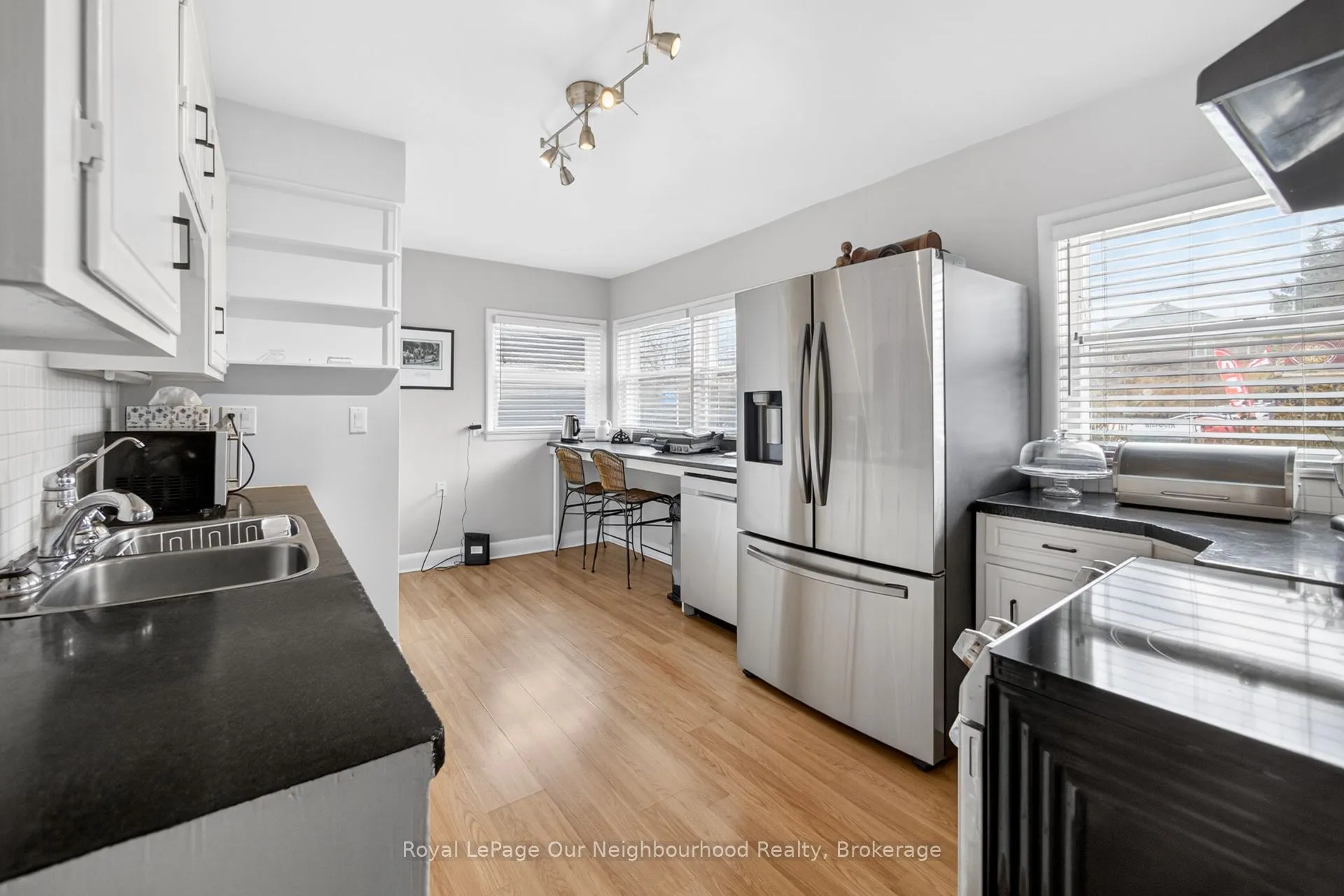 Welcome to Campbellville and this quaint and charming 2-bedroom bungalow, perfect for the down-sizer or first-time buyer. Small-town living yet so close to city amenities, this home is minutes to the 401 and a short drive to the heart of Milton. A stamped concrete walkway welcomes you to the front door. The living and dining areas feature unique crown moulding and abundant natural light. The kitchen is bright and spacious with ample counter space and a breakfast bar/prep area, while a pocket door separates it from the side entrance leading to the basement.Two well-sized bedrooms are located on the main floor, one with a walk-out to the backyard deck. The basement offers a cozy rec room with beautiful flooring and pot lights, an office area with a built-in workspace, an additional bedroom with above-grade windows and double closet, and a spacious laundry room with a 3-piece bath. A kitchenette was added during the 2022 basement renovation, along with numerous upgrades throughout. A second laundry was also added upstairs, and a brand-new water softener was installed in 2026.The fully fenced backyard is gorgeous, featuring a 2020 deck, 2019 hot tub, tasteful landscaping, and a stamped concrete walkway around the garage. The garage is truly unique, with a long and wide parking area ideal for a workshop. Beyond it, separated by sliding barn doors, is an impressive “man-cave” complete with a wood-burning stove, bar, and coffered wood ceiling, with French doors leading to the yard.This home has been very well maintained with many improvements over the years. Situated on a prime lot with significant development potential, the neighboring property is also available for sale, presenting a rare opportunity for future expansion or land assembly. Well, water, and septic studies have been completed, and when combined with the adjacent property, the site offers strong potential for a multi-use commercial/residential development or live-work townhomes.