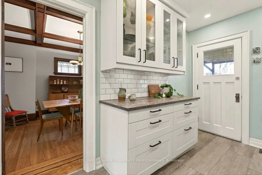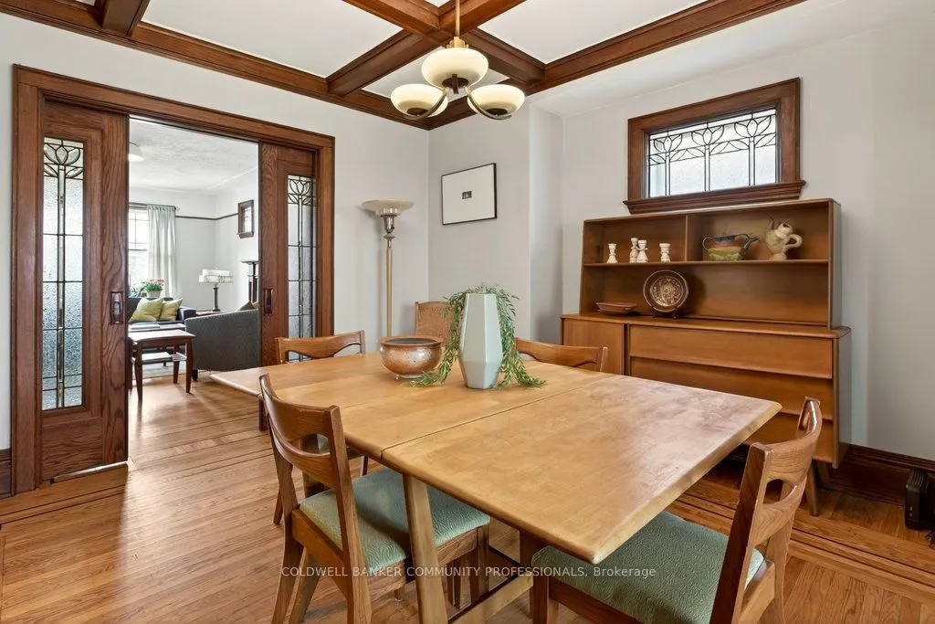 Welcome to this beautifully cared-for 1929 home-warm, inviting, and rich with original character. Start your day on the covered front porch and step through striking leaded glass door into an interior where craftsmanship shines: preserved hardwood floors with intricate inlay, a coffered dining room ceiling, and lovingly maintained period details including the original fireplace mantel, leaded glass windows, and classic pocket doors. A bright, renovated kitchen offers a blend of style and function. Upstairs, you’ll find three generously sized bedrooms-each with its own walk-in closet-and a beautifully updated 4-piece bath. The fully finished basement provides excellent flexibility for in-law or multi-generational living complete with a separate entrance, bedroom, sink area, and updated 3-piece bath. Outside, the covered rear deck (updated 2019) is perfect fo rlounging and BBQs and overlooks a fully fenced backyard. The garage, with electricity, sits beyond parking for up to three vehicles. Ideally located just steps from Gage Park and the vibrant shops and cafés of Ottawa Street North, with Cunningham School at the end of the block, this is a truly beloved home in the sought-after Delta neighbourhood.RSA.