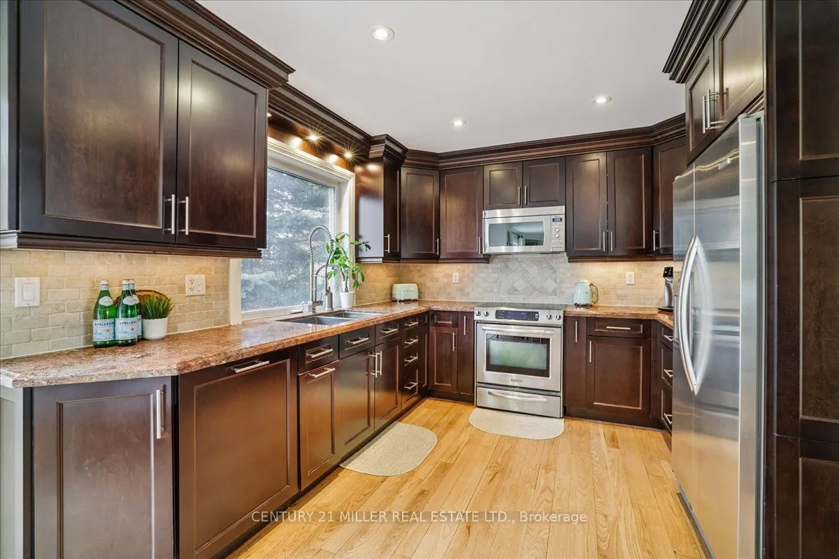 Welcome to this beautifully maintained executive home backing onto a premium ravine lot, offering a rare blend of privacy and scenic views. The professionally landscaped backyard is ideal for relaxing or entertaining, complete with a maintenance-free Trex deck and a heated on-ground pool set against a backdrop of mature greenery. Significant landscaping updates were completed last summer, including fresh sod. Inside, the sun-filled open-concept layout features hardwood flooring throughout, with the main level hardwood recently refinished. The formal living room showcases floor-to-ceiling windows and connects seamlessly to the dining area. The warm and inviting family room offers a gas fireplace and pot lights and opens to a custom maple kitchen with granite countertops, stainless steel appliances, backsplash, and pot lights. The bright breakfast area includes a walk-out to the deck and backyard oasis. The main floor also offers a convenient laundry room and powder room. Upstairs, the spacious primary suite features custom built-in closets and a fully updated ensuite with glass shower, soaker tub, and heated floors. Three additional bedrooms, each with custom built-ins, and an upgraded 4-piece main bath with glass shower and heated floors complete the upper level. Additional highlights include thermal windows, an updated electrical panel with surge protection, and a double car garage with driveway parking. Ideally situated close to top-rated schools, parks, trails, shopping, transit, and major highways.