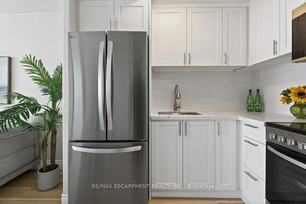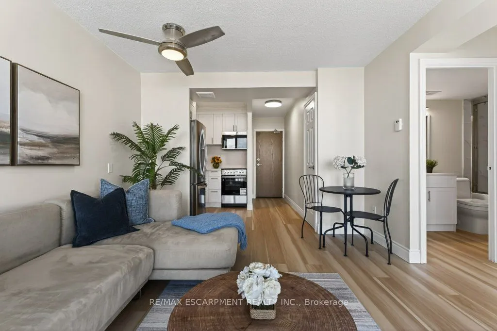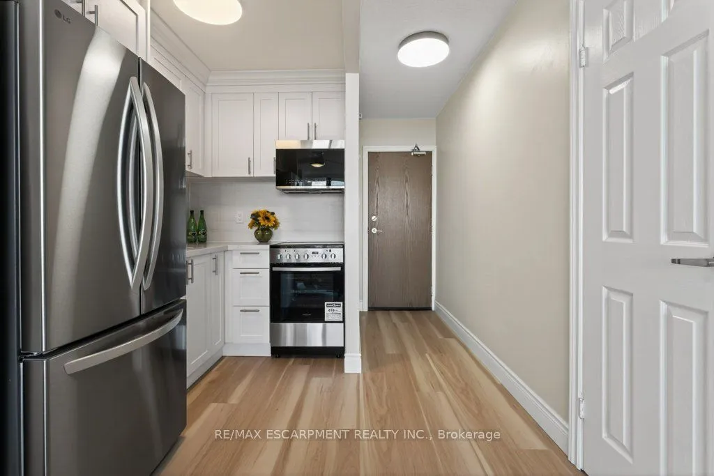 Welcome to this beautifully renovated one bedroom, one bathroom condominium unit at The Olympia, a modern urban living space in the heart of the city. This contemporary unit offers a perfect blend of comfort, style and functionality, making it an ideal choice for young professionals, couples, or anyone looking to experience a convenient downtown lifestyle. This unit has undergone extensive renovations offering a fresh and clean environment. Updated flooring, kitchen, appliances, washroom, lighting and radiators have all been thoughtfully chosen to create a warm, inviting space. Large windows flood the unit with natural light and provide a fantastic view of the city and lake beyond. The Olympia has also undergone a fresh renovation elevating the lobby and common areas. Residents enjoy access to a range of amenities designed to enhance their living experience, including secure entry, on-site laundry facilities, indoor swimming pool, gym, sauna, steam room, rooftop patio, squash courts, party room and billiards room. Situated in the vibrant Corktown neighbourhood, this condo offers a perfect balance of tranquility and convenience. The neighbourhood offers easy access to Go Transit, popular restaurants and pubs at Young and Augusta, as well as access to shopping, St. Joe’s hospital, medical offices and hiking and biking along the Escarpment. Whether you’re a first-time buyer or looking to downsize, this unit offers a fantastic combination of style, convenience and value.