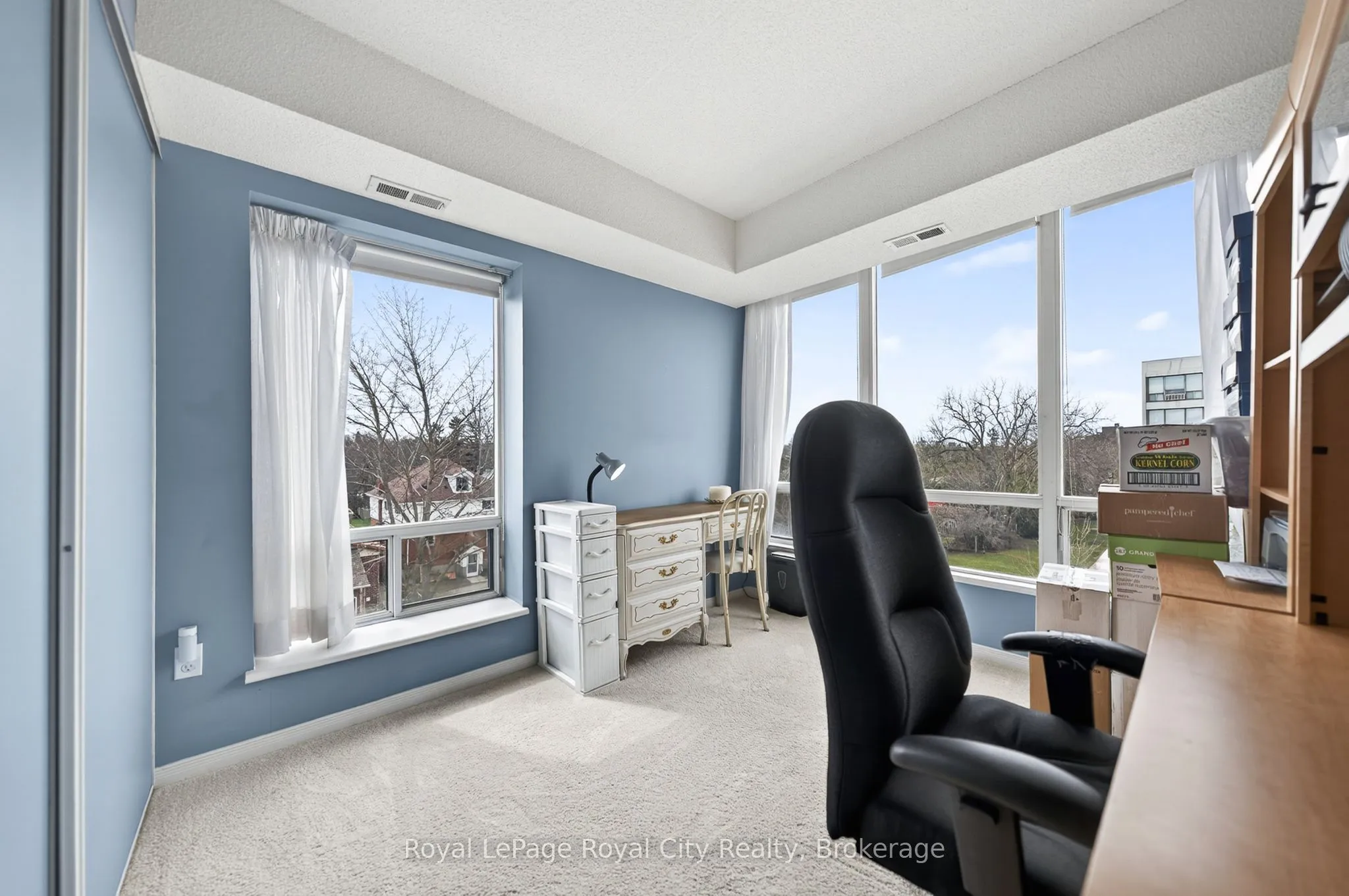 This is one of those condos where the space and natural light just make you feel good the moment you walk in. As a corner unit, it is one of the largest in this quiet building, offering over 1,300 sq/ft of living space that feels open, airy, and incredibly bright. It is rare to find this much square footage in a condo setting, making it a perfect opportunity for anyone looking for the comfort of a house with the low-maintenance lifestyle of a condo. The living room layout is a real standout here. It is flooded with sun thanks to the high 8.5-foot ceilings and large windows that wrap around the unit, all featuring premium Hunter Douglas blinds. The kitchen is clean and functional, offering a practical setup with a classic tiled backsplash and everything you need for family gatherings or those nights filled with friends and laughs. The flow is perfect for day-to-day life, featuring a separate dining room for family meals and a private balcony that offers a nice, quiet spot to unwind at the end of a long day. You will find 3 generous bedrooms along with 2 full bathrooms. This includes a large main bedroom that serves as a true retreat, featuring its own private 3-piece ensuite bathroom. The home has been meticulously cared for and features quality vinyl flooring and fresh paint throughout, meaning you can move in and start enjoying the space immediately without the stress of a renovation. For extra convenience, the water is already included in your monthly fees, which makes budgeting simple and easy. Includes a large locker for storage, giving you extra space. Located in Guelph’s West End, you are just a short walk to local shopping, grocery stores, and essential bus routes. You are also only a quick drive to the Hanlon Expressway, the University of Guelph, and everything else you need in the city. If you have been looking for a move-in-ready home that offers more space than your typical condo in a mature and serene setting, this is definitely one to see for yourself.