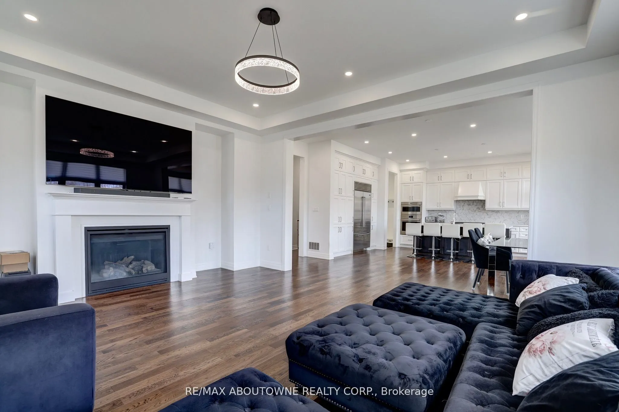 Offering over 3,700 sq. ft. of beautifully designed living space, this exceptional Mattamy-built residence features 10′ ceilings on the main floor and 9′ ceilings on the second level and the walk-out basement, creating an open, airy feel throughout. Designed with modern family living in mind, the open-concept layout showcases a spectacular chef’s kitchen complete with high-end appliances, including a Sub-Zero fridge and Wolf range. The oversized island serves as the perfect gathering place, while expansive windows flood the space with natural light and seamlessly connect the kitchen to the inviting family room with a elegant gas fireplace. A separate dining room with a convenient servery is ideal for formal entertaining, while a private main-floor office offers the perfect work-from-home setup. The thoughtfully designed mudroom with custom built-ins adds everyday functionality. Upstairs, the luxurious primary suite features elegant tray ceilings, dual custom walk-in closets, and a spa inspired ensuite with a glass-enclosed shower and freestanding tub overlooking tranquil green space. Three additional generously sized bedrooms, each with ensuite access and most with custom closets, provide comfort and privacy for the whole family. Plus and extra large media room that could be turned into a 5th bedroom. The second floor laundry room is bright and spacious. The walk-out basement with oversized windows offers endless potential for additional living space. Set on an impressive fully fenced 60 x 152 ft lot, this home enjoys true privacy and rare pond and ravine views, with direct access to trails and nature. Relax or entertain on the main-level deck while taking in the serene surroundings