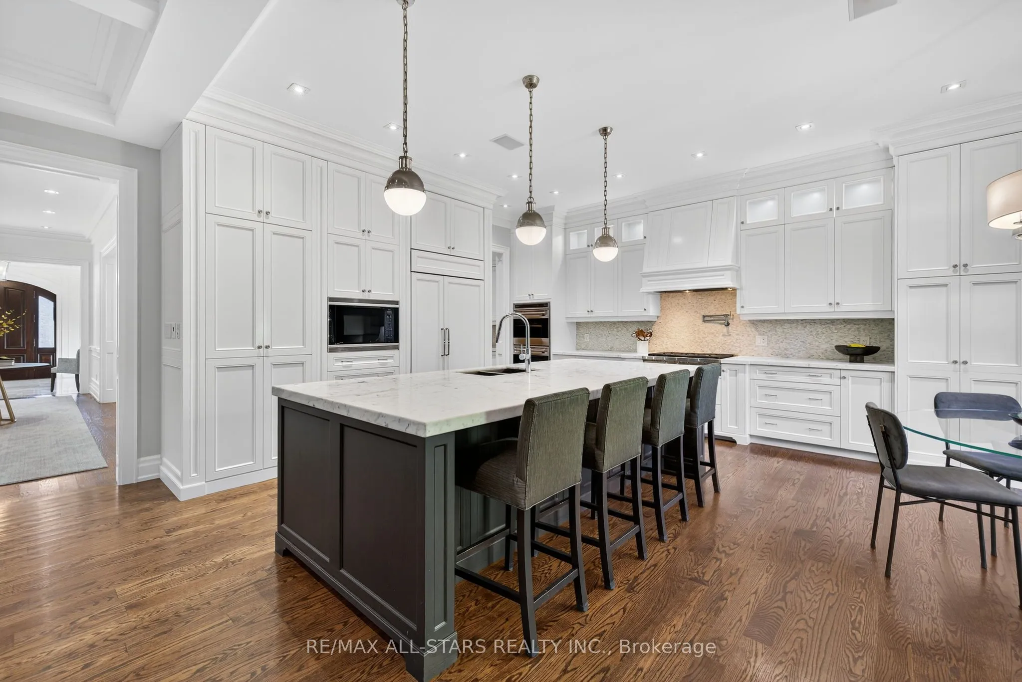 *See video tour! Welcome to this one-of-a-kind, custom-built luxury residence on a prestigious street in the Aurora Village. Nestled on a 54 x 199.5 ft. professionally landscaped lot, this immaculate home showcases over 6,000 sq. ft. of finished living space, with no detail overlooked and pride of ownership throughout.The elegant main floor features 10-ft ceilings, custom wainscoting and moldings, solid wood doors and built-ins. Enjoy formal living and dining rooms, a private office, large family room and chefs kitchen complete with Wolf & Sub Zero appliances, dumb waiter to the garage, marble counters, and a walk-in pantry. From the main floor walk out to a screened-in porch overlooking the backyard oasis with a heated in-ground pool, hot tub, bbq table with wood oven and grill, cabana with seating area, servery and a 2-pc bath. The home’s second floor boasts tray ceilings in all bedrooms and a gorgeous primary suite with a gas fireplace, terrace walk-out, and spa-like 6-pc ensuite. The lower level offers hydronic heated floors, a prep kitchen, a spacious rec room, and a walk-out to the backyard.Additional highlights include: four-car tandem heated garage, snowmelt driveway, electric heated floors in bathrooms and foyer, four fireplaces, custom built-ins, 230+ potlights, 2 x furnace, 2 x AC, 2 x HRV and Generac generator. No disappointments here! See attached feature sheet for full list of impressive features.