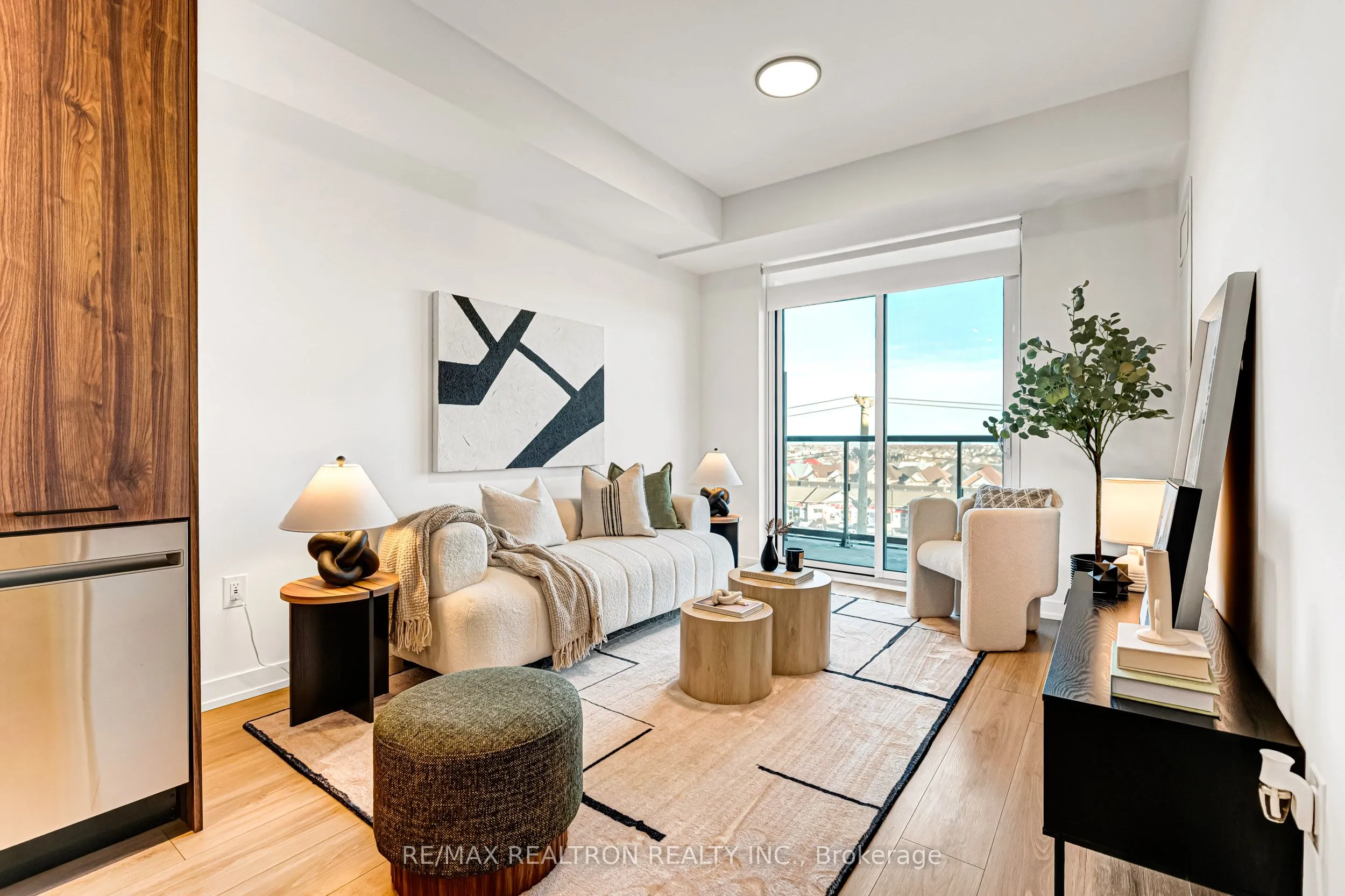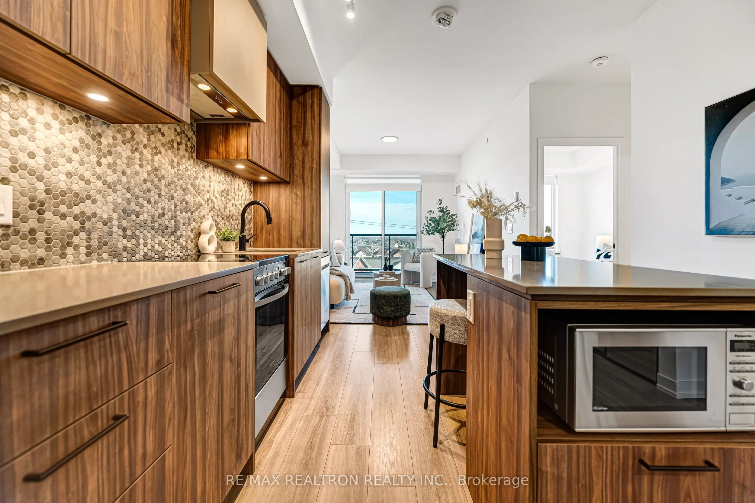 Welcome to this beautiful 1-bedroom plus den suite with unobstructed views in Daniels MPV, ideally located in the heart of Brampton’s vibrant Mount Pleasant Village community. Offering622 sq. ft. including the balcony, this unit delivers the perfect blend of modern style and everyday functionality. Soaring ceilings and floor-to-ceiling windows fill the open-concept layout with natural light while showcasing sweeping views of the surrounding neighbourhood and open sky. The chef-inspired kitchen is a true showpiece, featuring rich walnut cabinetry, a stylish backsplash, quartz countertops, stainless steel appliances, and a functional centre island with breakfast bar, perfect for both everyday living and entertaining. The living and dining area flows seamlessly to the balcony, an ideal spot to enjoy your morning coffee or evening sunset. The spacious primary bedroom offers a peaceful retreat with generous natural light, while the versatile den provides flexibility as a home office or potential second bedroom. The spa-inspired 4-piece bathroom features a soaker tub, classic white subway tile, and contemporary fixtures. Completing the suite is a convenient in-suite stacked washer and dryer. Includes 1 underground parking space and 1 locker. Prime location just steps to Mount Pleasant GO Station and with easy access to Highways 410, 401, and 407. Close to transit, parks, plazas, schools, and everyday amenities. Whether you’re a first-time buyer, downsizer, or savvy investor, this is an exceptional opportunity to own in one of Brampton’s most dynamic communities.