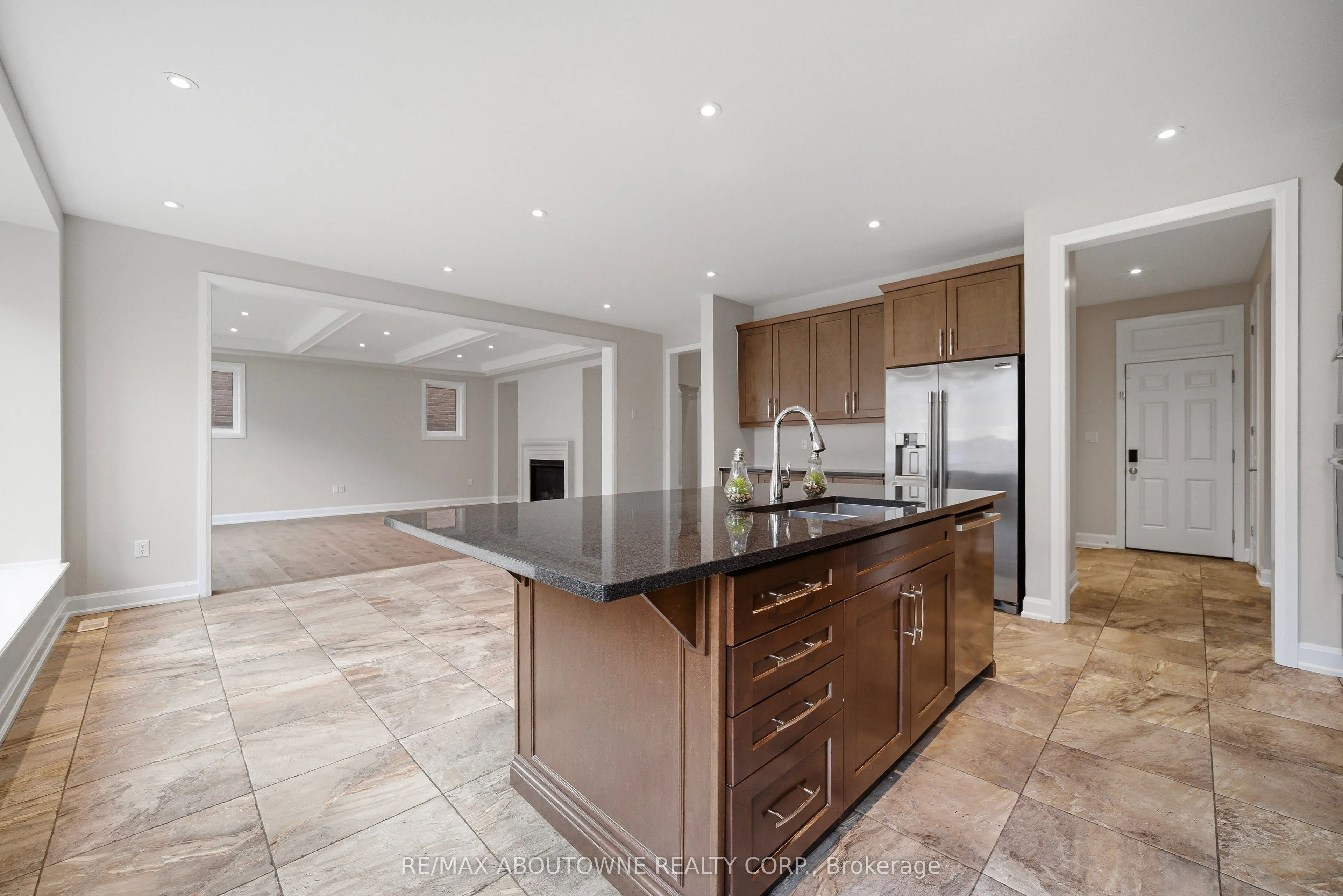 Over $200,000 in upgrades elevate this exceptional 3,700+ sq ft detached home “Snapdragon Model” , offering 5 bedrooms and 4.5 washrooms. Situated on a premium 45 ft lot on a quiet, family-friendly street in the highly sought-after Preserve/Glenorchy community, this home is designed for refined living. Featuring 10 ft ceilings on the main floor and 9 ft ceilings on the second level, it offers a bright, spacious atmosphere throughout. The elegant main floor showcases a formal dining room and a stunning great room with a waffle ceiling, perfect for both entertaining and everyday living. The chef-inspired kitchen is equipped with a large centre island, granite countertops, stainless steel appliances, and upgraded cabinetry, offering both style and functionality. A main floor bedroom with a 3-piece ensuite provides flexibility for an in-law suite or private home office. Upstairs, you’ll find a well-designed layout with 4 additional bedrooms, each with access to full bathrooms, along with a convenient second-floor laundry room. The spacious family room opens to a large balcony and can easily serve as a media room, office, kids’ lounge, or study area. The primary suite is a true retreat, featuring two walk-in closets and ample space to unwind. Additional highlights include coffered ceilings, extensive pot lighting throughout, and a desirable north-facing main door exposure. Ideally located close to Oakville Trafalgar Memorial Hospital, top-rated schools, parks, shopping, Walmart, Costco, and with easy access to highways 407, 401, 403, and QEW. A perfect blend of luxury, space, and location. **Some photos are virtually staged**