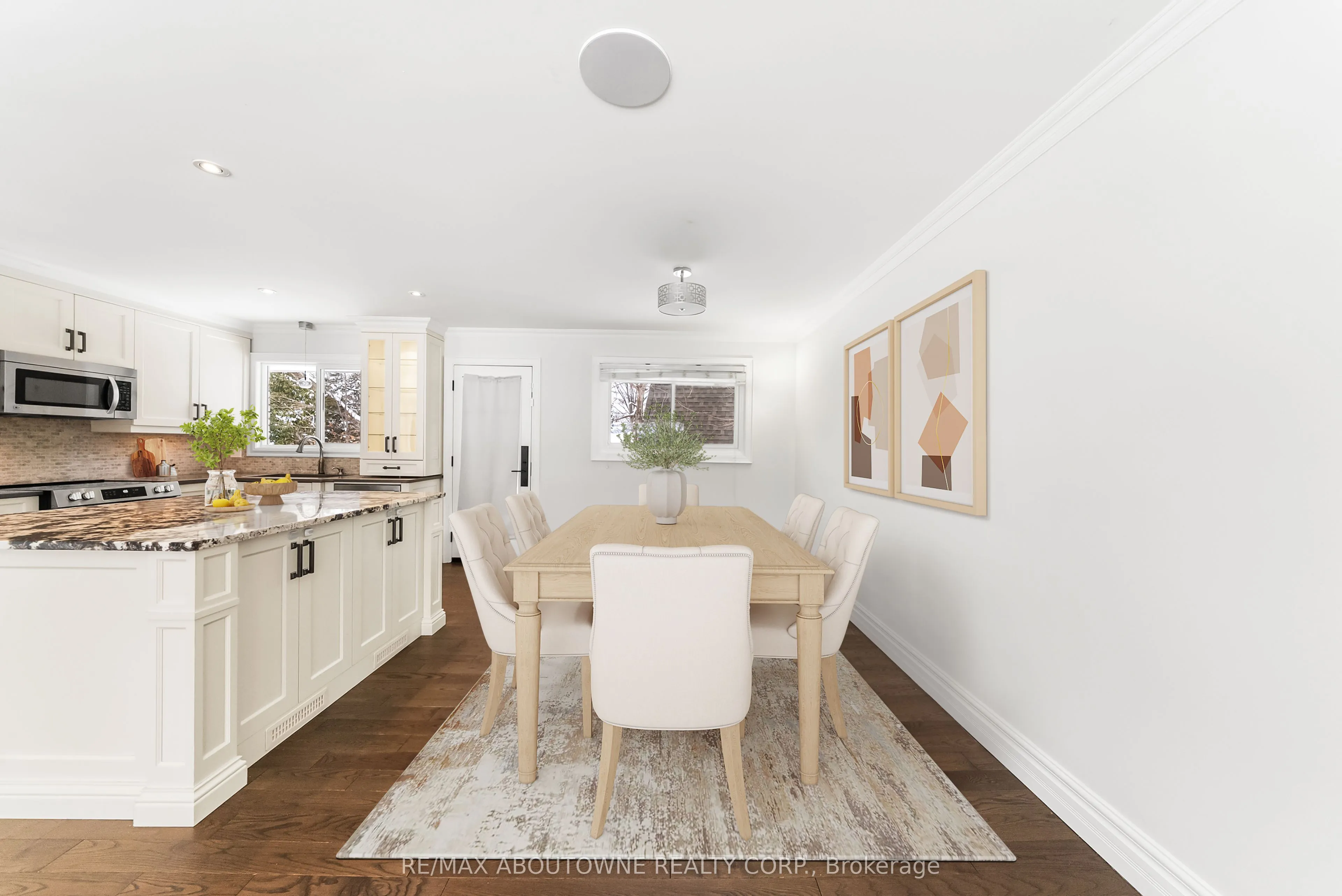 Located on a quiet, tree-lined crescent in highly sought-after South East Oakville, this beautifully renovated 3+1 bedroom raised bungalow offers bright, open-concept living . The main floor features a spacious living and dining area, a gourmet kitchen with stainless steel appliances and a large centre island, hardwood floors, and oversized windows. Walk out to a private, fully fenced backyard with a deck and in ground pool. The main level offers three well-appointed bedrooms and a stylishly updated full bathroom. The finished lower level includes a large family/rec room with fireplace, an additional bedroom or home office, a renovated full bathroom, inside access from the garage, plus laundry and ample storage. Located in an excellent school catchment, with Maple Grove, E.J. James, and St. Vincent elementary schools and Oakville Trafalgar High School all nearby and within walking distance, plus close to parks, shopping, and transit. Some photos are virtually staged.