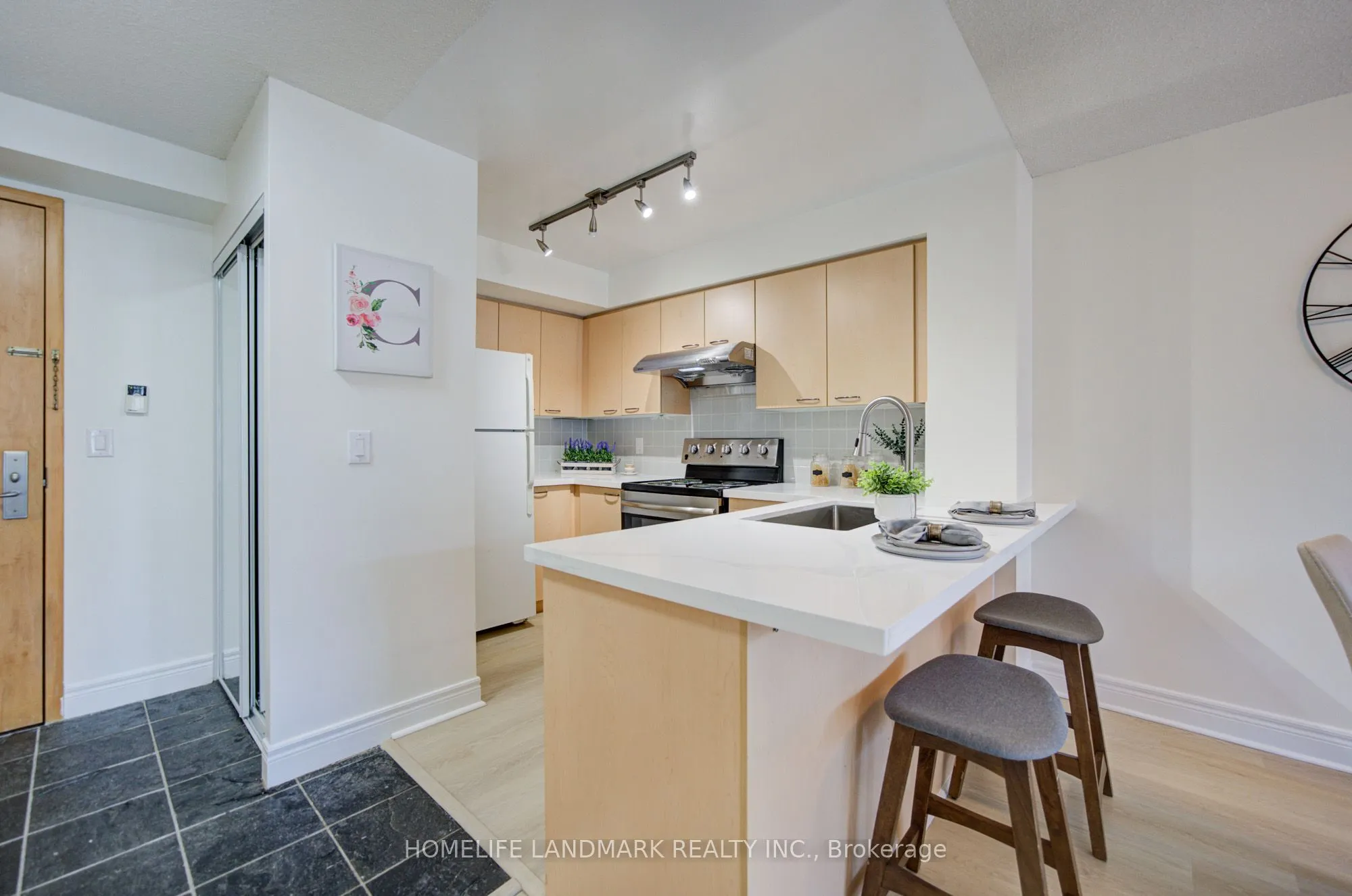 Bright and spacious 1-bedroom suite (605 sq.ft.) at Thornhill Towers in the highly desirable Commerce Valley community. One of the largest 1-bedroom layouts with unobstructed north views and a private balcony. Fully upgraded with brand new laminate flooring, fresh paint, and modern light fixtures. Open-concept kitchen with breakfast bar, brand new stainless steel stove & hood fan, newer built-in dishwasher & fridge (approx. 2 yrs), and new granite countertop & sink. Renovated bathroom with brand new vanity & cabinetry. Unbeatable location just steps to shopping, supermarkets, restaurants, cafes, and public transit including the Viva Rapidway, with easy access to Highways 7, 404, and 407-making commuting effortless.A fantastic opportunity to own a stylish, upgraded home in a highly convenient and vibrant community with endless dining, shopping, and everyday amenities at your doorstep. ***Located in a highly desirable school district with access to St. Robert CHS (IB program) and St. Theresa of Lisieux CHS (Gifted/AP program)***