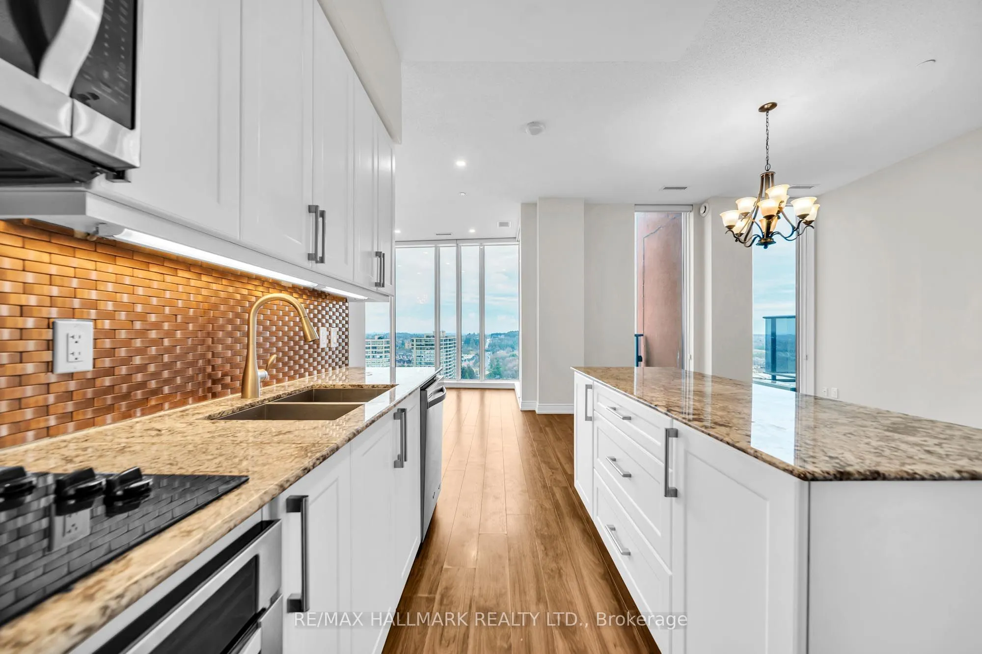Welcome to PH06 at 9600 Yonge Street, a truly rare offering that elevates luxury living to the pinnacle of Richmond Hill. This exquisite 1,295 sq. ft. penthouse showcases a bright, open-concept design with 10′ ceilings and floor-to-ceiling windows that capture breathtaking panoramic east and northeast views. The sophisticated living and dining areas seamlessly connect to a chef-inspired kitchen featuring granite countertops, stainless steel appliances, and a stylish breakfast bar-perfect for both everyday living and elegant entertaining. Laminate flooring and pot lights add refined, modern finishes throughout. Two private balconies, one equipped with a gas BBQ line, providing the ideal setting to relax or host guests while taking in the skyline views. The well-designed layout includes two spacious bedrooms, each offering a closet and a beautifully appointed ensuite. A private locker conveniently located directly in front of your parking spot adds everyday practicality. Residents benefit from the exceptional Grand Palace amenities, including 24/7 concierge, indoor pool, sauna, gym, yoga studio, party room, guest suites, visitor parking, and a rooftop terrace. All of this is just steps from Hillcrest Mall, dining, transit, and top-rated schools, delivering the perfect blend of luxury, comfort, and convenience. *Some photos have been virtually staged*