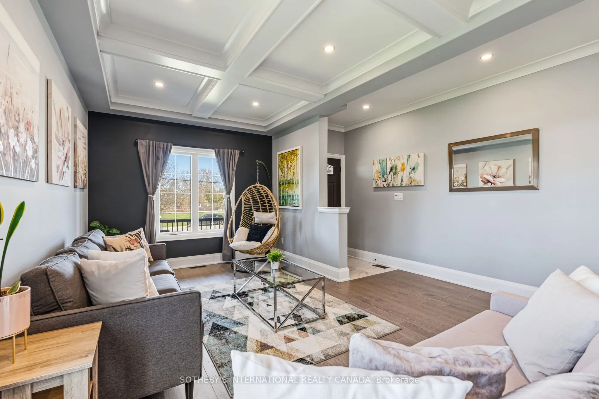 Tucked within the heart of Sutton West, this beautifully crafted semi-detached resides on a quarter acre deep lot. Thoughtfully designed from the ground up, this is not simply a home – it is a masterclass in intelligent, elegant living. From the moment you step inside, the distinction is immediate. The formal front living room welcomes you with soaring coffered ceilings and an air of quiet sophistication – a space that sets the tone for everything that follows. The main living area opens into a generous sun-filled sanctuary anchored by a stunning culinary kitchen, a breakfast bar for casual conversation, and a spacious dining area that extends effortlessly to a private sun deck – perfect for al fresco entertaining. The living room is centred around an anchoring gas fireplace – the undeniable heart of the home. A well-appointed powder room completes the main floor. With over 2,100 square feet of above grade living space, three generously proportioned bedrooms await. The principal suite is nothing short of a private retreat complete with a 5 star hotel -inspired five-piece ensuite featuring a deep soaker tub and separate shower. Two additional well sized bedrooms and an elevated laundry room with custom cabinetry, a dedicated sink, stone counters and thoughtful details woven into every corner complete the upper level. The unfinished lower level is roughed in for a bathroom with soaring ceiling heights and endless potential for a recreation room, additional bedroom or the ultimate entertaining space. Your vision, your masterpiece. Outside, a fully fenced backyard offers a safe and private retreat – perfect for little ones, pets, summer gatherings and simply unwinding at the end of the day. Walking distance to Sutton West’s charming main street, green spaces, schools and every convenience the community has to offer – this is the address young families dream of finding and never want to leave. This is the home you grow into, and the home you simply never outgrow.
