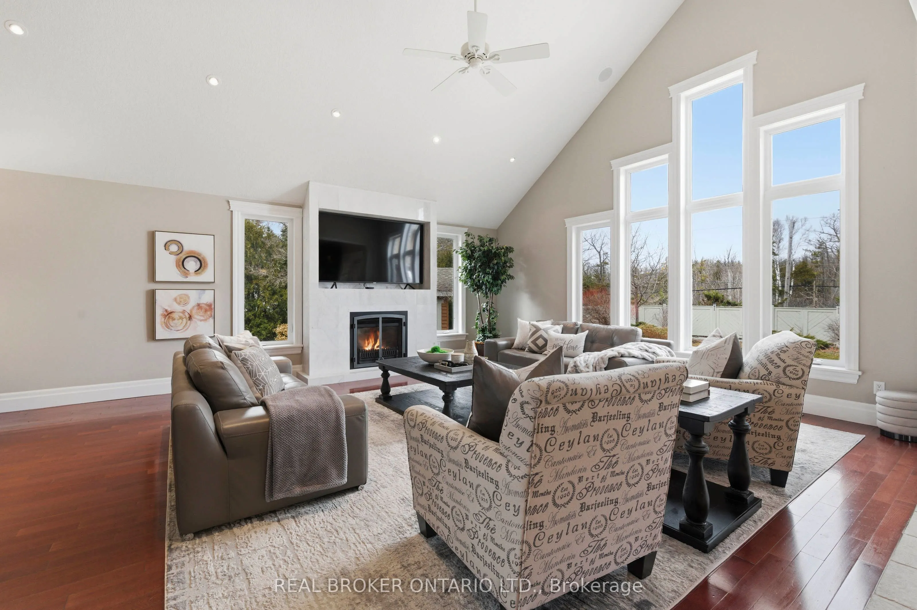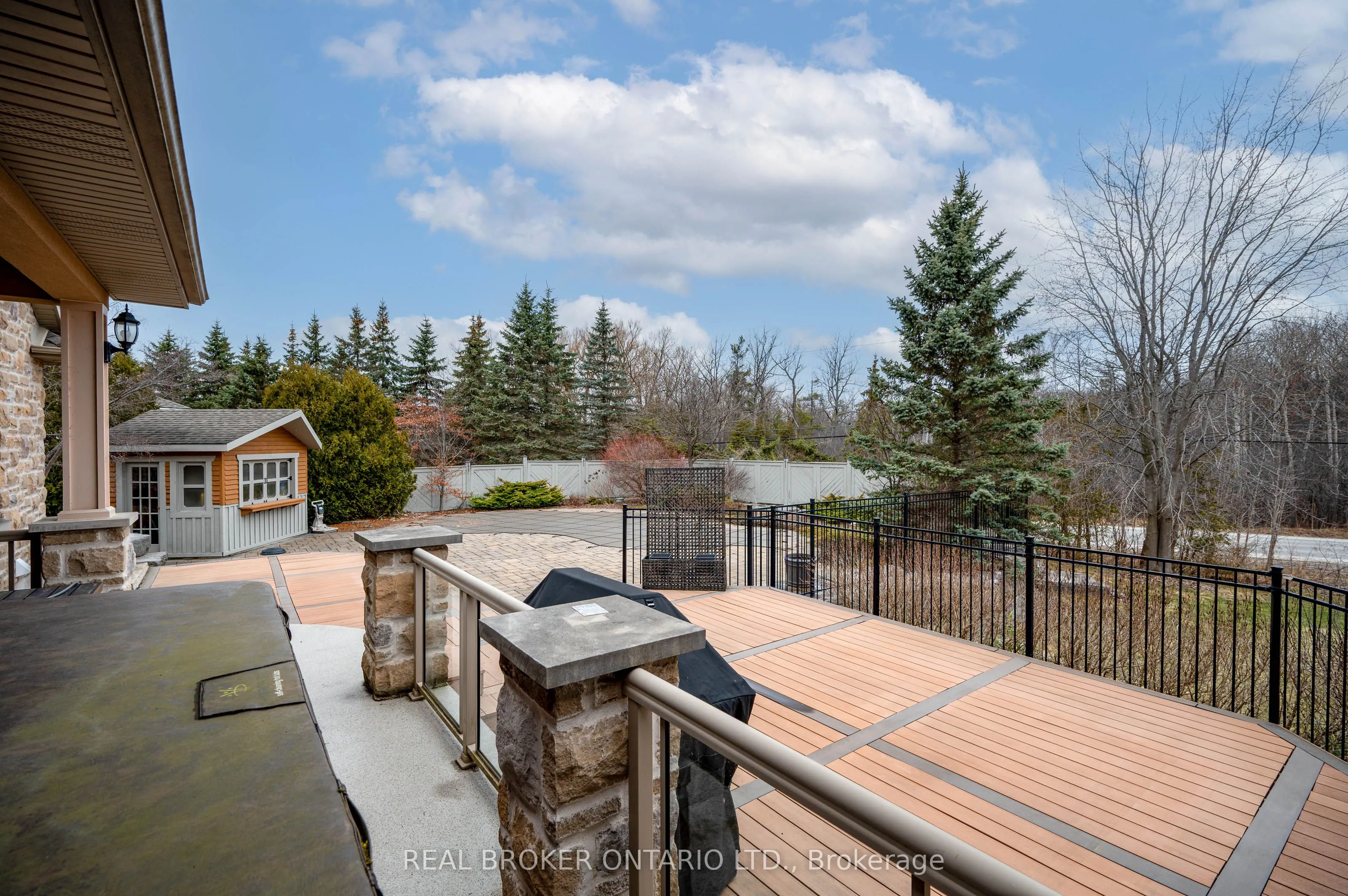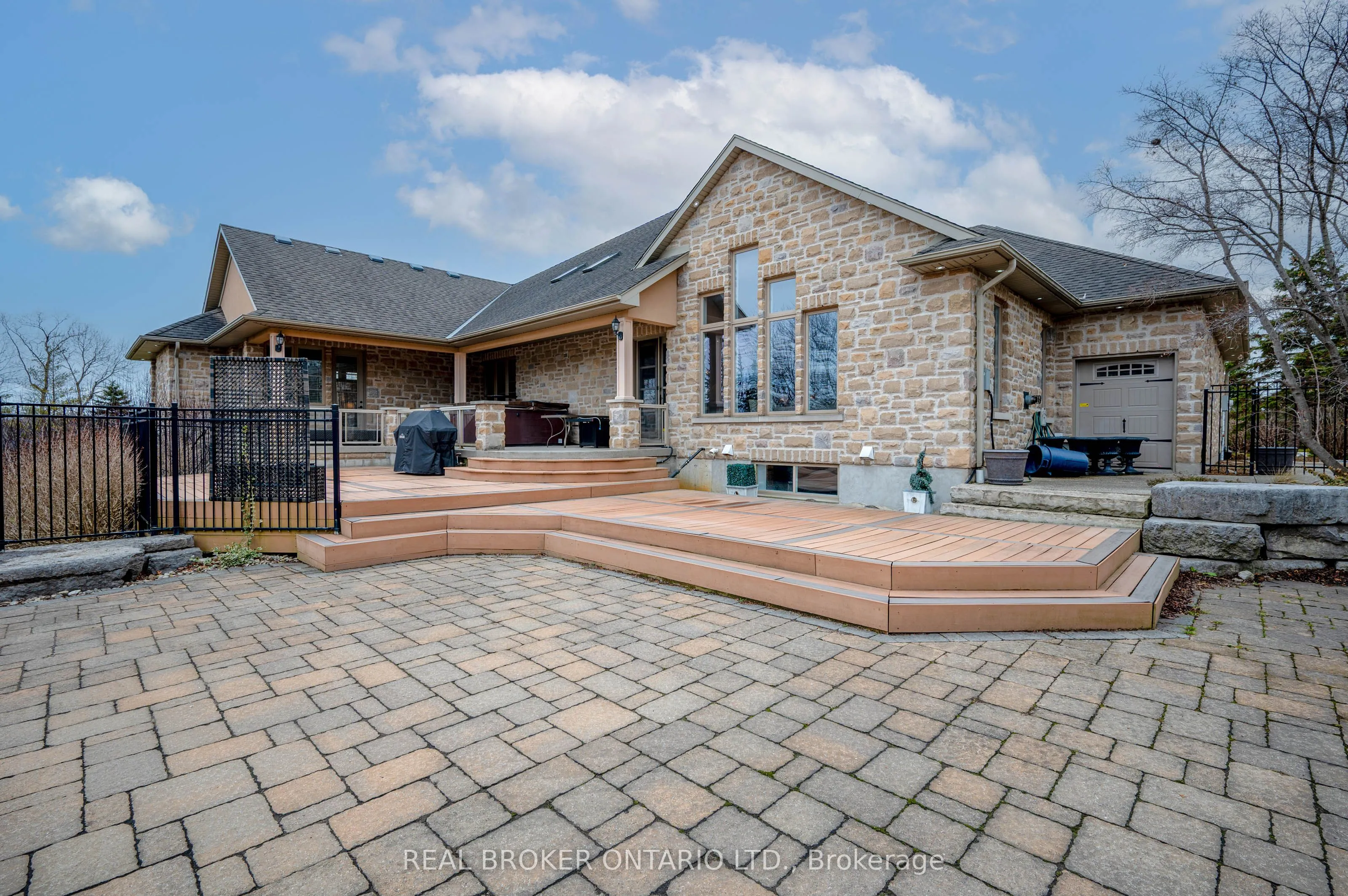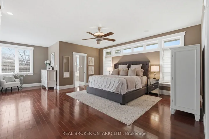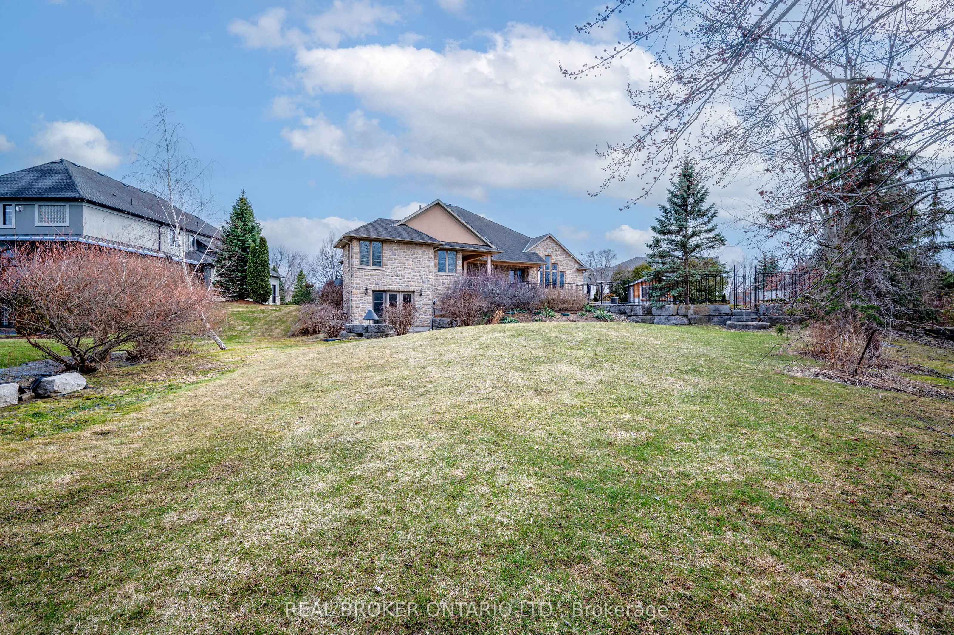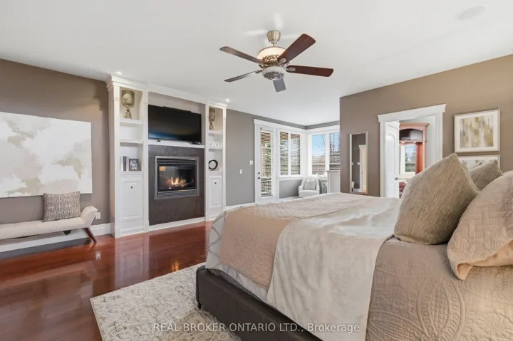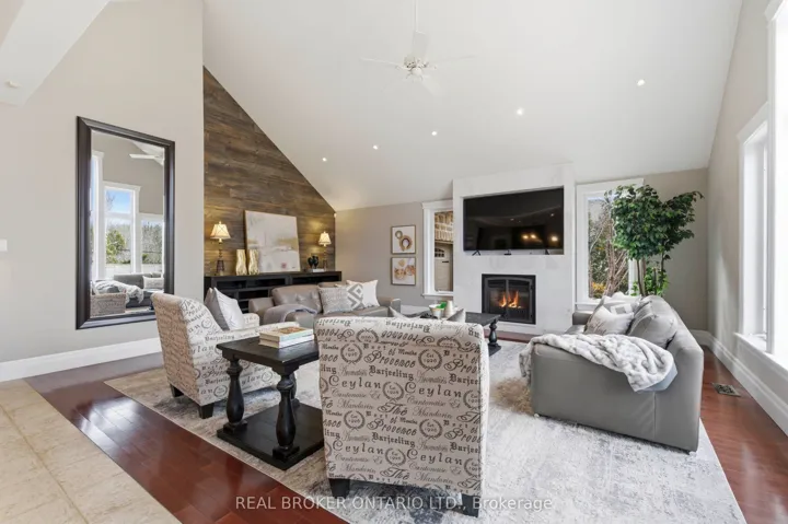 Set within the gated community of Irish Creek Estates on Puslinch Lake, this is one of just 20 custom-built residences, in a setting where homes are rarely offered and standards are already established.Just under 7,000 square feet of finished living space, wrapped in a full stone exterior that gives the home a presence the moment you arrive. Vaulted ceilings and natural light carry throughout.The kitchen is exactly what you expect at this level. A Wolf 6-burner range, Liebherr refrigeration, and granite surfaces that are meant to be used, not admired. It connects naturally to the main living spaces, where three fireplaces anchor the home.A main floor primary suite offers a layout that simply works, with direct access outside and an ensuite that feels complete. Upstairs, three bedrooms are set apart for family or guests, while the walk-out lower level opens up entirely with 9-foot ceilings, a bar, home theatre, games room, workout space, and room to gather.Outdoors, the property is finished with intention. A multi-level deck, stone patio, inground pool, and hot tub, set within a private, landscaped setting. Across the street, a private tennis and pickleball court, along with shared lake access to Puslinch Lake, extends the lifestyle beyond the property itself.Just minutes from Guelph, Cambridge, and the 401, with a level of privacy and setting that speaks for itself.