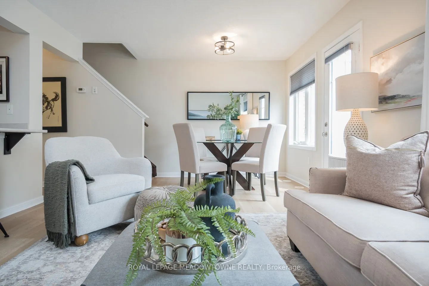 Welcome to this beautifully updated townhome in Milton’s sought-after Willmott neighbourhood offering stylish & low-maintenance living in a prime location. This 2-bedroom, 1.5-bath home features newly installed flooring, updated lights and fresh paint throughout creating a modern and move-in-ready space. The open-concept main floor includes a chef’s kitchen equipped with stainless steel appliances, rich dark cabinetry, ample storage, and a breakfast bar peninsula that flows seamlessly into the bright living and dining area-complete with brand new flooring and direct access to a sunny balcony. Upstairs, the bedrooms feature updated flooring. The spacious primary retreat has a walk-in closet and semi-ensuite access to a refreshed 4-piece bath, while a convenient 2-piece bath is located on the main level. Enjoy the convenience of parking for two vehicles with a private driveway and garage, along with interior garage access and a functional main floor laundry room. Ideally situated close to major highways, steps away from Milton’s largest sports center, parks, trails, shopping, and everyday amenities, this home combines comfort, style, and accessibility.