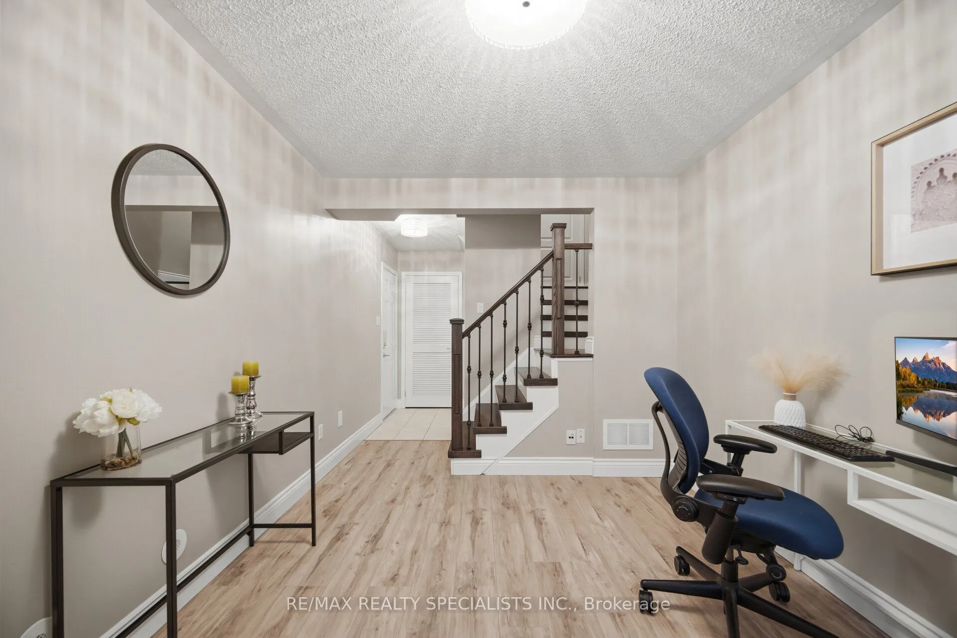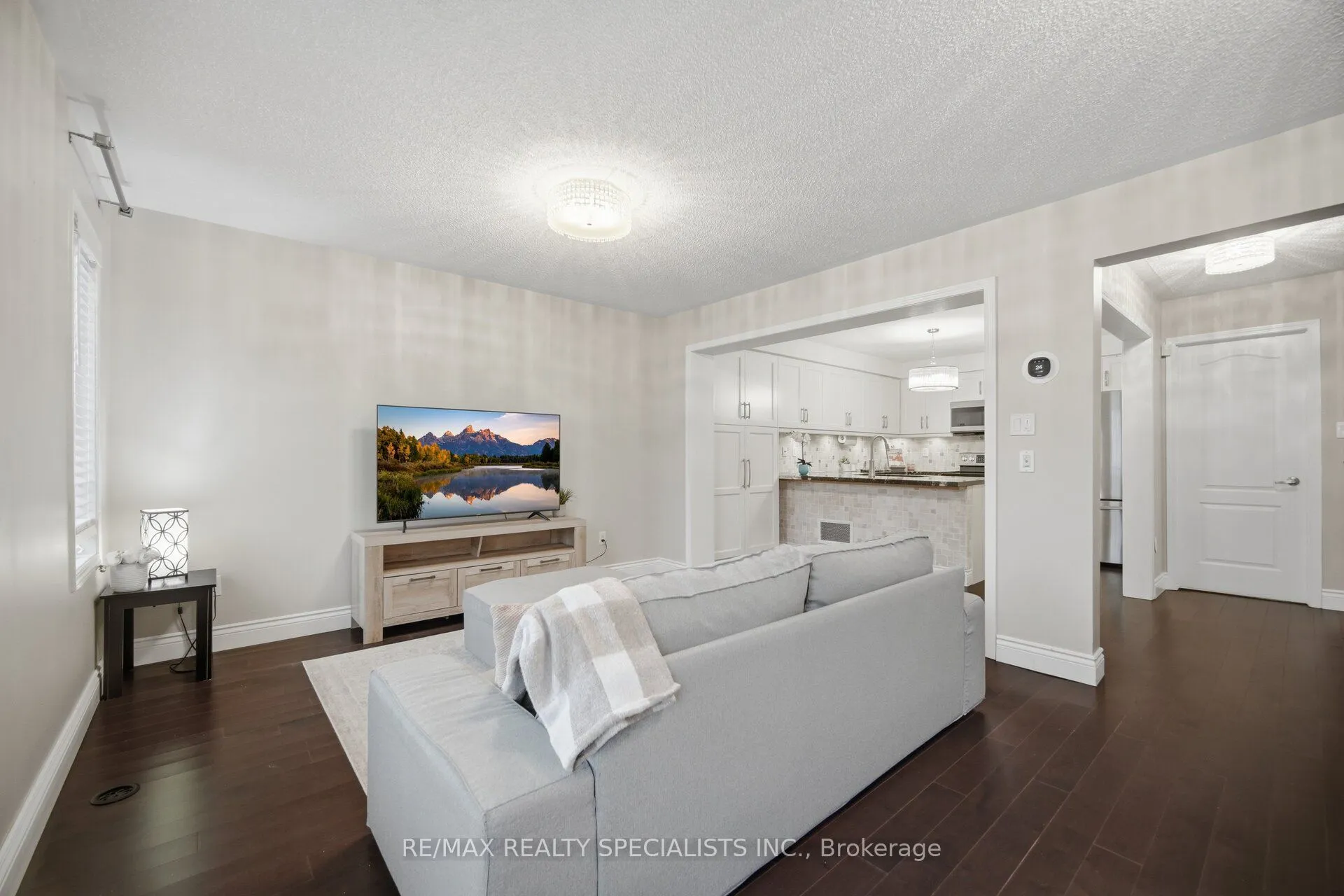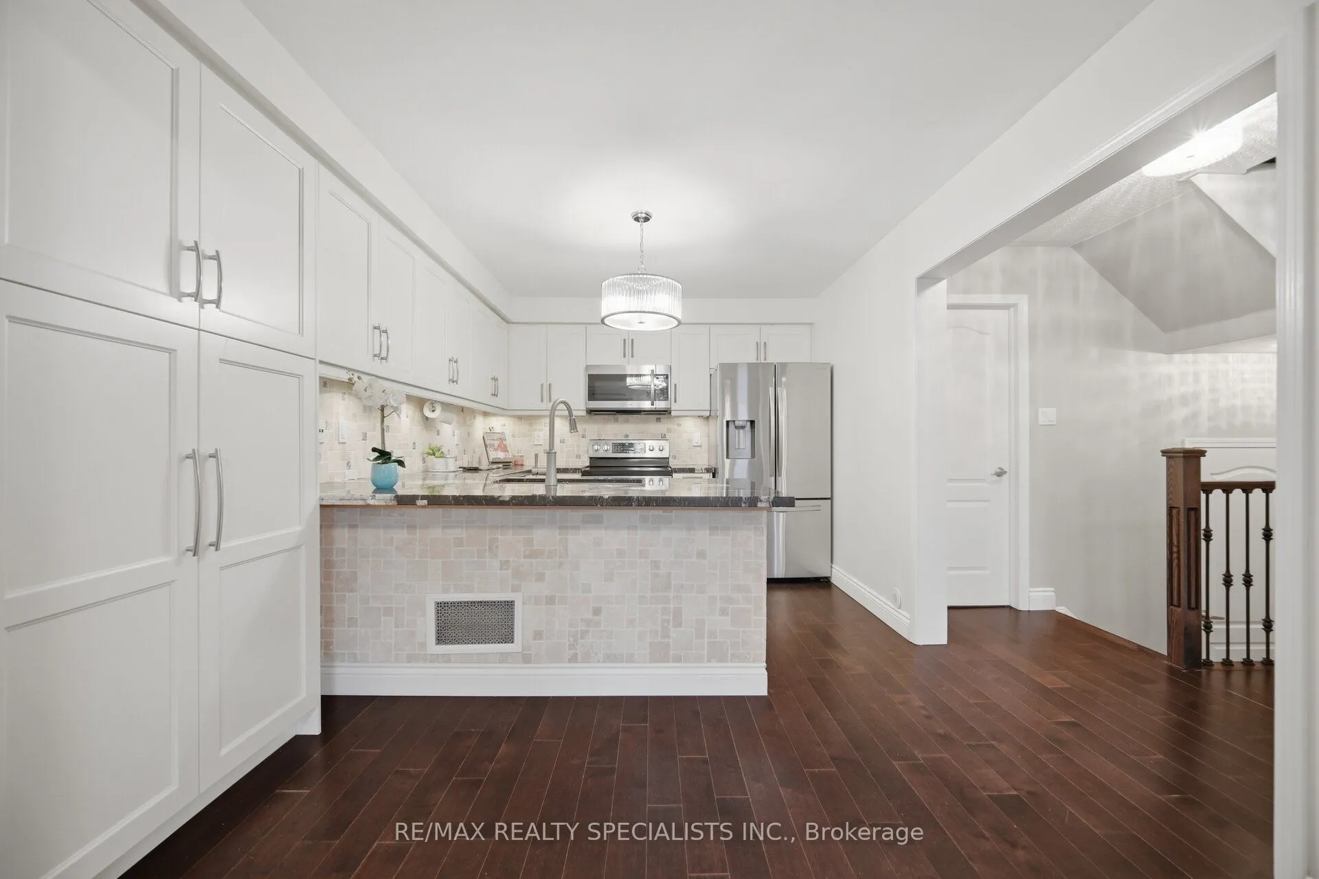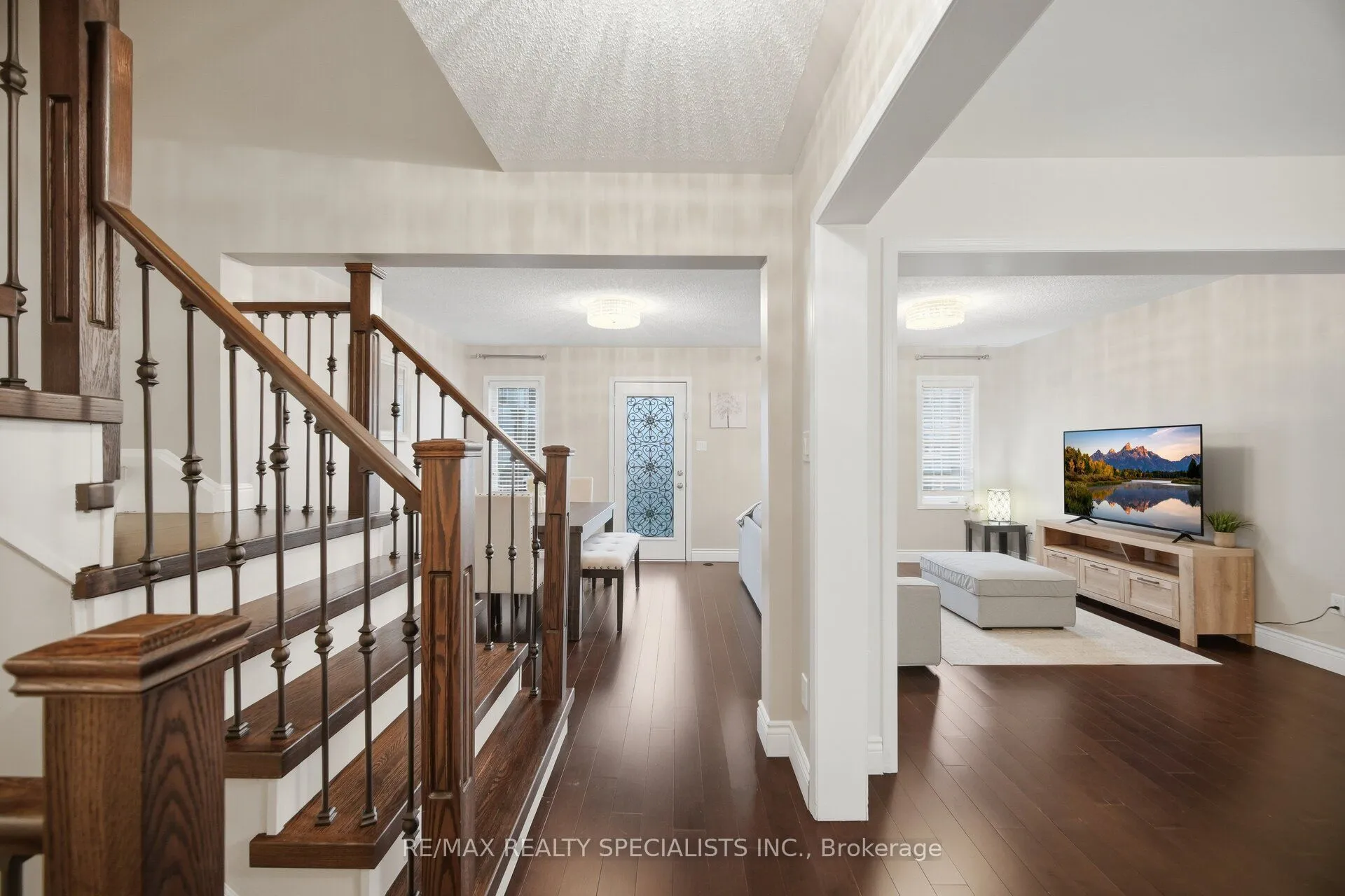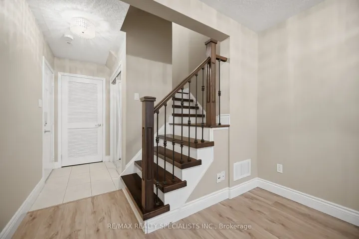Welcome to This stunning Freehold townhome featuring 2 large bedrooms, 3 washrooms with over 1,400 square feet of carpet-free living space. The large foyer can be used to welcome your guests or as an office. Dark hardwood stairs, accompanied by wrought iron pickets, lead you up to a modern and open-concept main floor with a beautiful fully-loaded kitchen, complete with s/s appliances, granite counter tops, pantry, soft close cabinet doors and breakfast bar. The combined living & dining area are complimented with large windows filling the main floor with natural light. The dining area is walkout to your own balcony, perfect for a BBQ or your morning coffee. Upstairs, you will find a 4-pc bathroom and two generous bedrooms. The primary bedroom features its own 4-pc ensuite bathroom and walk-in closet. Laundry is conveniently located on the main floor. Complete with two parking spots, one-garage and one-surface and easy access to many amenities including shopping, schools, parks, sports centres and more! Book your private showing today!
