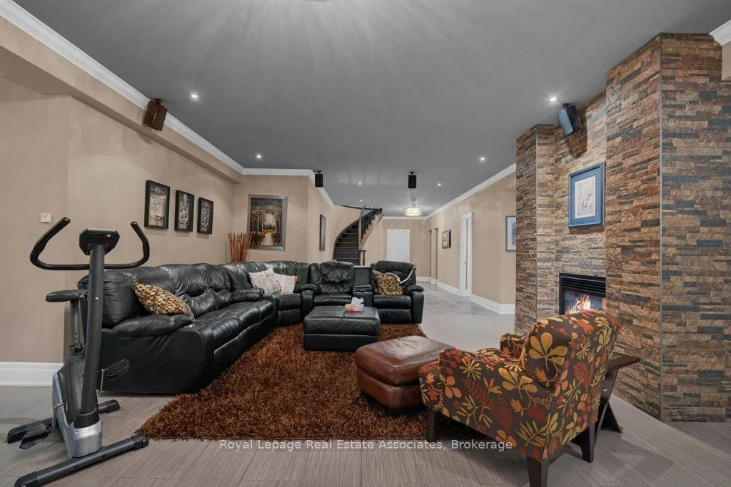 Welcome to 46 Scott Street a truly exceptional custom bungalow designed with care, craftsmanship, and every detail thoughtfully considered. The open-concept main floor features a stunning chefs kitchen with granite island, double sink, two ovens, 5-burner gas range, pasta pot filler, water filtration, pot lights, built-in speakers, and wine fridge all flowing into a spacious great room with 12′ ceilings, stone gas fireplace, surround sound, and custom blinds. The dining area opens directly to your private backyard oasis. The primary suite is a true retreat with a luxurious 5-piece ensuite: Jacuzzi tub, large shower with rain head and body sprays, crystal chandelier, electric fireplace, walk-in closet, and custom built-ins. A generous office, second bedroom, and large laundry room with sink, stone backsplash, folding table, and ample storage complete the main floor. Enjoy the quiet of solid 8′ soundproof doors and 10″ walls throughout. The fully finished basement features 9′ ceilings, heated floors, custom oak kitchen with Corian island, top-quality appliances, rec room with two-sided stone gas fireplace, games area, two large bedrooms, and a spa-like 3-piece bathroom with steam sauna, rain shower, body sprays, and light-up wall fountain. Also includes 2 soundproof studio rooms and 2 cold storage areas. The oversized garage is ideal for car enthusiasts, offering lift height, custom shelving, inside access, two garage door openers, and finished walls. The backyard offers privacy with mature trees, irrigation system, 12×12 gazebo, gas BBQ hookup, shed, covered porch, and a peaceful stone waterfall. Additional features: 2×6 construction, stone and brick exterior, high-efficiency furnace, RO system, water softener, on-demand water heater with backup tank, security system, dimmable lighting, two staircases, and expansive windows overlooking landscaped gardens. This one-of-a-kind home is a must-see built with top-tier quality, comfort, and timeless style.