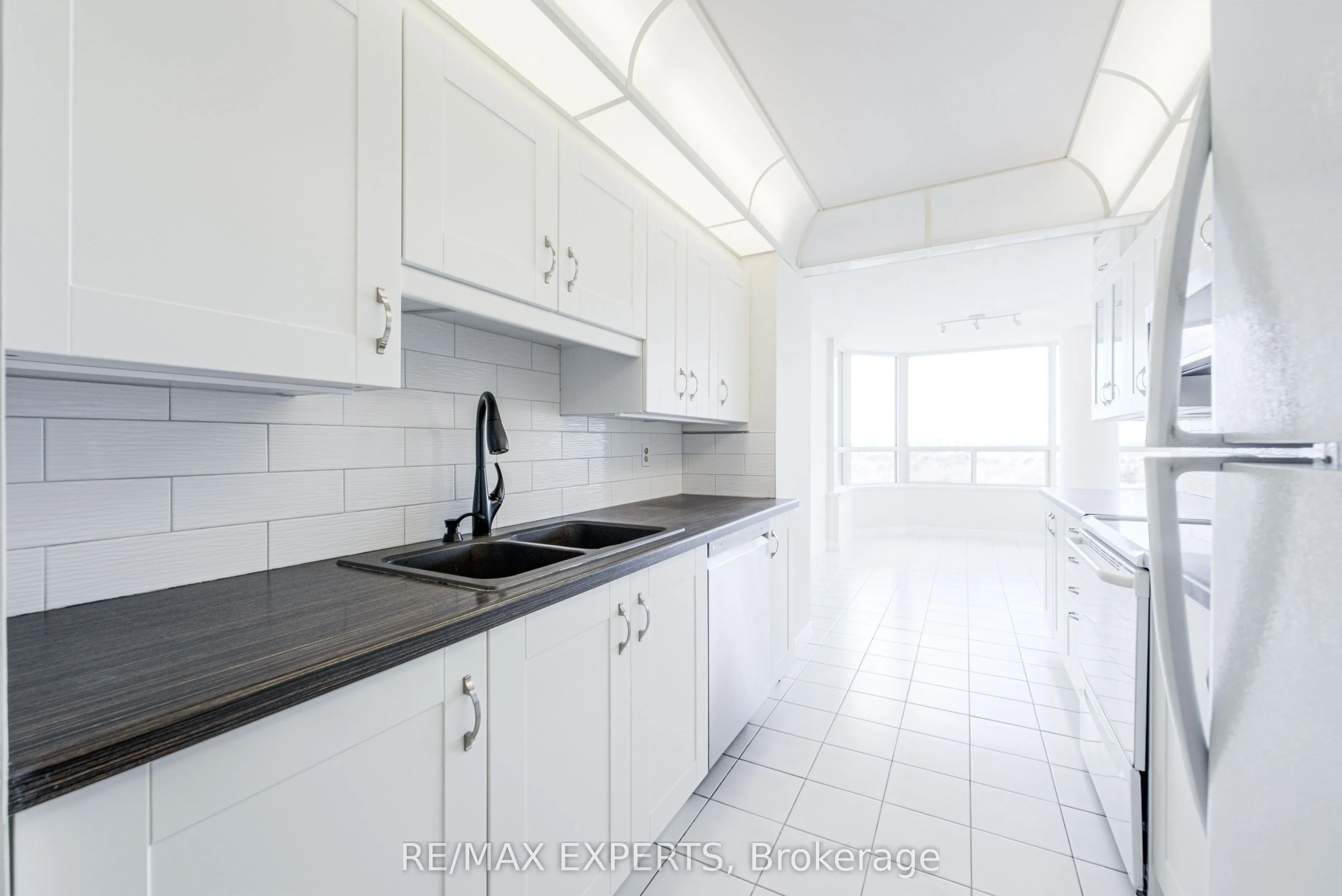 Generous 2-bed, 2-bath condo with a split bedroom layout and over 1352 sq ft of space. Primary bedroom features a corner tub in the ensuite bathroom and a large walk-in closet. The unit includes one parking spot and a locker. Bright and airy with large windows, solarium, and private balcony. All-inclusive utilities plus resort-style amenities: indoor pool, sauna, squash and tennis courts, gym, games room, and more. Steps to transit and shopping. Freshly painted and cleaned with updated floors, newer kitchen, and washer/dryer. Ideal for a buyer looking for plenty of space or a renovator ready to make it their own in a sought-after location.