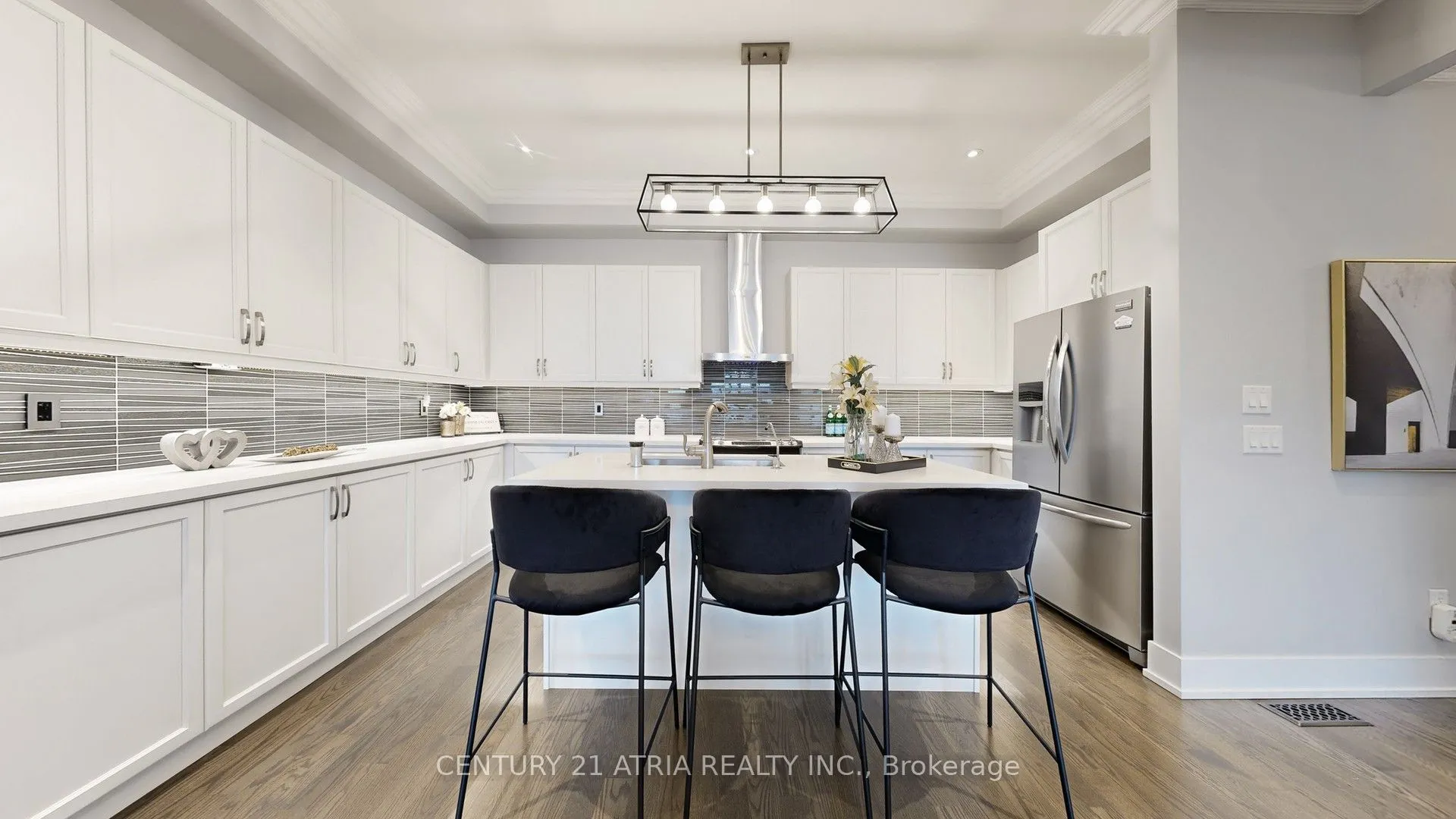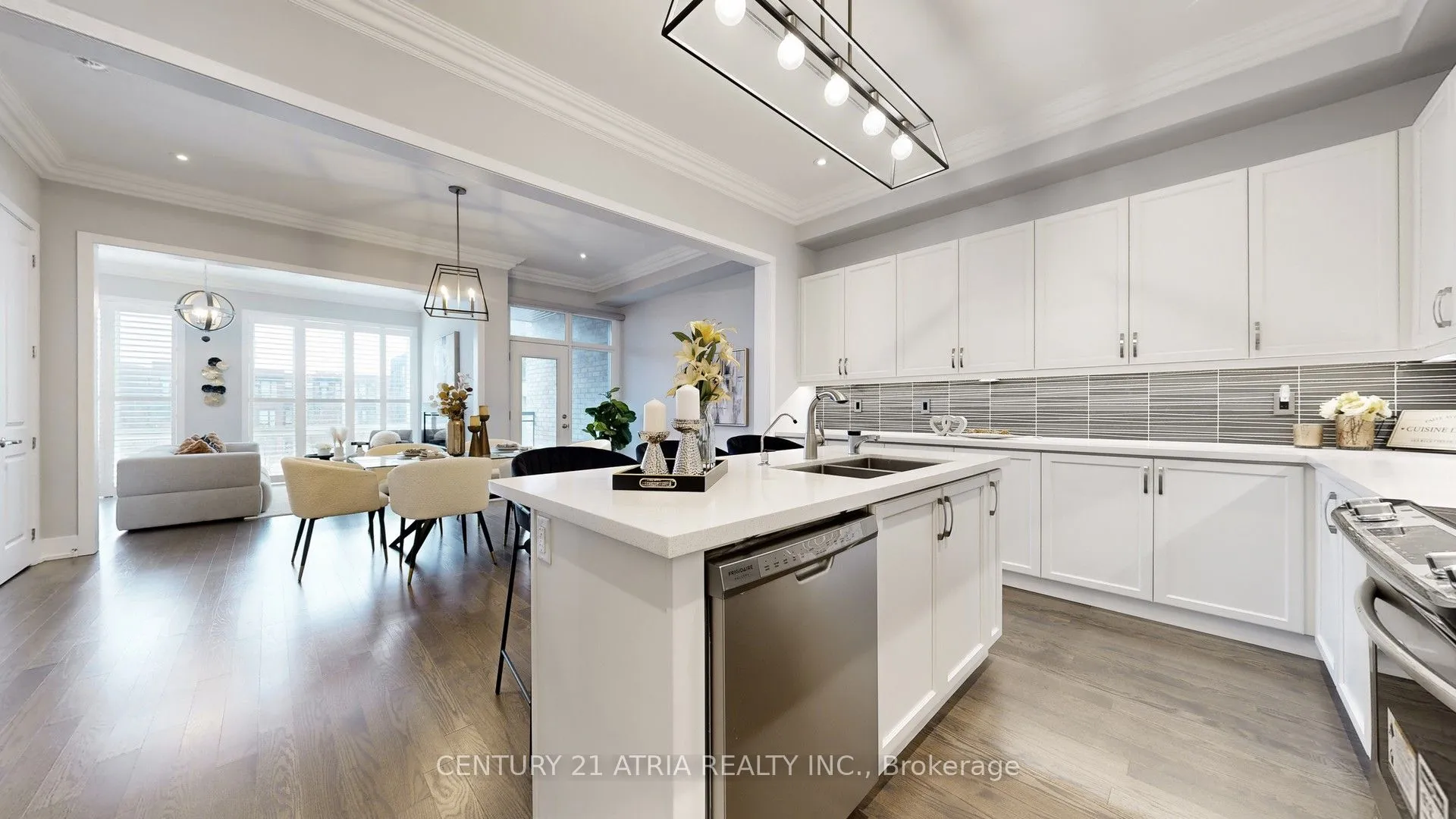 Beautifully upgraded south-facing modern townhouse in one of the hottest pockets in Vaughan. This 2 garage, 3 beds 4 baths, 3 parking space end-unit boasts 2233 SF as per builder plans. Home features a large & inviting ground floor multi-purpose room with a custom layout consisting of 4 piece bath & laundry/mud room. Wall-to-wall large windows brings in natural southern lights here. The 2nd level with 10 ft ceilings is a true entertainer’s delight, with a huge kitchen and cabinets & counter space galore! Generously sized living & dining rooms means even more friends can be invited to your dinner parties & game nights. These rooms are further upgraded with pot lights and cornice mouldings. A covered deck on this floor offer opportunities for a breath of fresh air, or a break from the main conversation inside. End unit design provides extra windows and natural lights into the main stairway. The 3rd level has 9 ft ceilings and features a large primary bedroom with a bright 5 piece ensuite bath. All bedrooms & baths have large floor-to-ceiling windows and hardwood floors. Extra wide garage provides additional storage space. Electric car charger plug already installed. Walk to 3 popular plazas within mere minutes, with brand name anchors such as Frechco, Longos, L.A. Fitness, Tim Hortons, Aroma Espresso, Landwer Cafe, Cobs bread, LCBO, most of the big banks, and many more! Both Hillcrest Mall and Promenade Mall are within a ~10 minute drive. Other conveniently accessible locations include the Toronto Waldorf school (next door), Community Centre, Richmond Hill country club, and the Rutherford GO train station. Don’t miss!