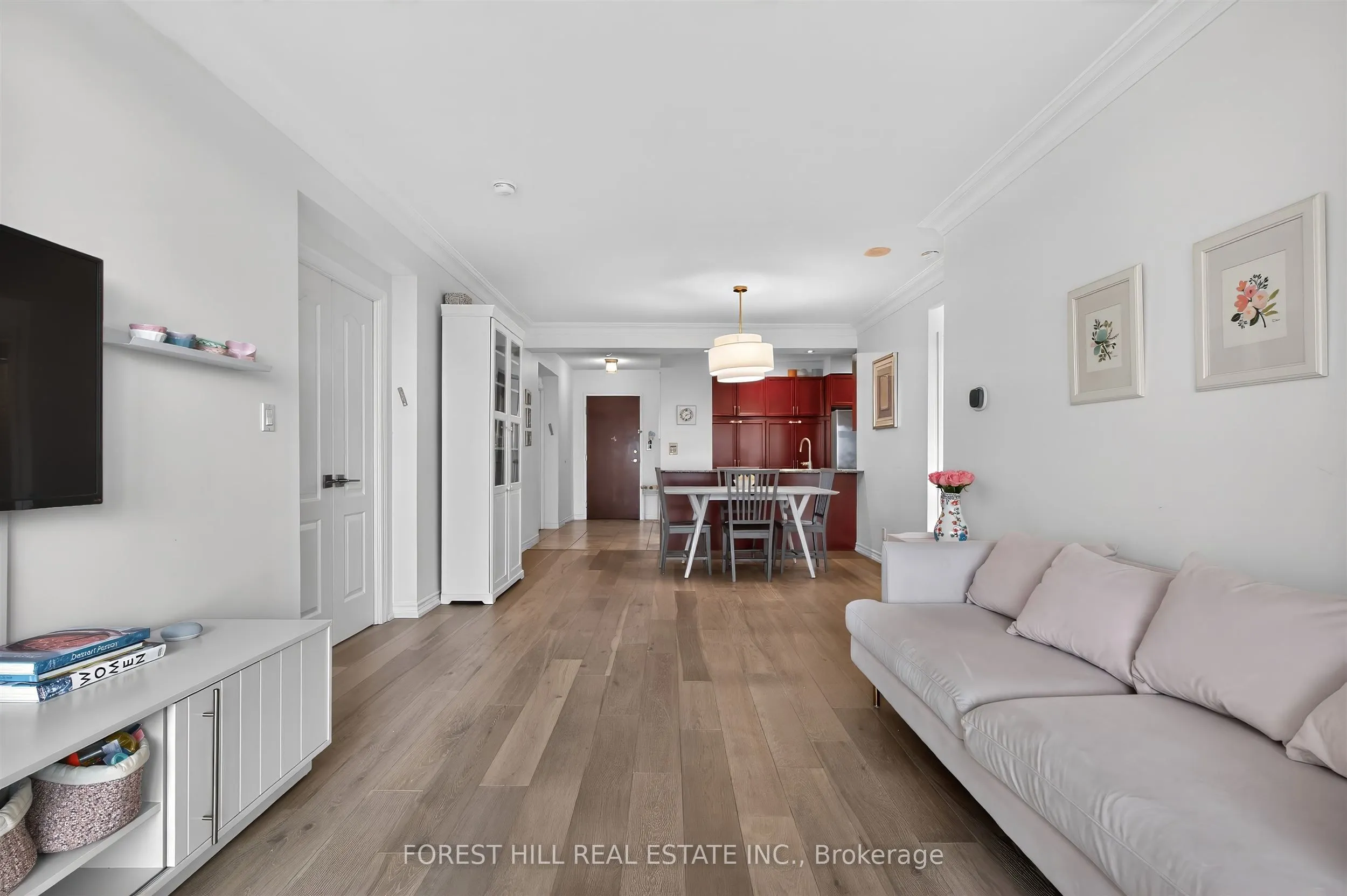 Welcome to this bright and spacious luxury suite in the prestigious Promenade Park Towers, ideally located in the heart of Thornhill. Featuring a highly desirable west exposure, this beautifully updated 2-bedroom + den residence is flooded with natural light and offers a-functional, split-bedroom layout for optimal privacy. The large den provides exceptional flexibility-perfect as a home office or potential third bedroom. Enjoy a generous open-concept living and dining area, complemented by a well-appointed kitchen with ample storage space. Step out onto the private balcony and take in the beautiful unobstructed views. Recent upgrades include new flooring, a fully renovated ensuite bathroom, and a new washer and dryer, new LED lighting + new light fixtures, smart thermostat (Ecobee), doors on den, offering modern comfort and style throughout. This well-managed building boasts an impressive array of resort-style amenities including a 24-hour concierge, elegant lobby, indoor pool, sauna, hot tub, fully equipped fitness centre, party lounge, games room, and theatre room. Ample visitor parking ensures convenience for guests. Unbeatable location just steps to Promenade Mall, public transit, fine dining, shopping, parks, and scenic trails-everything you need right at your doorstep. Walking distance to at least 4 grocery stores (Walmart, No Frills, T&T, Olive) and half a dozen renovated public parks with playgrounds. Discounted Rogers Internet + TV included with maintenance fee. A rare opportunity to own in one of Thornhill’s most sought-after residences!