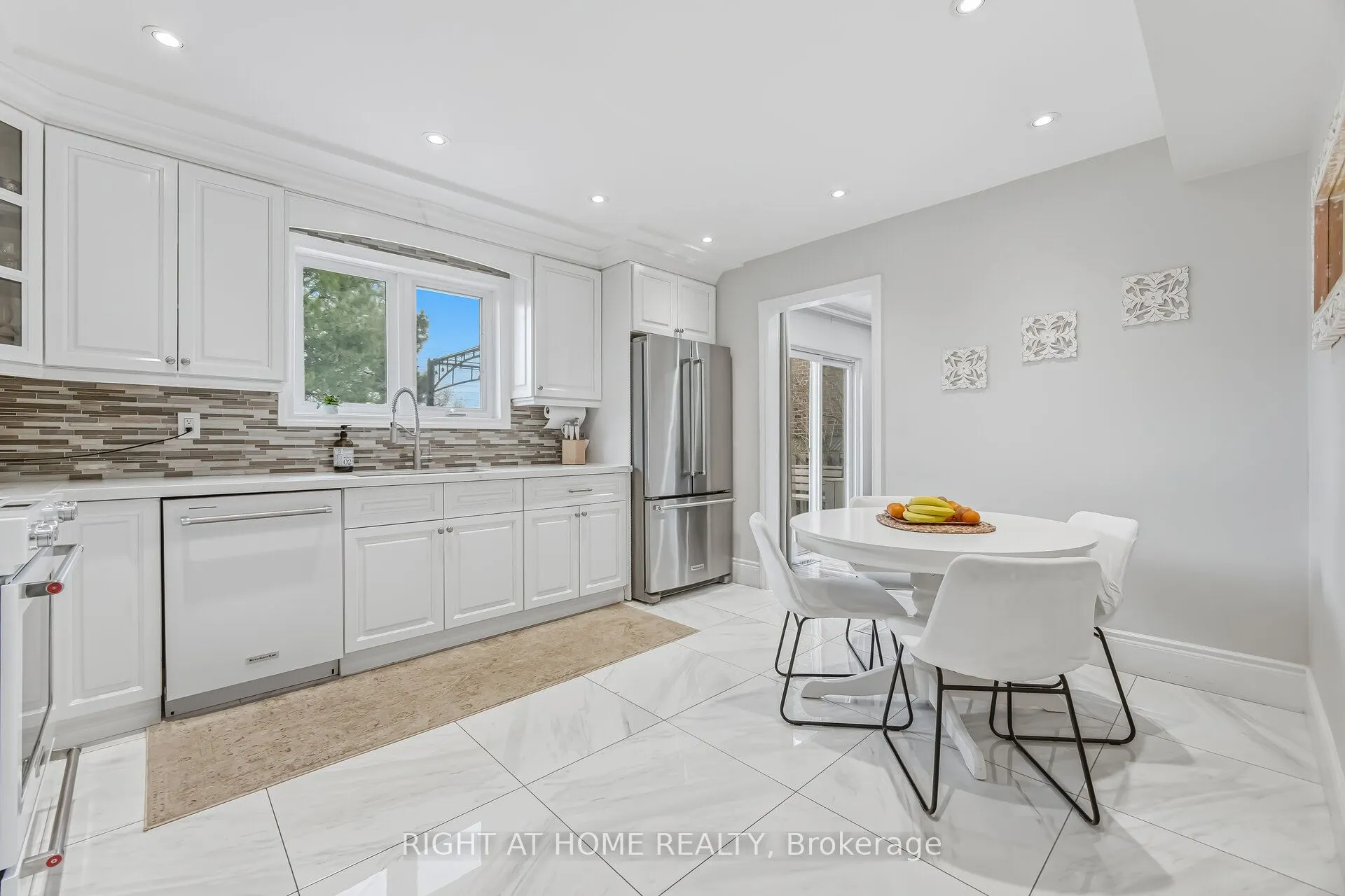 Nestled on a quiet, tree-lined street in a highly sought-after, family-friendly neighbourhood, this stunning detached home showcases true pride of ownership.Featuring 4+1 spacious bedrooms, this home offers a thoughtfully renovated kitchen with an eat-in breakfast area, perfect for everyday living. The formal dining room walks out to a private backyard oasis, complete with a large patio ideal for entertaining.The primary bedroom serves as a luxurious retreat, featuring a jacuzzi tub and heated floors for ultimate comfort. Skylights above the staircase and in the primary ensuite fill the home with abundant natural light.Additional highlights include:Convenient garage access to mudroom Separate side entrance for added flexibility Mature trees providing privacy Bright, functional layout throughout Located close to top-rated schools, parks, public transit, and major highways, this home combines comfort, style, and convenience in one exceptional package.