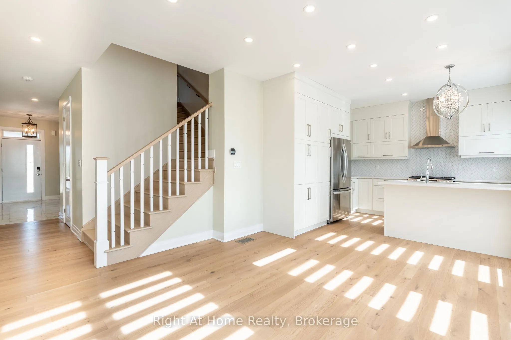 Welcome to this luxurious and spotless End Unit freehold townhome in a prime Oakville location across the park. This bright home offers 4 bedrooms, 5 bathrooms, a convenient office/den on main floor and finished basement – approx.2,617 sq ft of upgraded finished living space across 4 levels. The main floor boasts an open concept layout with a fully upgraded Chef’s kitchen with quartz counters, SS appliances, and backsplash, along with a great room and walk out to the yard. Good size office and large walk in closet are part of a functional main floor. Upstairs, the Primary bedroom offers a walk-in closet and spa like ensuite bath, while 2 additional bedrooms, main bath and laundry complete second level. Extras include a 4th large bedroom with upgraded ensuite bath on the 3rd floor that can be used as additional office or entertainment loft area. The finished basement provides versatile space for family recreation, and offers a full 4 pcs bath.High end finishes include modern oak hardwood on main, second and third floor, premium tiles, oak stairs, 8 ft doors, smooth ceilings, 9 ft ceilings on main & 2nd floor. 1 car garage and tandem driveway allows for parking 3 cars. Move in condition, this home is surrounded by top rated schools, parks and trails, steps to transit, close proximity to shopping and Oakville Trafalgar Hospital.