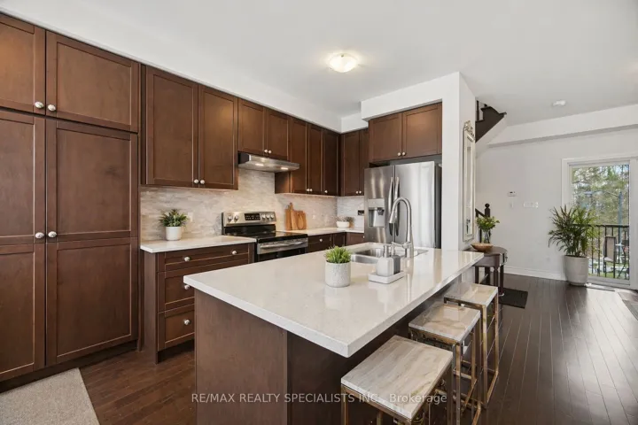Premium Freehold Townhome | No Homes Front or Back | Ravine & Pond Views!Rare opportunity to own a beautifully maintained home in a high-demand, family-friendly community offering ultimate privacy and premium surroundings. Enjoy no homes in front or back, with main street exposure and landscaped garden walk-out on one side, and peaceful ravine and pond views on the other.This bright and spacious 3+1 bedroom, 5 bathroom home features a builder-finished basement (paid upgrade) with an additional bedroom and bath, plus separate entrance access, offering possible in-law suite or income potential.Thoughtfully designed layout includes a ground-level family room (or bedroom) with walk-out, and an open-concept main floor featuring a cozy gas fireplace, large windows, and a modern upgraded kitchen with centre island and stainless steel appliances, along with a covered patio perfect for entertaining. Hardwood flooring runs throughout the main living areas.The spacious primary retreat offers a private balcony, walk-in closet, and ensuite bath, complemented by well-sized secondary bedrooms.Ideally located steps to shopping, schools, parks, trails, and major highways (401/407).Unmatched privacy, scenic views, and flexible living with possible income potential-this is the one buyers wait for!