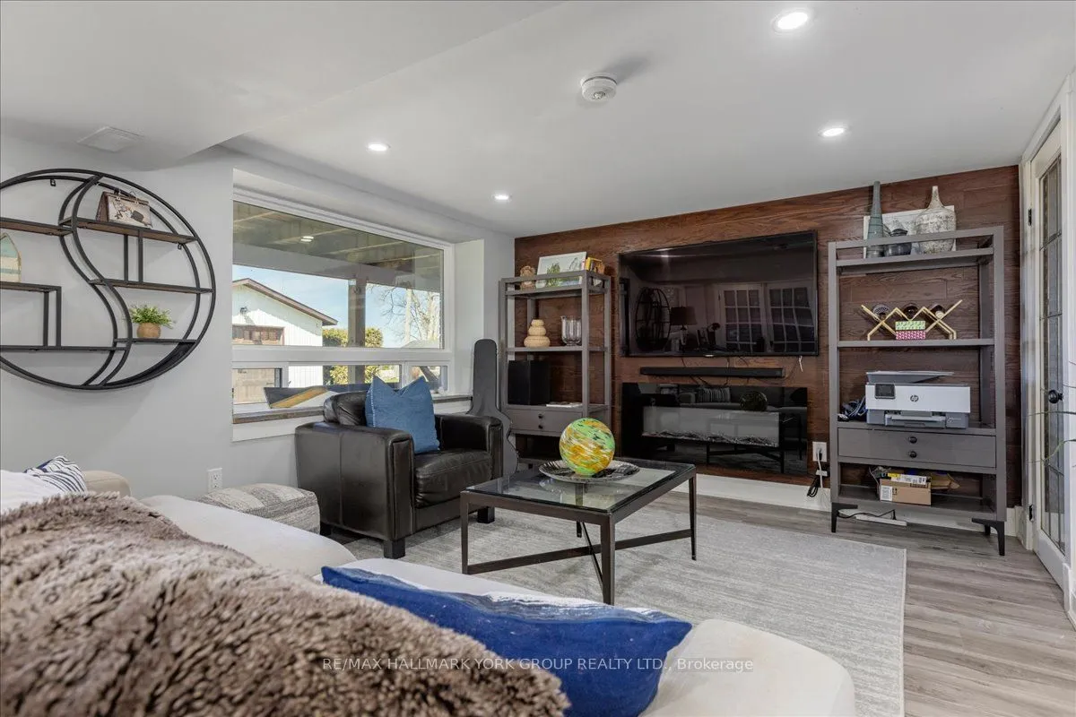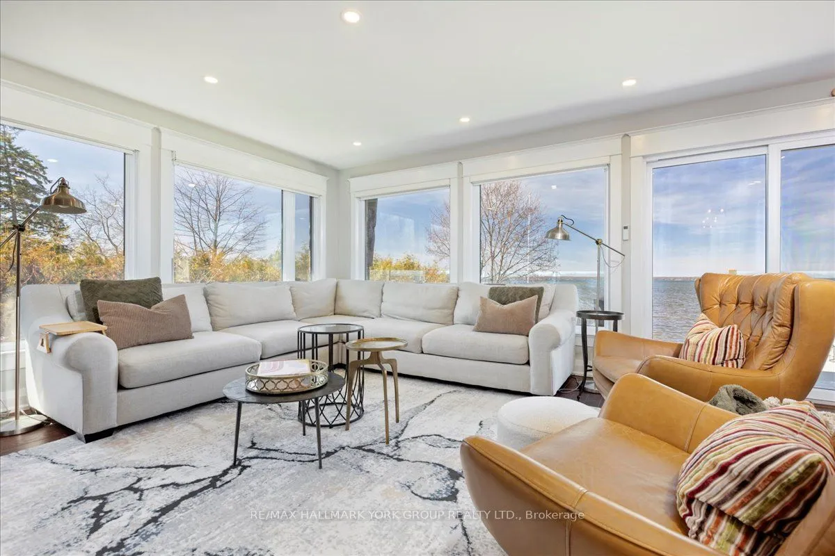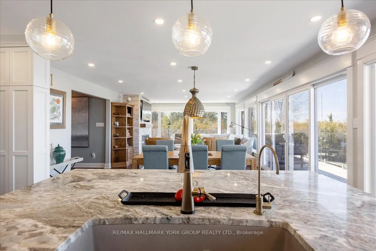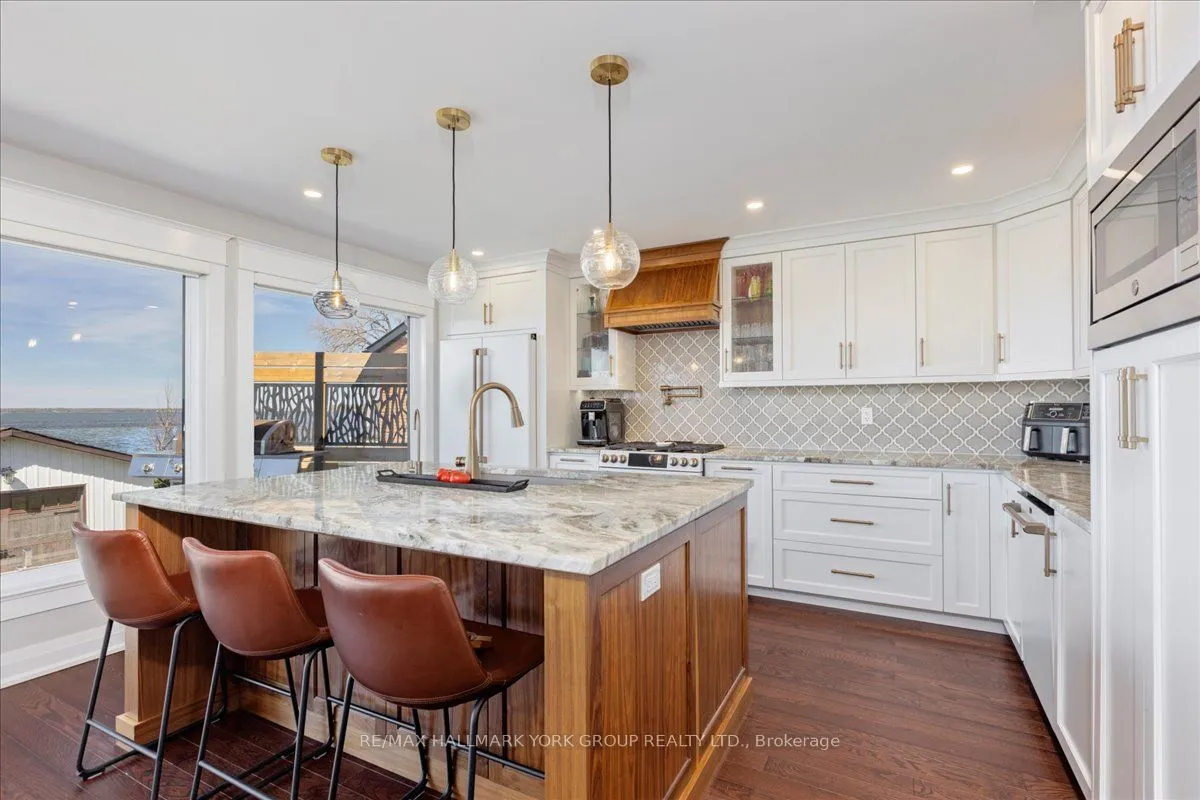 Thoughtfully and tastefully renovated with rich quality finishings this picture perfect direct lakefront home offers gorgeous panoramic lake views and year round recreation at your doorstep. The welcoming entry features a spacious enclosed foyer and a 10′ high hallway that overlooks a stunning great room with huge windows and glass deck panels enhancing the spectacular lake view. The warm and inviting space features a floor to ceiling stone fireplace ideal for those cozy nights, comfortable dining area with walkout to deck and a top-tier custom kitchen featuring a large island ideal for casual meals or hanging out with your guests while they await their gourmet meal. The dual gas range/electric oven, custom hood fan & pot filler along with plenty of cabinets and a hidden pantry all add function to the space. A generous Primary suite features wall to wall closets, picture window and a spacious 5pc ensuite with a clean touch bidet. Hardwood floors, pot lit ceilings, main level laundry and heated bathroom floors add warmth, character and functionality. The bright and open at grade lower level is ideal for guests, extended family or teenage children to enjoy privacy and walk out to lake activities. The 32′ X 11.10′ garage is insulated, drywalled and heated and features a studio workshop at the rear. The well-appointed exterior offers a premium 77′ X 205′ lot, landscaped armour stone entry, 2 cherry & 1 peach tree, multiple car parking and a fun and relaxing lakeside retreat. Enjoy the true beauty of the lake highlighted by over 70′ of shoreline, a 24′ X 16 dry’ boathouse, 60′ seasonal dock and waterside gazebo. This home is move in ready with a flexible/quick closing available.