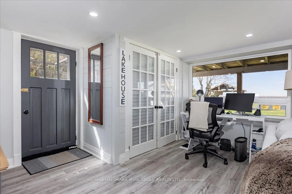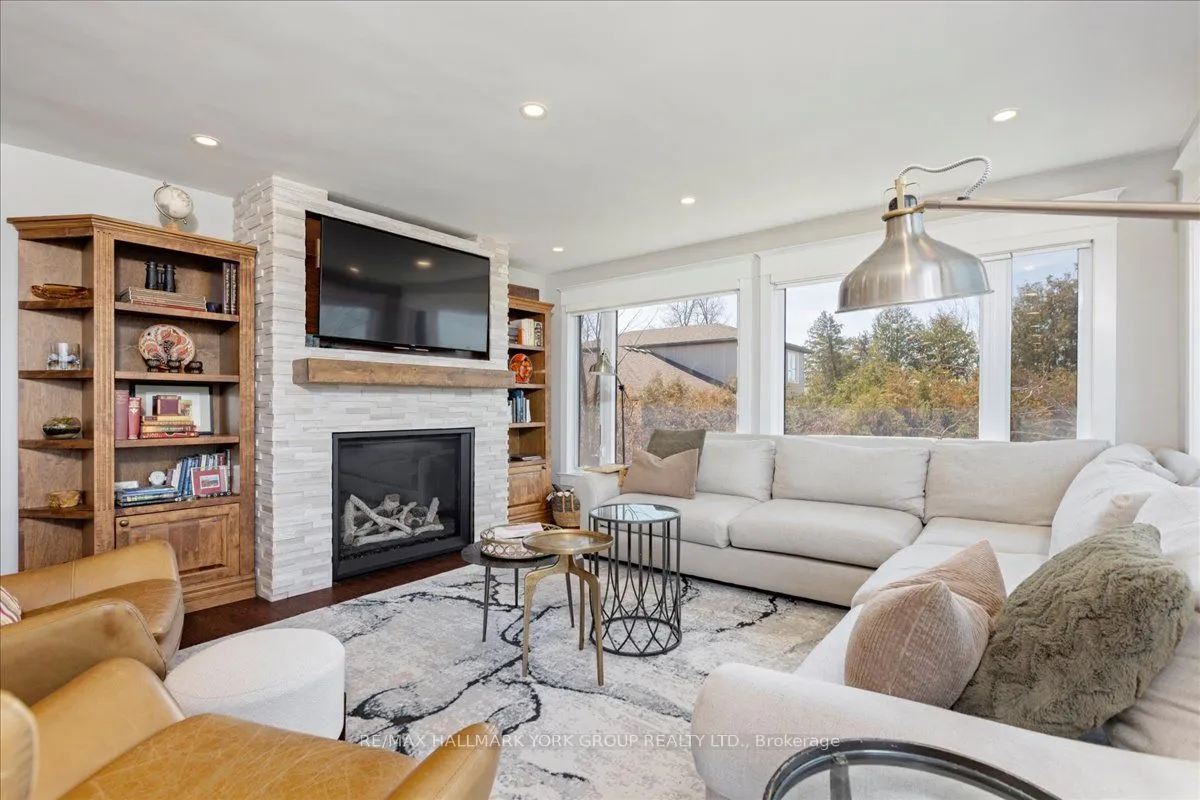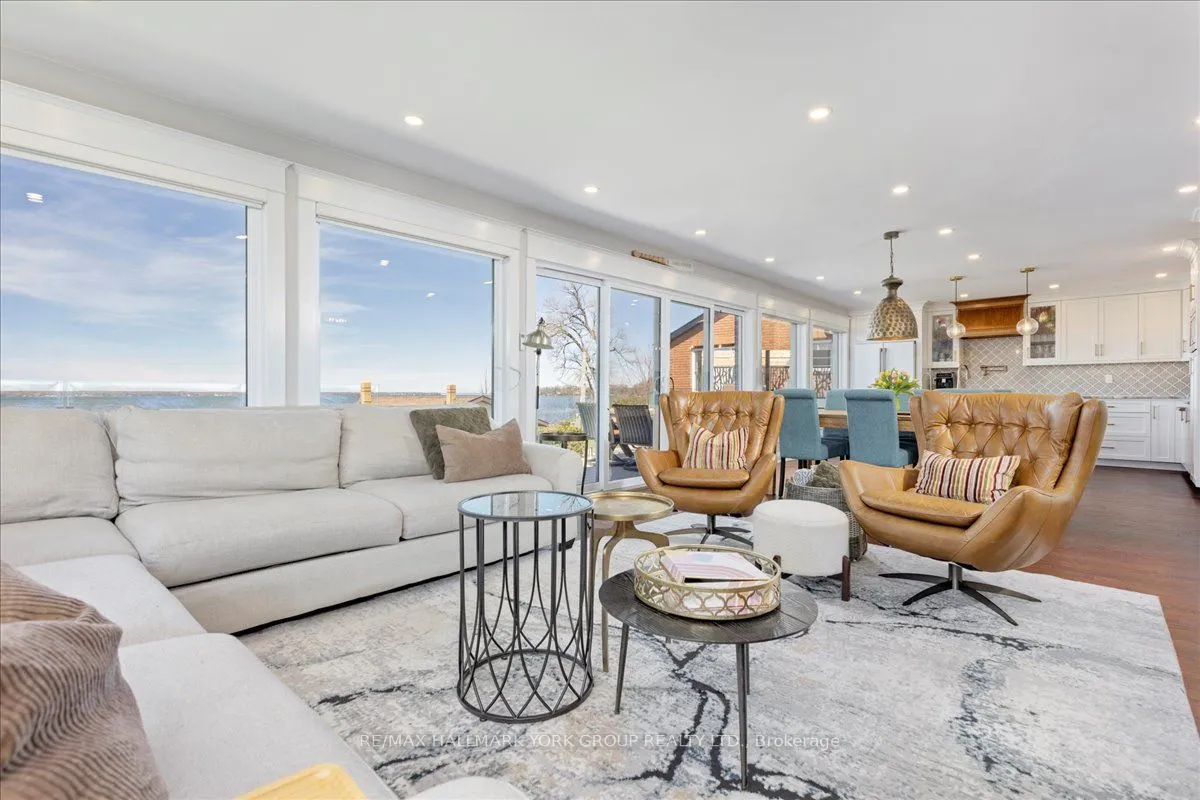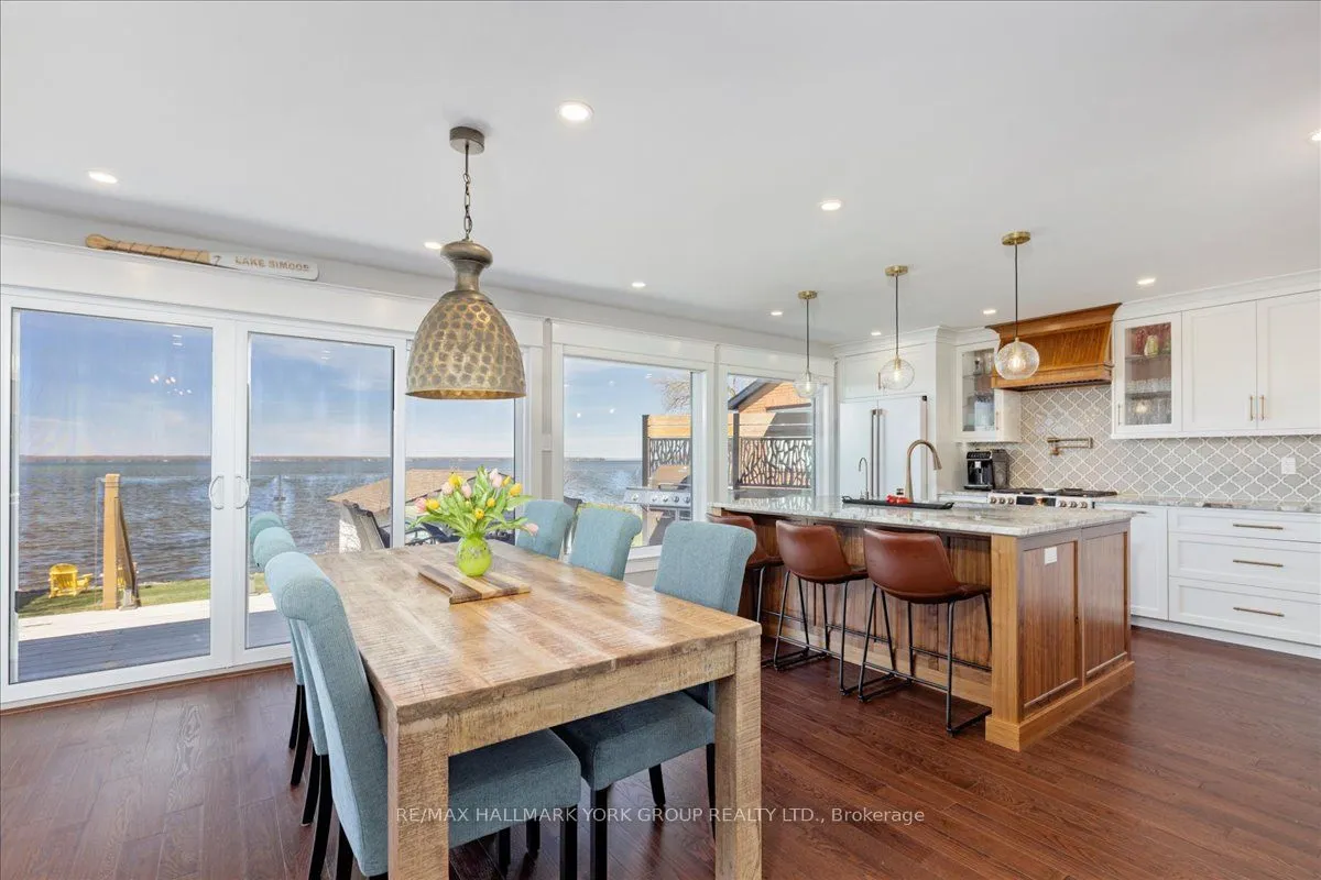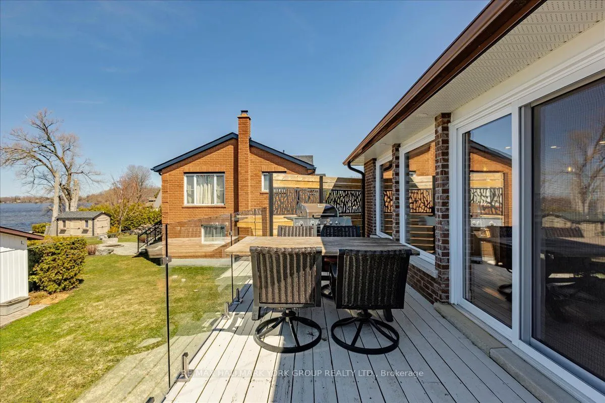 Thoughtfully and tastefully renovated with rich quality finishings this picture perfect direct lakefront home offers gorgeous panoramic lake views and year round recreation at your doorstep. The welcoming entry features a spacious enclosed foyer and a 10′ high hallway that overlooks a stunning great room with huge windows and glass deck panels enhancing the spectacular lake view. The warm and inviting space features a floor to ceiling stone fireplace ideal for those cozy nights, comfortable dining area with walkout to deck and a top-tier custom kitchen featuring a large island ideal for casual meals or hanging out with your guests while they await their gourmet meal. The dual gas range/electric oven, custom hood fan & pot filler along with plenty of cabinets and a hidden pantry all add function to the space. A generous Primary suite features wall to wall closets, picture window and a spacious 5pc ensuite with a clean touch bidet. Hardwood floors, pot lit ceilings, main level laundry and heated bathroom floors add warmth, character and functionality. The bright and open at grade lower level is ideal for guests, extended family or teenage children to enjoy privacy and walk out to lake activities. The 32′ X 11.10′ garage is insulated, drywalled and heated and features a studio workshop at the rear. The well-appointed exterior offers a premium 77′ X 205′ lot, landscaped armour stone entry, 2 cherry & 1 peach tree, multiple car parking and a fun and relaxing lakeside retreat. Enjoy the true beauty of the lake highlighted by over 70′ of shoreline, a 24′ X 16 dry’ boathouse, 60′ seasonal dock and waterside gazebo. This home is move in ready with a flexible/quick closing available.