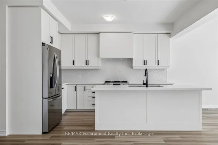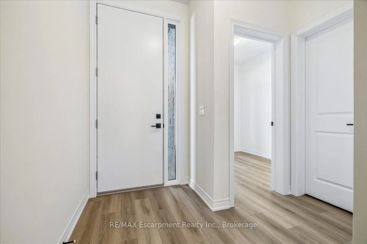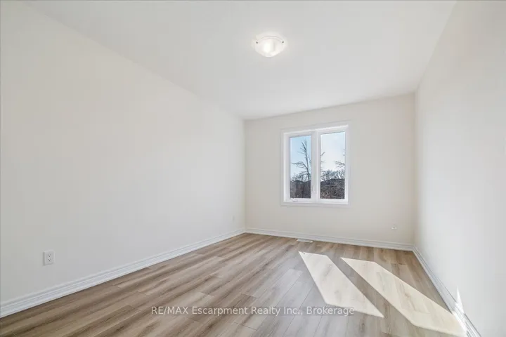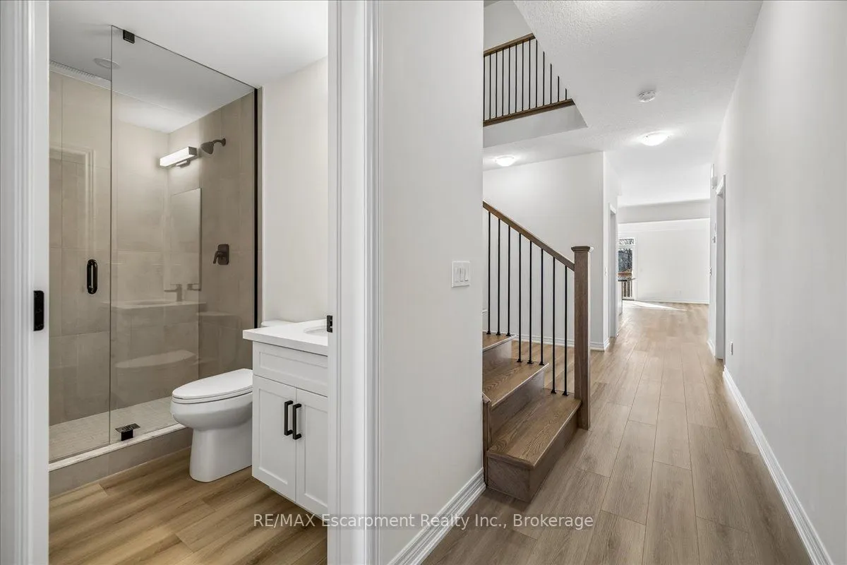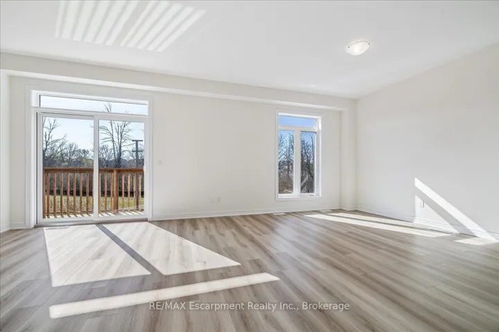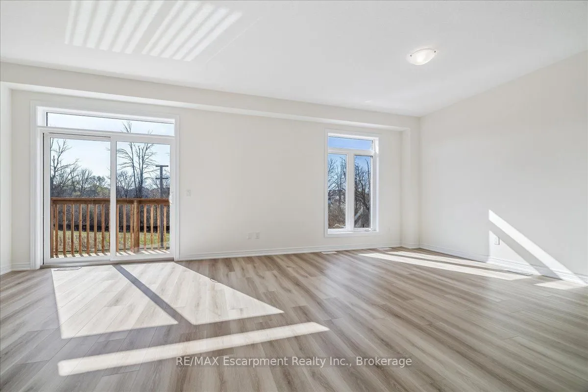 Stunning brand new freehold 4 bedroom townhome backing onto a ravine with a walk-out basement in east Waterdown. Open concept main floor comes with a den, 9ft ceilings, oak staircase with iron pickets. Vinyl plan flooring on main and upper levels. Custom kitchen includes SS appliances, quartz countertop. Second floor features 4 spacious bedrooms, 3 full bathrooms including 2 ensuites, laundry facilities with upper cabinets for your convenience. The primary bedroom offers an over-sized walk-in closet and a deluxe ensuite with double sinks, soaker tub, quartz countertop. This home is move-in ready, with ample storage, and no neighbours behind. This is a rare opportunity to embrace living in a sought after locale. Minutes from highways, GO Stations, shopping, schools, trails.