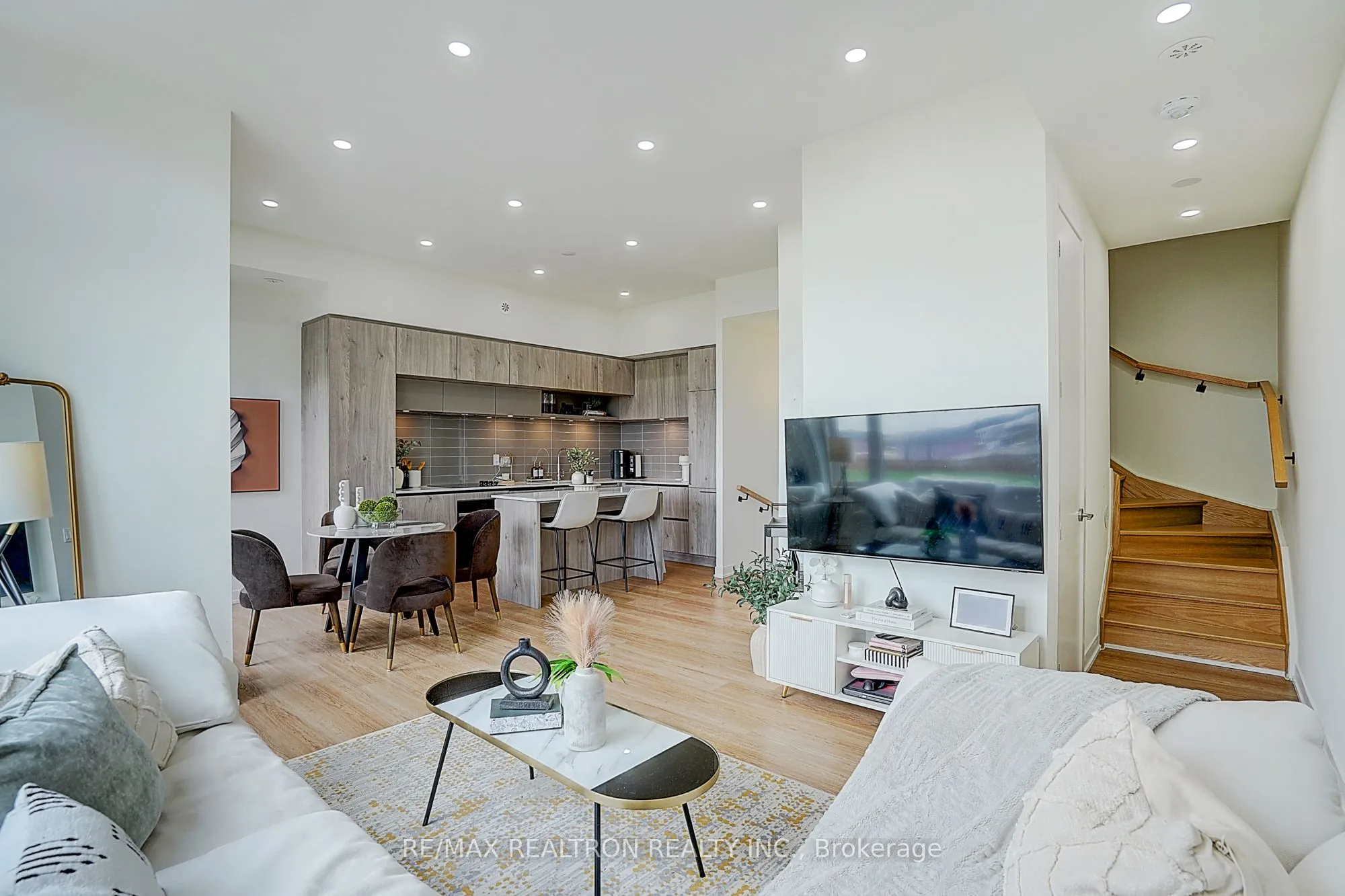 Welcome to this stunning modern townhouse, offering luxurious living in an unbeatable location. Featuring 10-foot ceilings on the main floor and 9-foot ceilings on the upper floor, this home feels bright, open, and airy, perfect for both everyday living and entertaining. Pot lights throughout the main floor add warmth and style, while upgraded zebra blinds are installed in all rooms, including remote control operation for the large main floor window. Enjoy two walk-out balconies (7 x 3 ft each) for extra outdoor space, plus a spectacular 23 x 14 ft private rooftop terrace with a gas BBQ hookup, ideal for summer evenings and gatherings. The home offers unobstructed east-facing views and is filled with natural light through floor-to-ceiling windows. The modern kitchen is designed with sleek built-in appliances, quartz countertops, and a central island, creating a stylish and functional space for cooking and dining. This home also offers the rare convenience of 2 side-by-side parking spaces, with one equipped with an EV charging station, along with one storage locker. Beautifully maintained and move-in ready, it features quality upgrades and $$$ spent on builder enhancements. Located just steps to Richmond Green Secondary School, Richmond Green Sports Centre, and park, and close to highway 404, top-rated schools, shopping, and everyday amenities, this home delivers both comfort and convenience. Low condo fees include internet, making modern living even easier. Don’t miss this exceptional opportunity. Schedule your showing today and make this beautiful home yours.