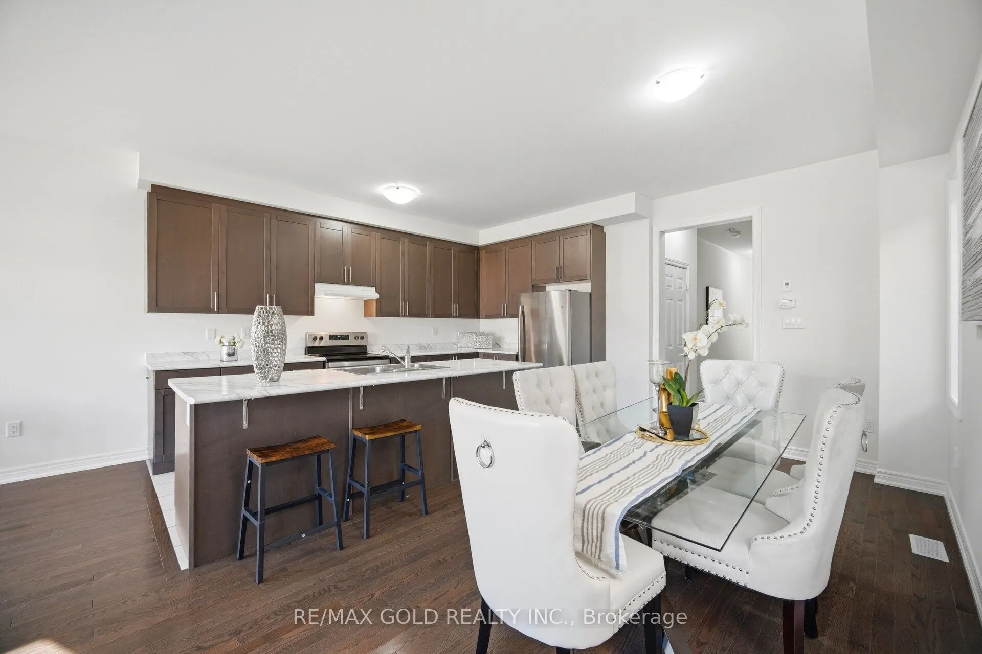 Approx. 2,000 sq. ft.! Come and see this well-maintained end-unit freehold townhouse featuring a private driveway and a finished legal basement registered as a second dwelling with a separate entrance. The home offers an open-concept layout with a spacious living and dining area on the main floor, along with an spacious kitchen with stainless steel appliances. The second floor includes four generously sized bedrooms and two full washrooms, with the primary bedroom offering an ensuite bath and a walk-in closet. The finished basement provides two additional bedrooms, a kitchen, and a full washroom ideal for extended family or rental potential. Conveniently located close to all amenities, including schools, parks, transit, and shopping centres.